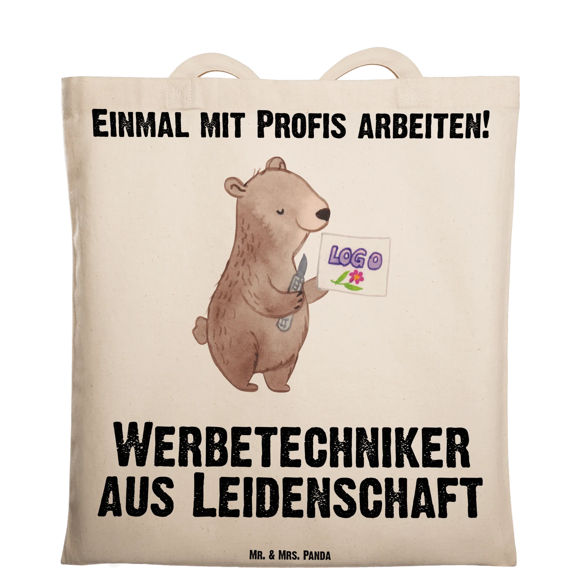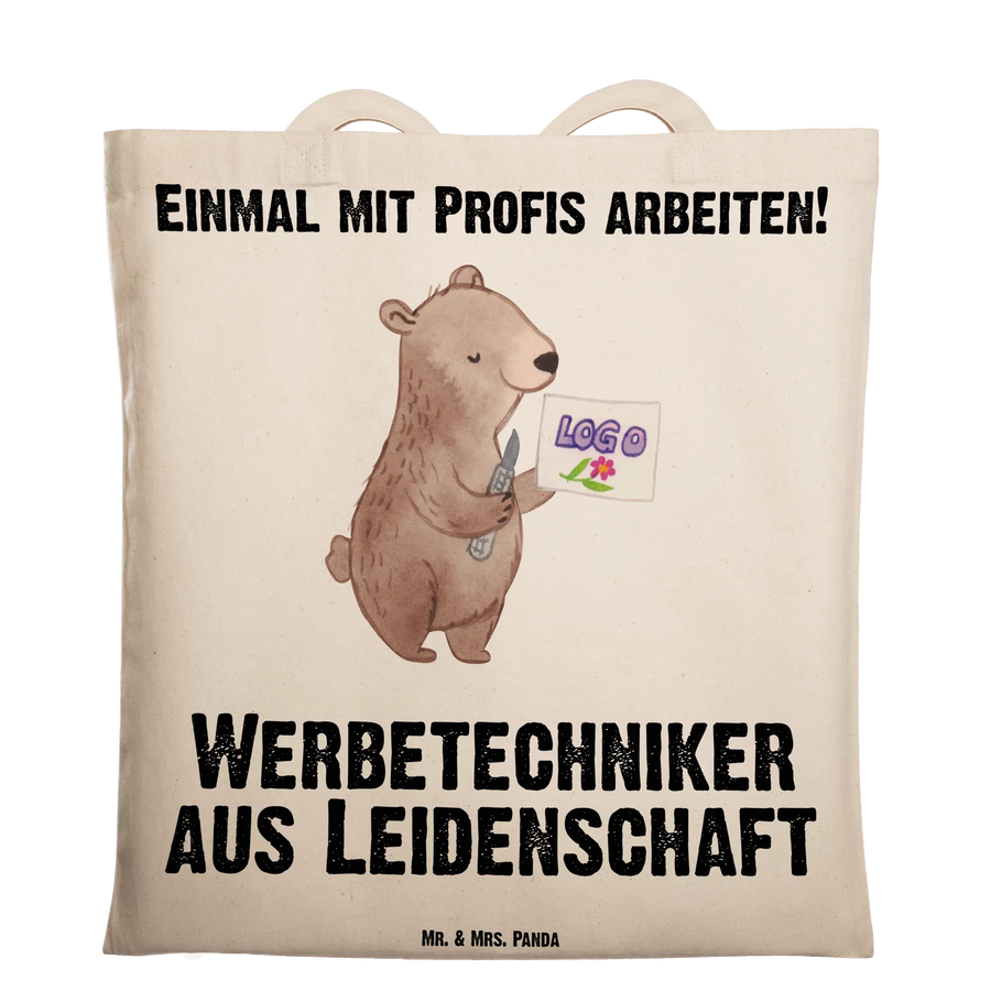 Ein liebevolles Geschenk für kreative Köpfe: Die Tragetasche „Werbetechniker aus Leidenschaft" von Mr. & Mrs. Panda ist das perfekte Präsent für alle, die mit Herz und Hand gestalten. Das handgezeichnete Aquarell-Motiv eines süßen Bären mit Schere und kreativen Ideen wird ergänzt durch den klaren Slogan „Werbetechniker aus Leidenschaft".