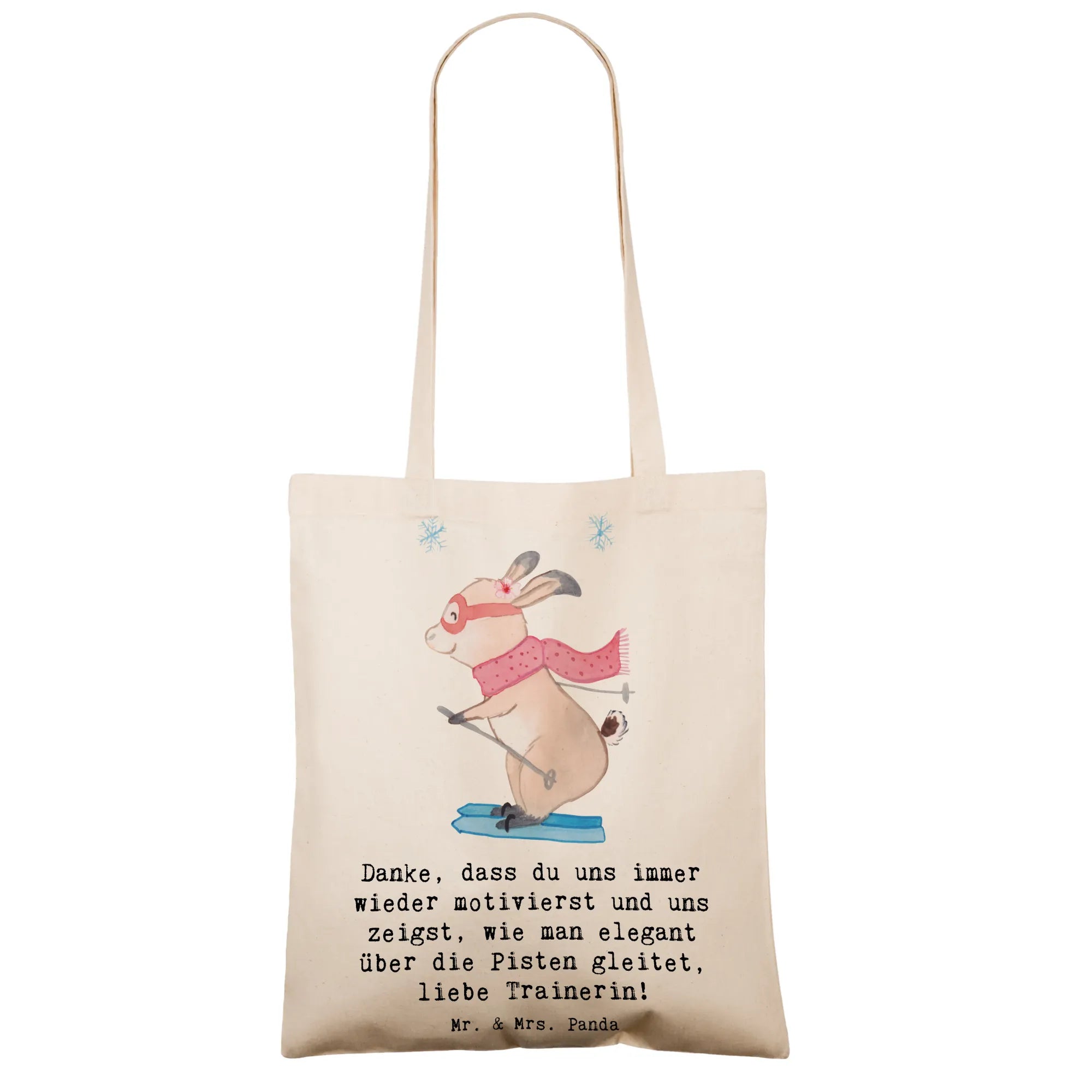Tote bag Danke, dass du uns immer wieder motivierst und uns zeigst, wie man elegant über die Pisten gleitet, liebe Trainerin! Stofftasche, Einkaufstasche, Tasche, Einkaufstüte, Strandtasche, Tragetasche, Schultertasche, Laptoptasche, Beuteltasche, Umhängetasche, Stoffbeutel, Shopper, Jutebeutel, Beutel, Badetasche, Jutetasche, Geschenk, Sport, Sportart, Hobby, Schenken, Danke, Dankeschön, Auszeichnung, Gewinn, Sportler