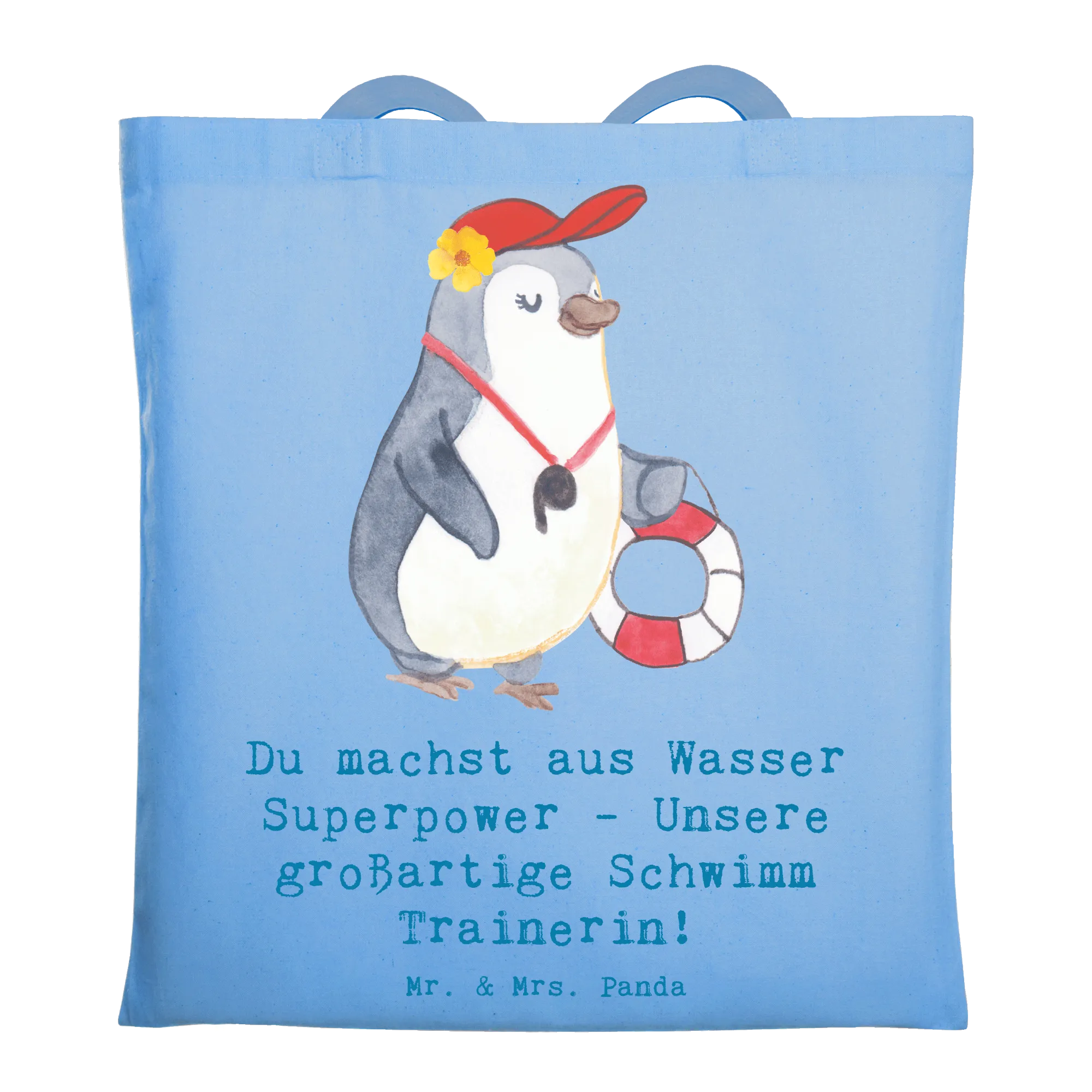 Tote bag Du machst aus Wasser Superpower - Unsere großartige Schwimm Trainerin! Strandtasche, Stoffbeutel, Badetasche, Shopper, Einkaufstasche, Laptoptasche, Jutetasche, Stofftasche, Beutel, Tragetasche, Beuteltasche, Schultertasche, Tasche, Jutebeutel, Umhängetasche, Einkaufstüte, Geschenk, Sport, Sportart, Hobby, Schenken, Danke, Dankeschön, Auszeichnung, Gewinn, Sportler