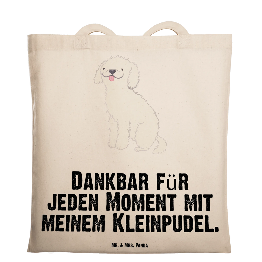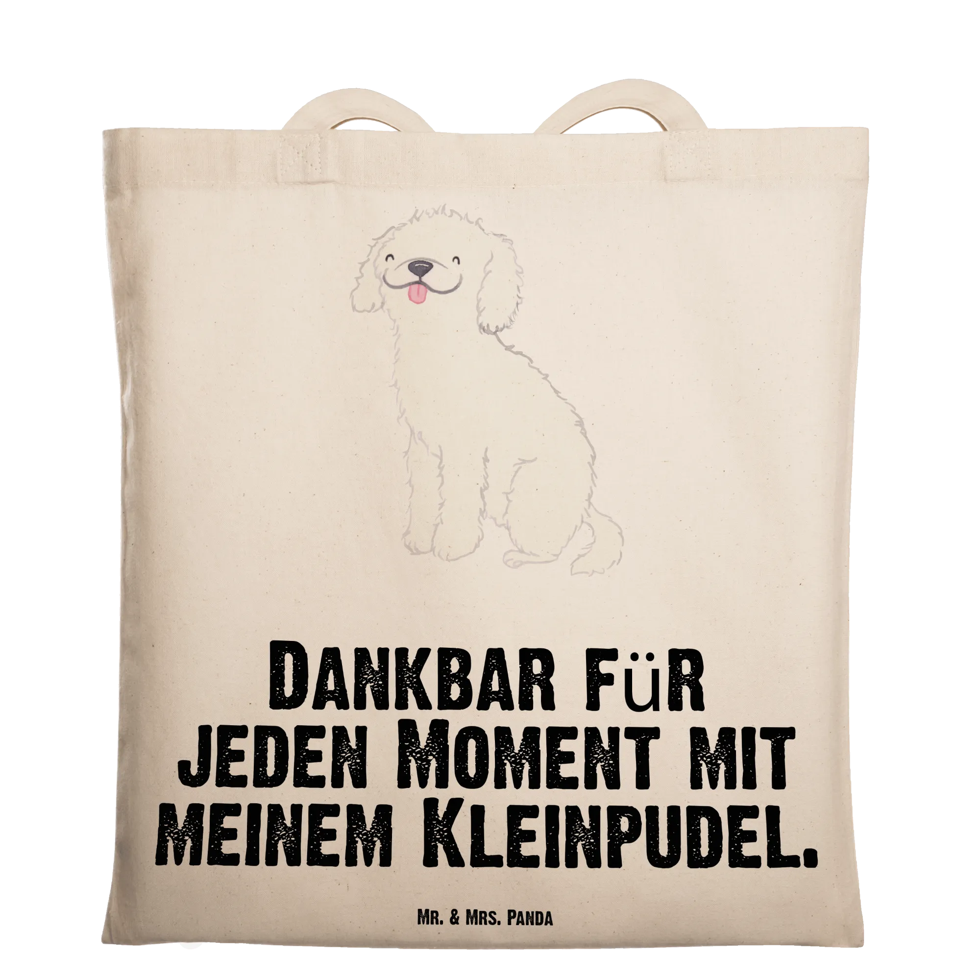 Perfekt für Pudel-Liebhaber: Die Tragetasche „Kleinpudel Moment" aus der Hunderasse-Kollektion von Mr. & Mrs. Panda ist ein liebevoll gestaltetes Must-have für alle Hundebesitzer und Tierfreunde. Auf schwarzem Hintergrund siehst du ein handgezeichnetes Aquarell eines fröhlichen Kleinpudels mit lockigem, weißem Fell und dem herzlichen Spruch: „Dankbar für jeden Moment mit meinem Kleinpudel."
