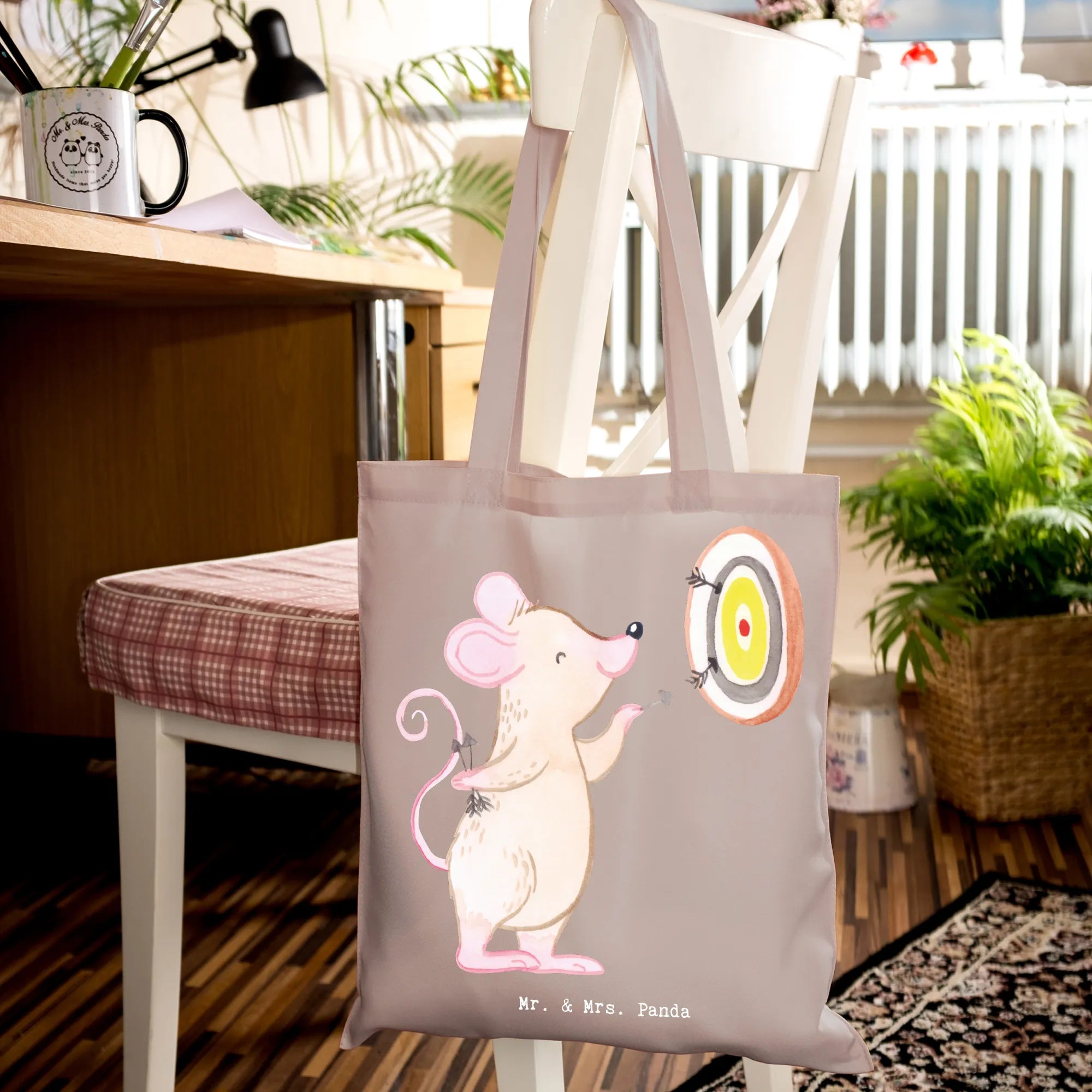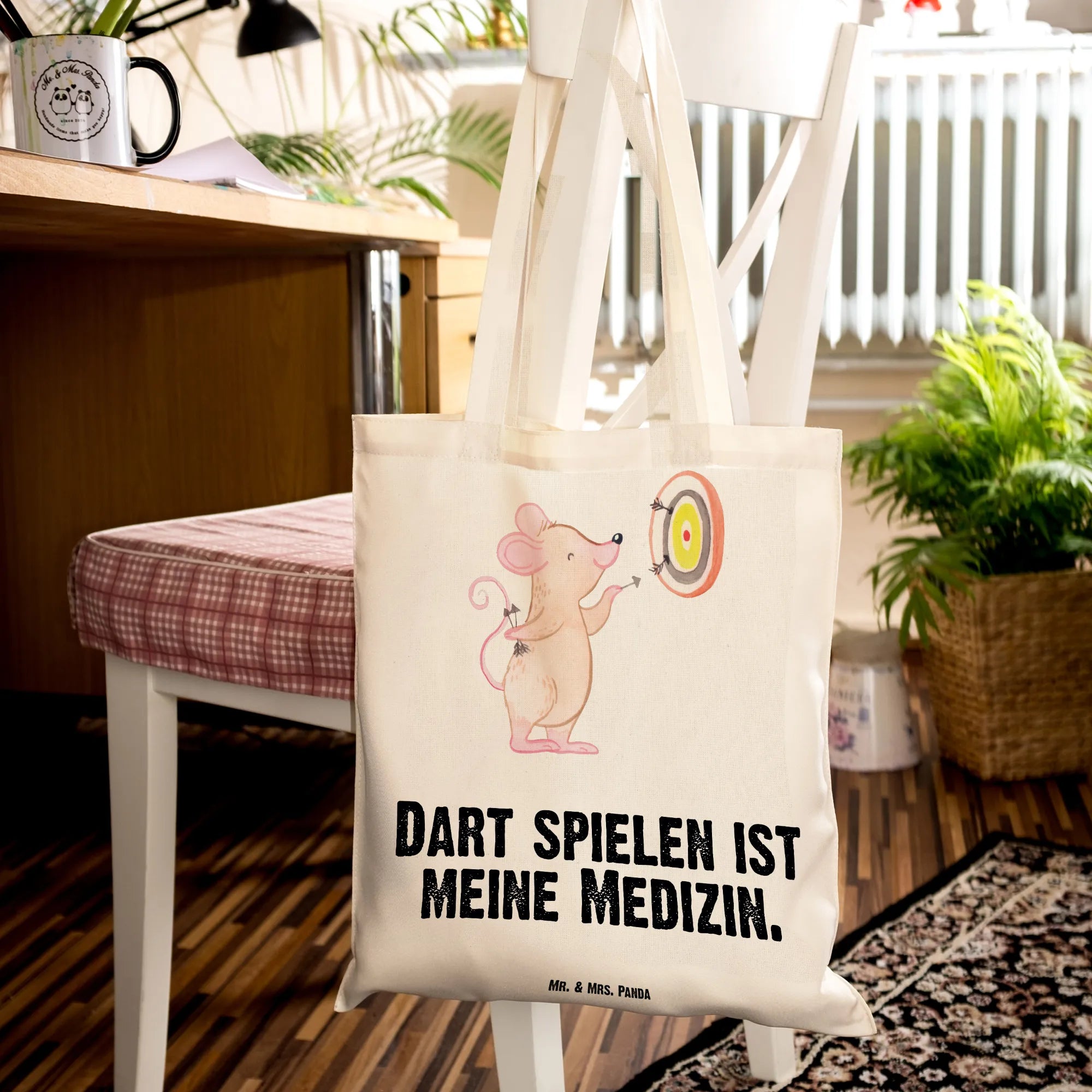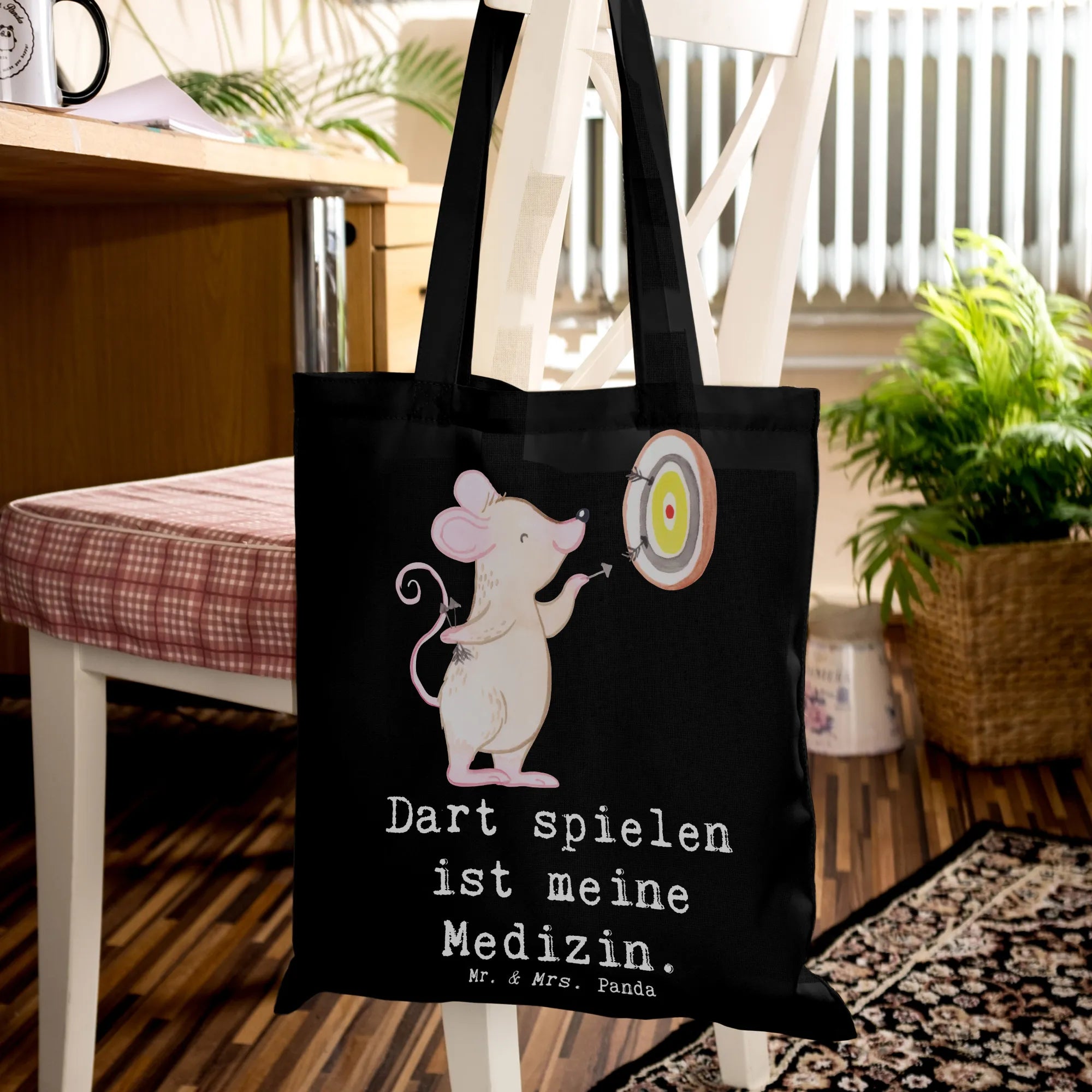 Tote bag Mouse play darts - with a saying - Transparent