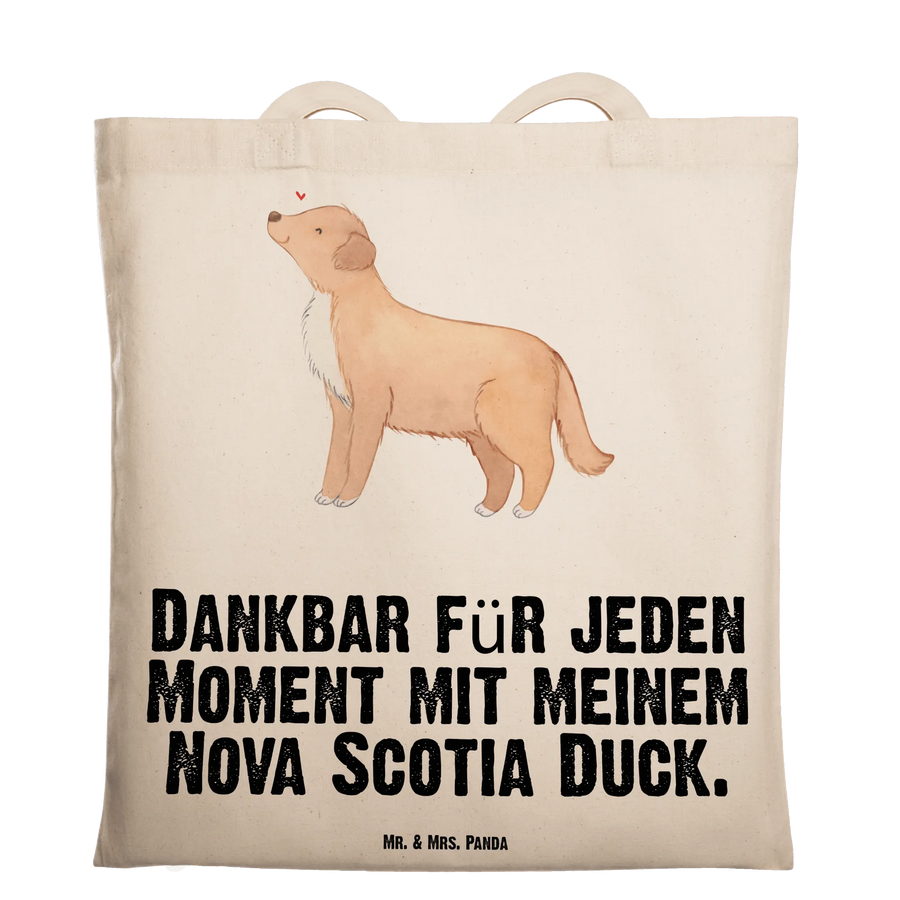 Du liebst Deinen Nova Scotia Duck Tolling Retriever? Dann ist diese Stofftasche genau das richtige Accessoire für Dich! Das liebevoll handgezeichnete Motiv zeigt einen fröhlichen Retriever in warmen Brauntönen, begleitet vom herzlichen Slogan „Dankbar für jeden Moment mit meinem Nova Scotia Duck.“ Diese Tragetasche verbindet Alltagstauglichkeit mit einem emotionalen Statement und passt perfekt zu Hundebesitzern, Rassefans und Tierfreunden.