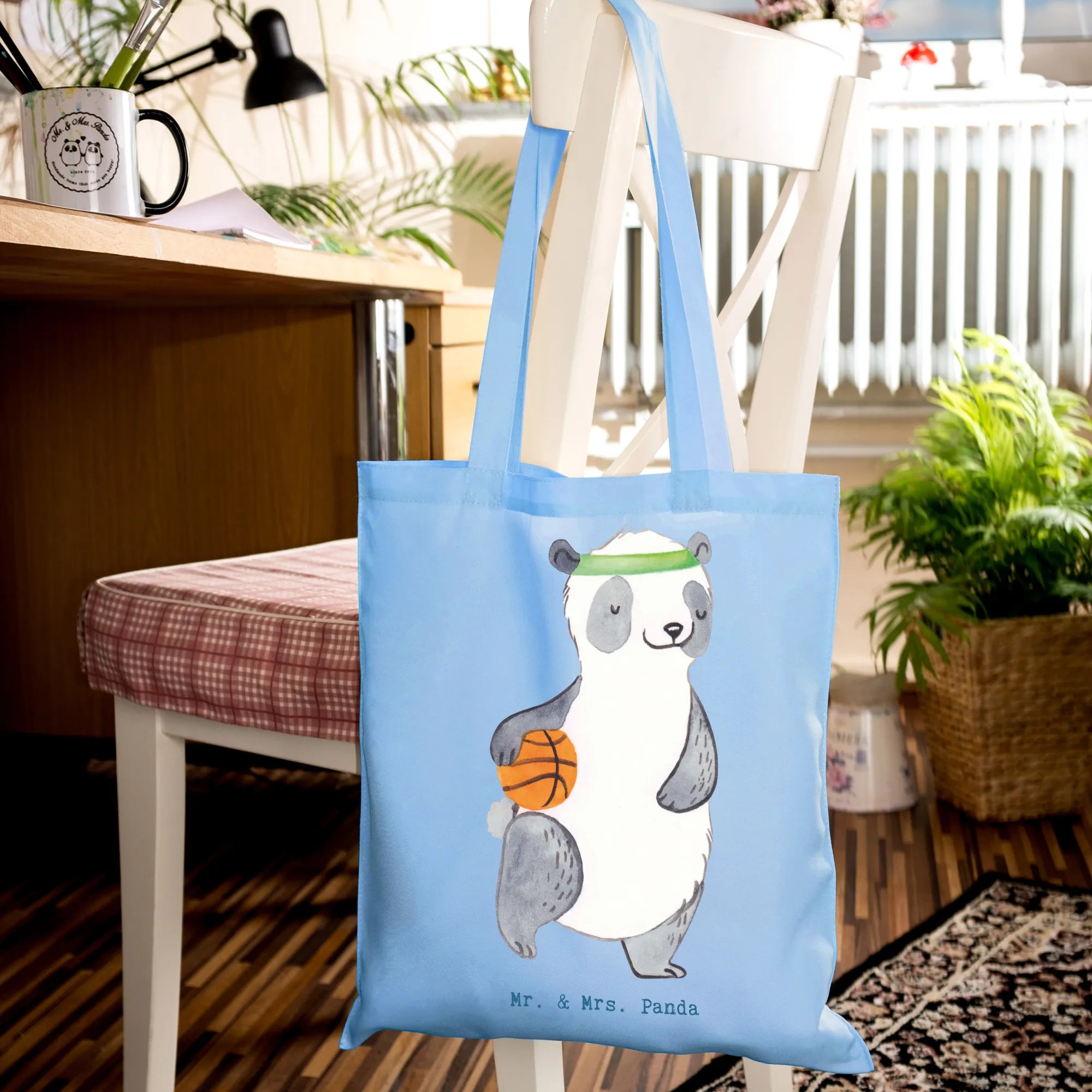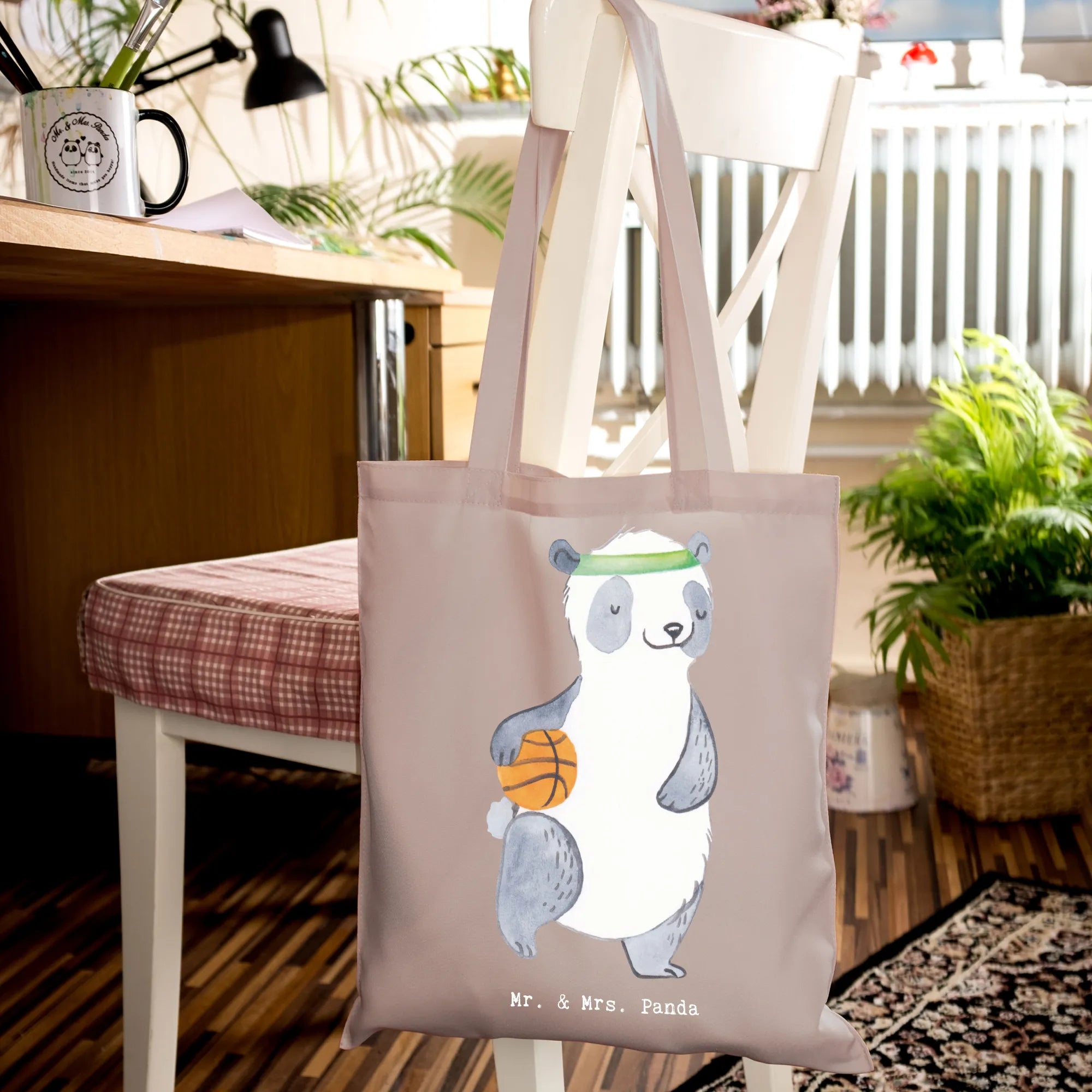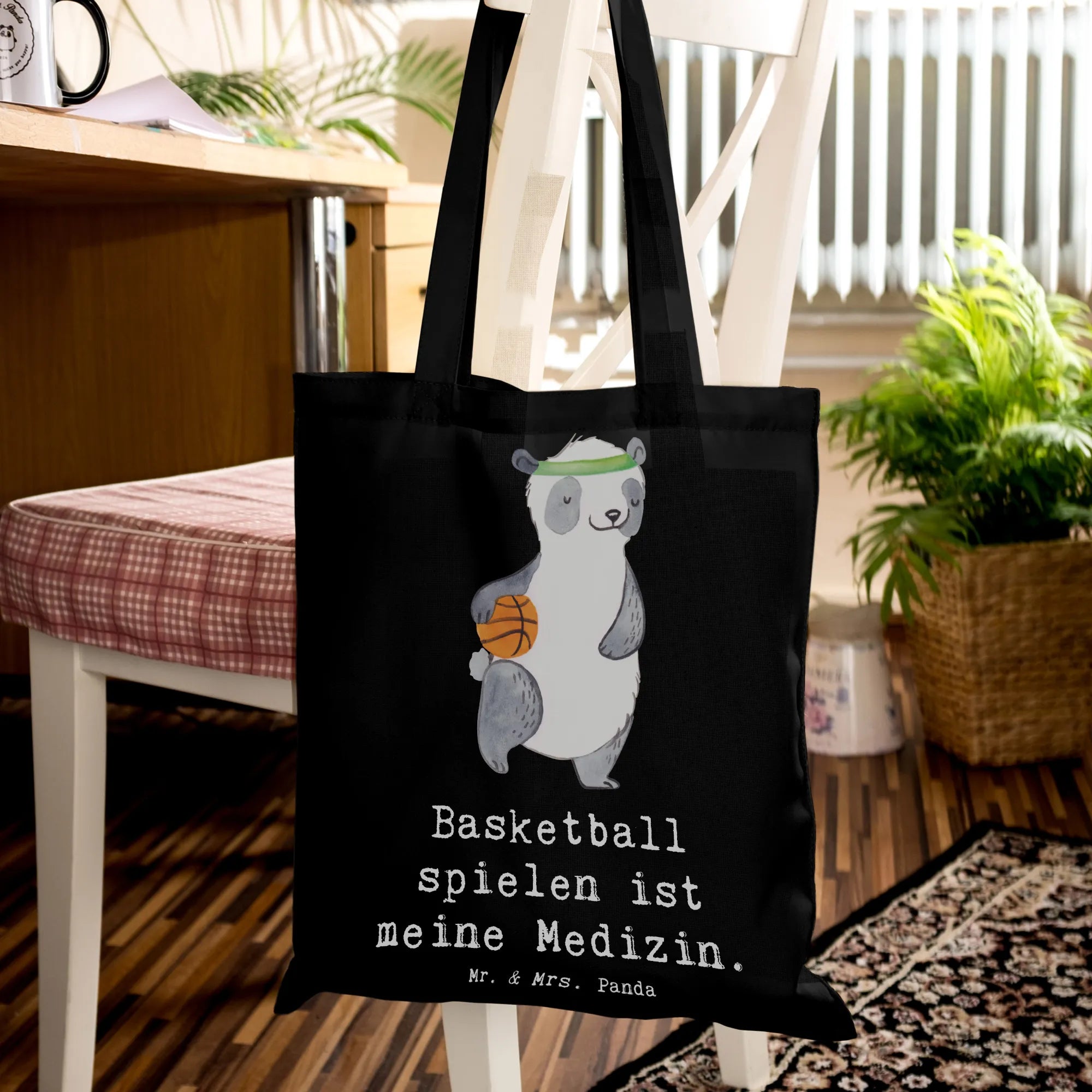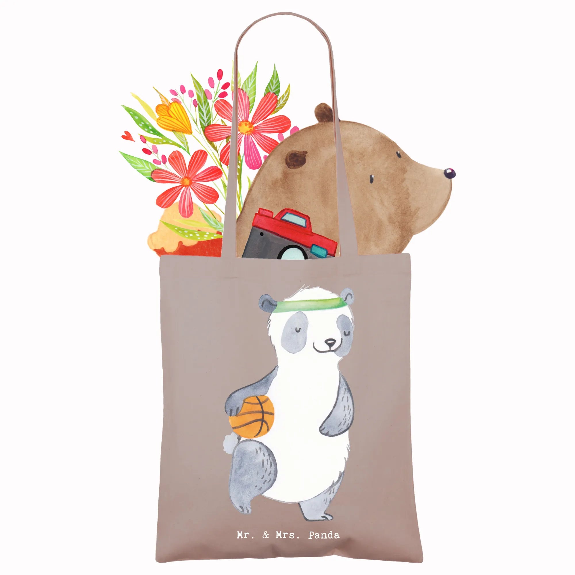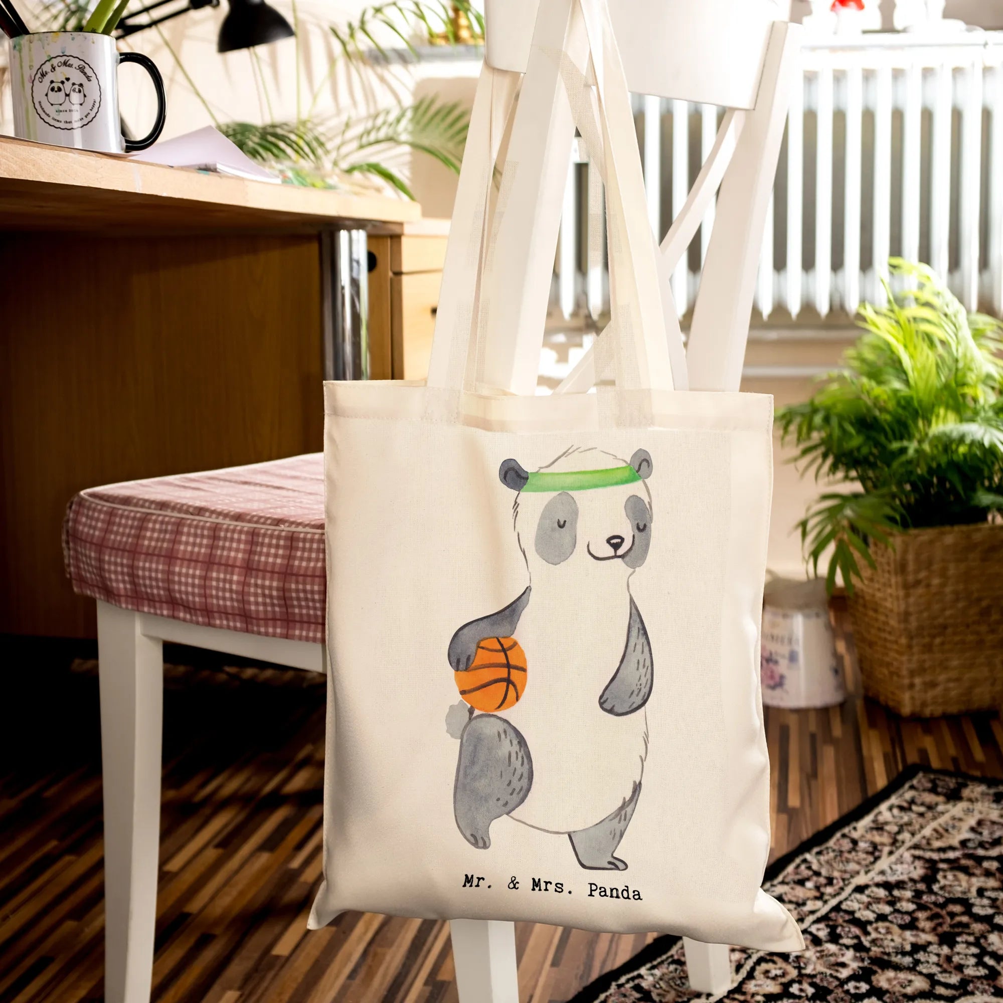 Tote bag panda basketball - with saying - Transparent