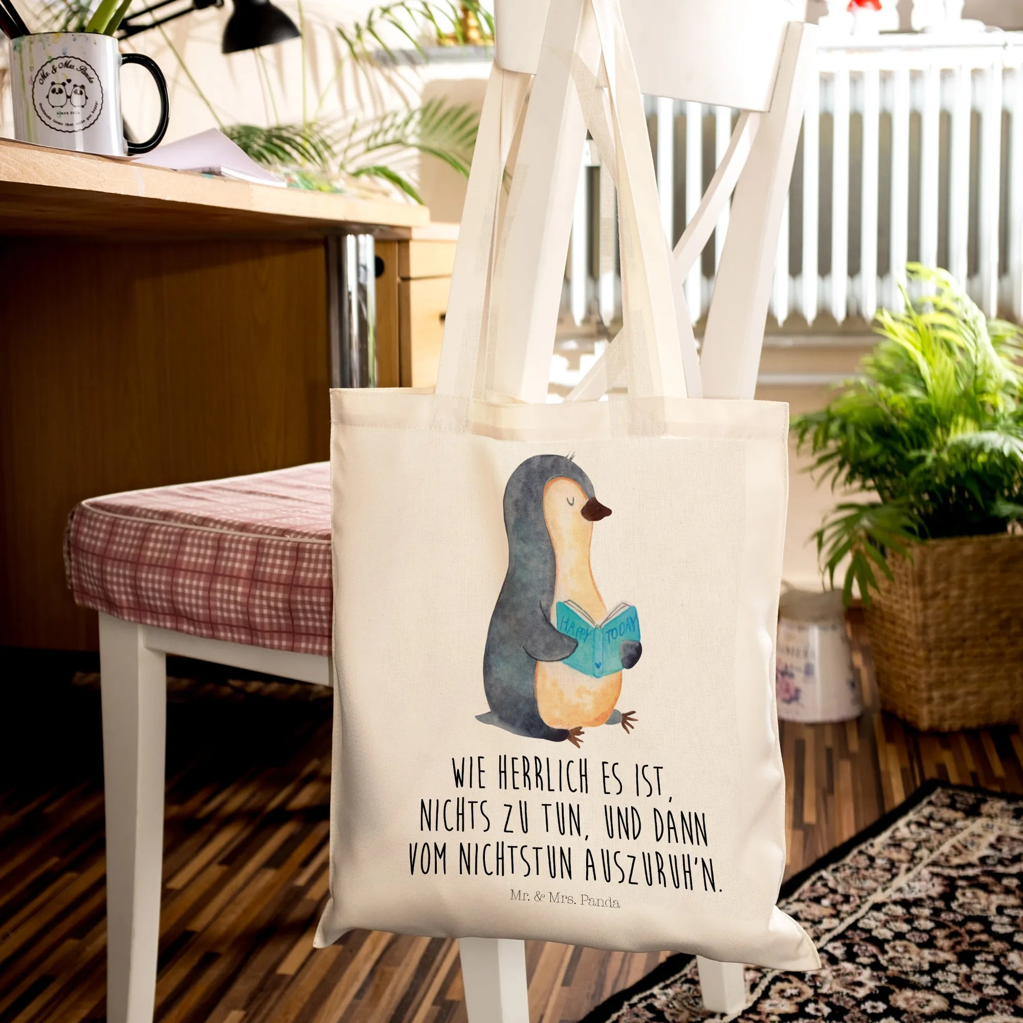 In a world where everything seems fast-paced, the Penguin Book tote reminds us to slow down, take a break, and enjoy our leisure moments with a good book by our side. Spread the love for reading, gift the joy of penguins, and embrace the playful spirit of Mr. & Mrs. Panda with this beautiful tote bag!