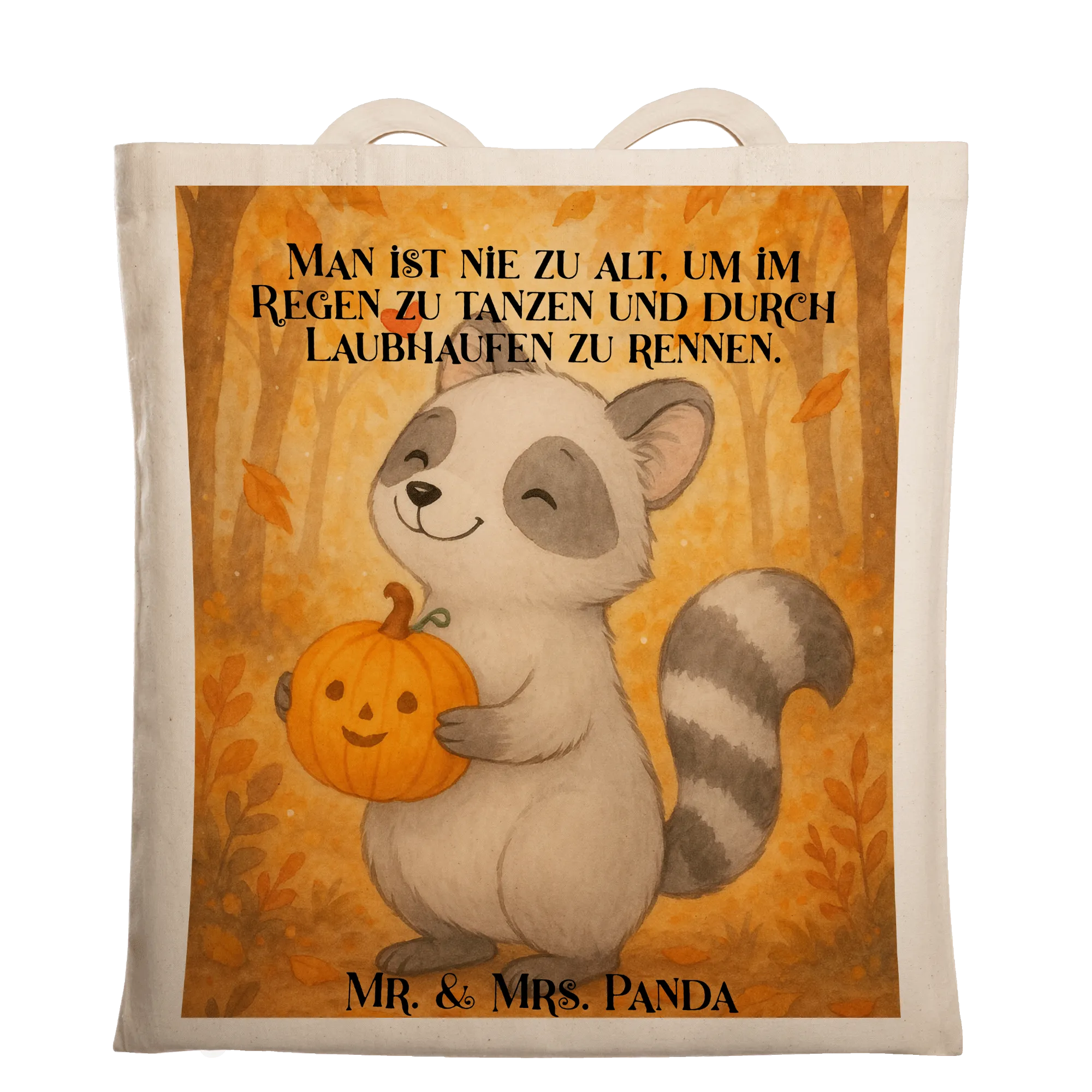 Tote bag Raccoon Pumpkin Design - mit Spruch