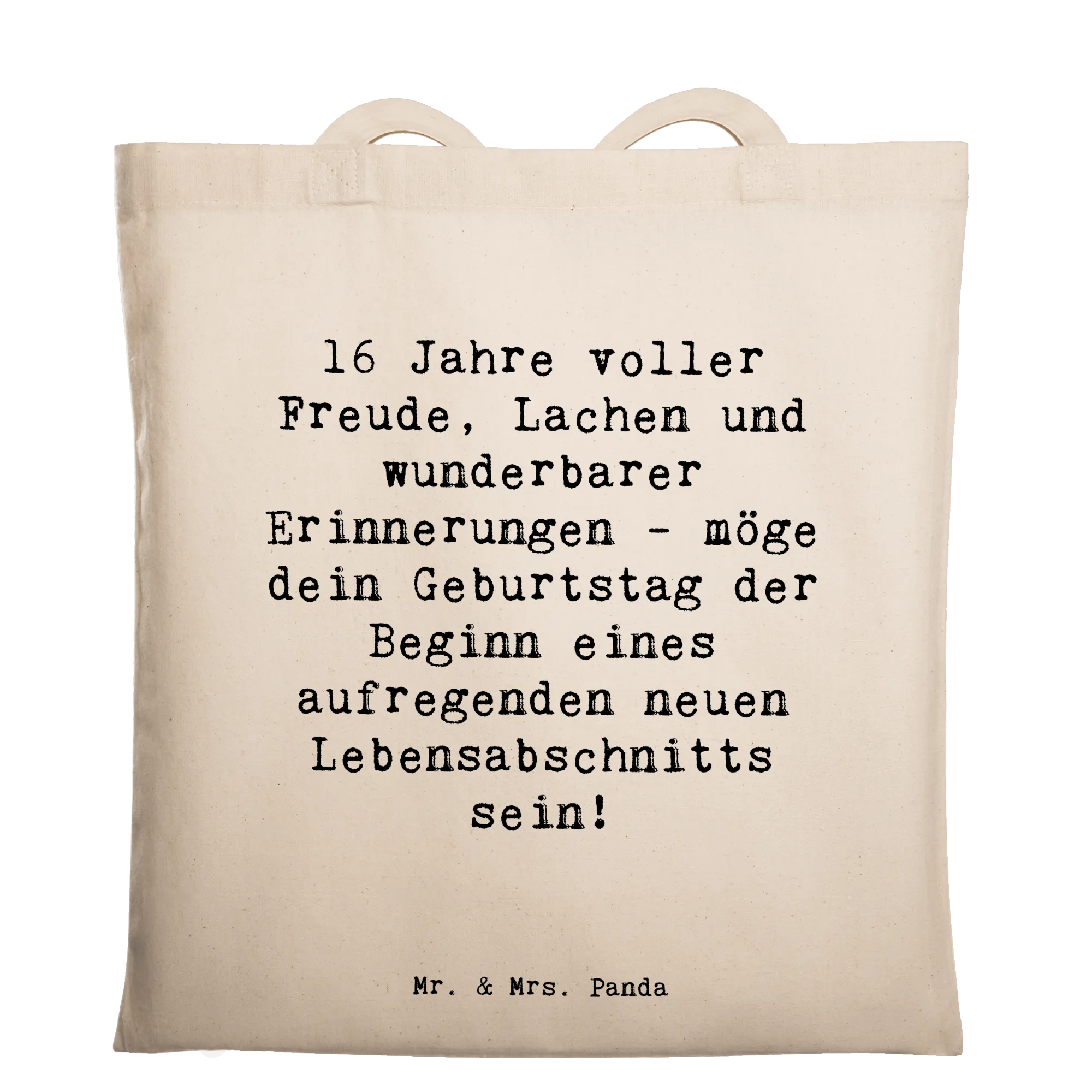 Suchst du ein Geschenk, das von Herzen kommt und zugleich im Alltag praktisch ist? Unsere Mr. & Mrs. Panda Tragetasche „16. Geburtstag“ vereint liebevolle Gestaltung mit echtem Nutzwert. Mit dem warmen Spruch „16 Jahre voller Freude, Lachen und wunderbarer Erinnerungen - möge dein Geburtstag der Beginn eines aufregenden neuen Lebensabschnitts sein!“ wird jede Nutzung zu einem kleinen Festmoment.