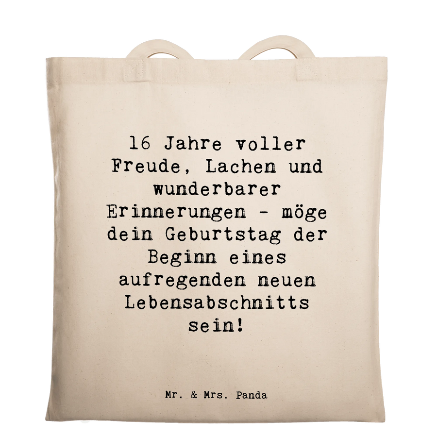 Tote bag Saying 16 Jahre voller Freude, Lachen und wunderbarer Erinnerungen - möge dein Geburtstag der Beginn eines aufregenden neuen Lebensabschnitts sein! - Transparent