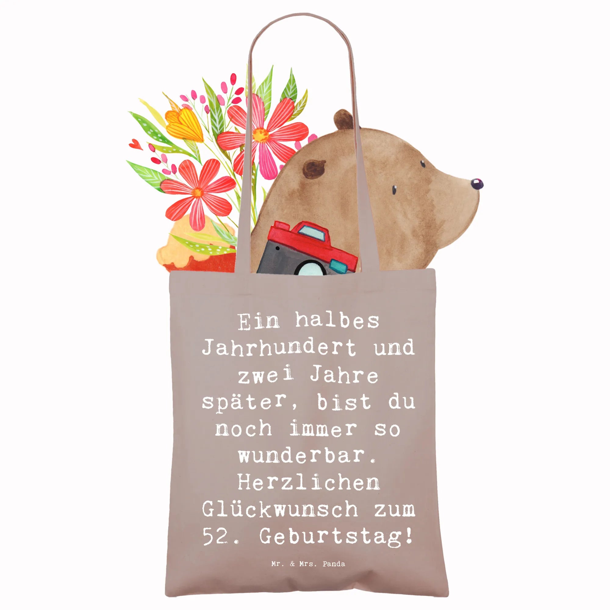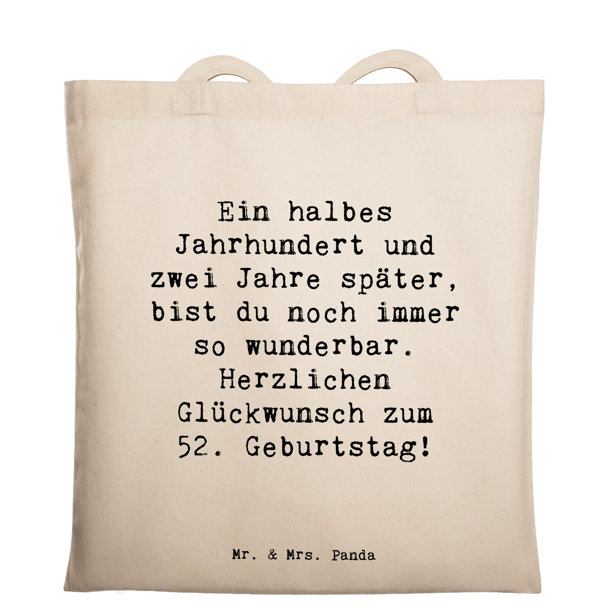 Tote bag Saying Ein halbes Jahrhundert und zwei Jahre später, bist du noch immer so wunderbar. Herzlichen Glückwunsch zum 52. Geburtstag! - Transparent