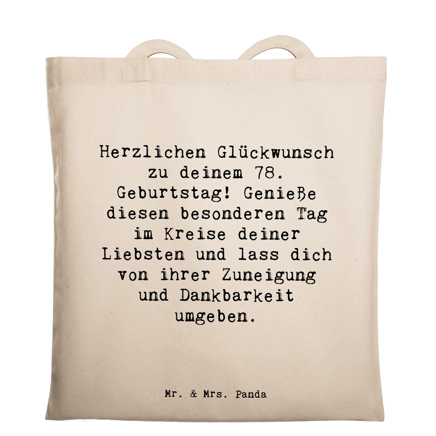 Tote bag Saying Herzlichen Glückwunsch zu deinem 78. Geburtstag! Genieße diesen besonderen Tag im Kreise deiner Liebsten und lass dich von ihrer Zuneigung und Dankbarkeit umgeben. - Transparent