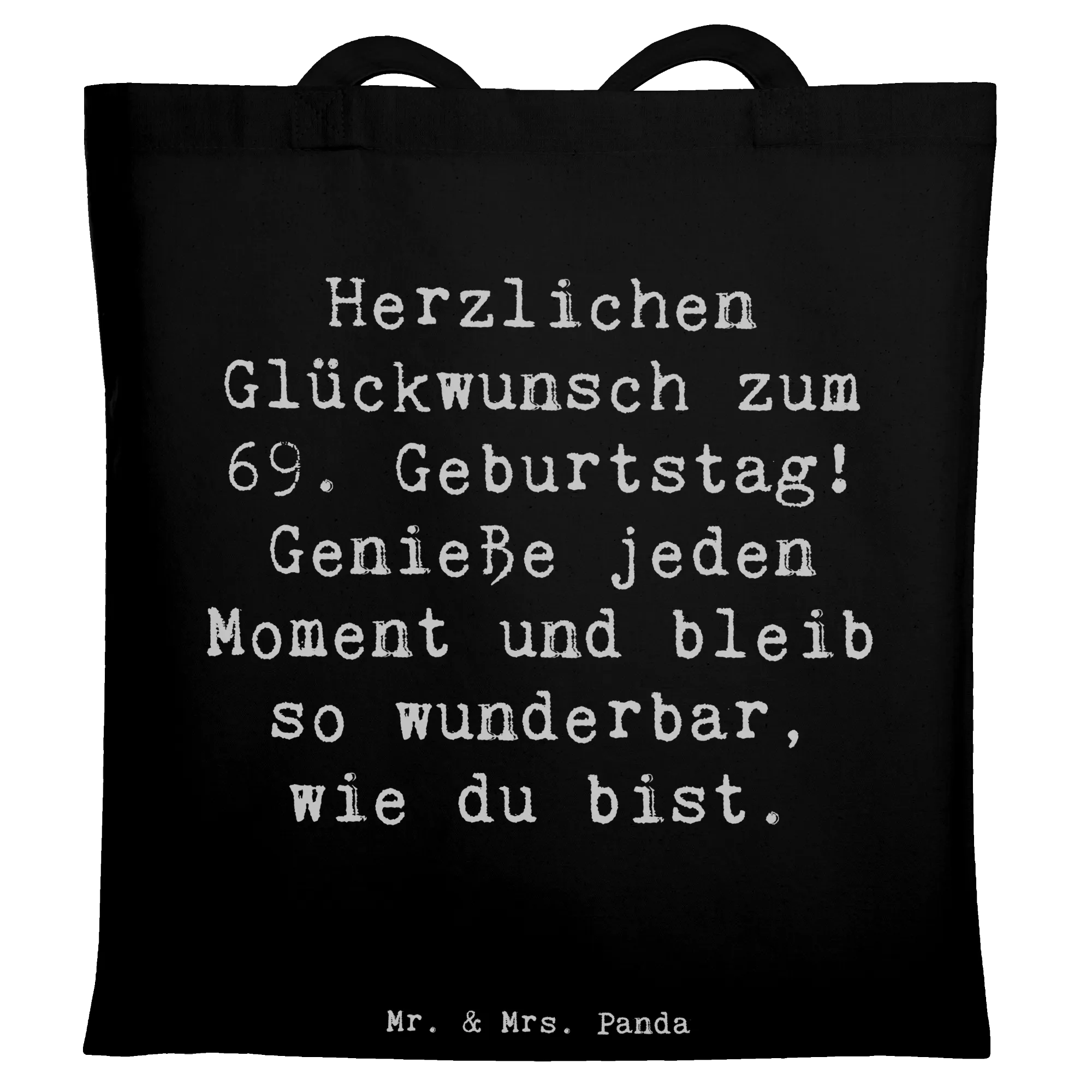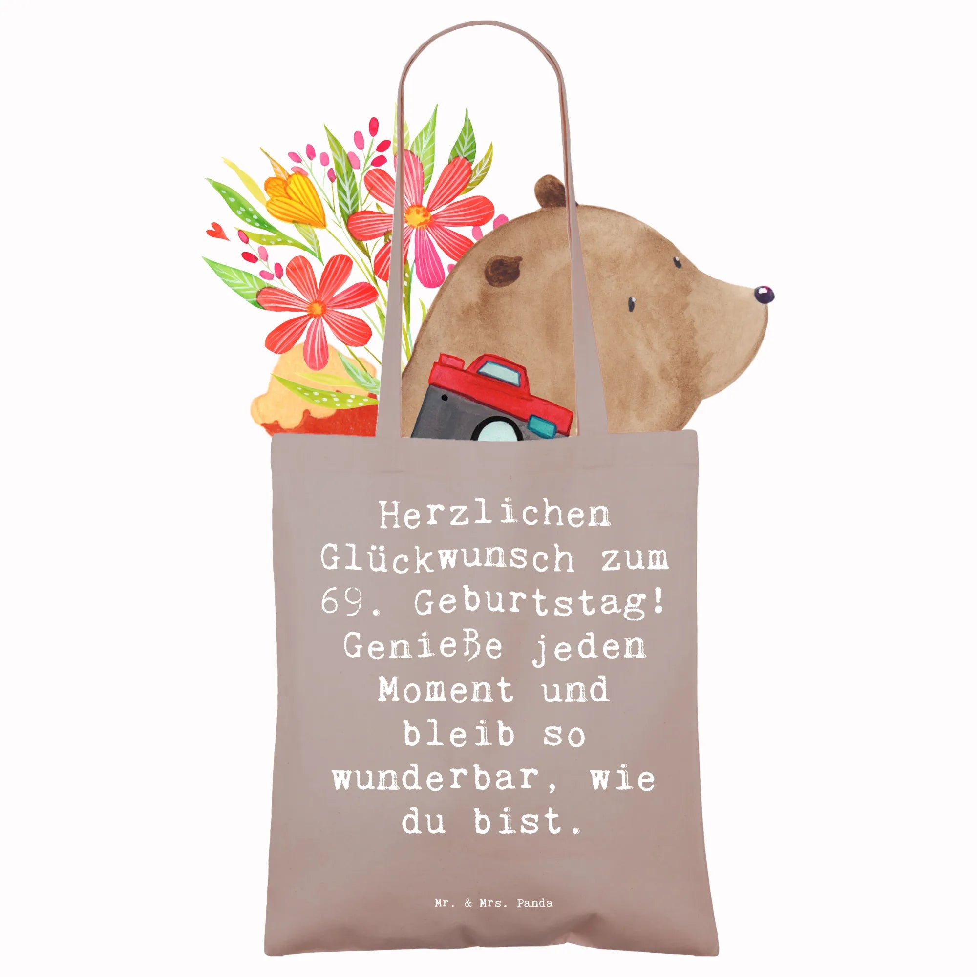 Perfektes Geschenk zum 69. Geburtstag: Diese wunderschöne Tragetasche von Mr. & Mrs. Panda trägt den liebevollen Spruch „Herzlichen Glückwunsch zum 69. Geburtstag! Genieße jeden Moment und bleib so wunderbar, wie du bist.“ – ein herzlicher Gruß, der an besonderen Tagen und im Alltag Freude schenkt.