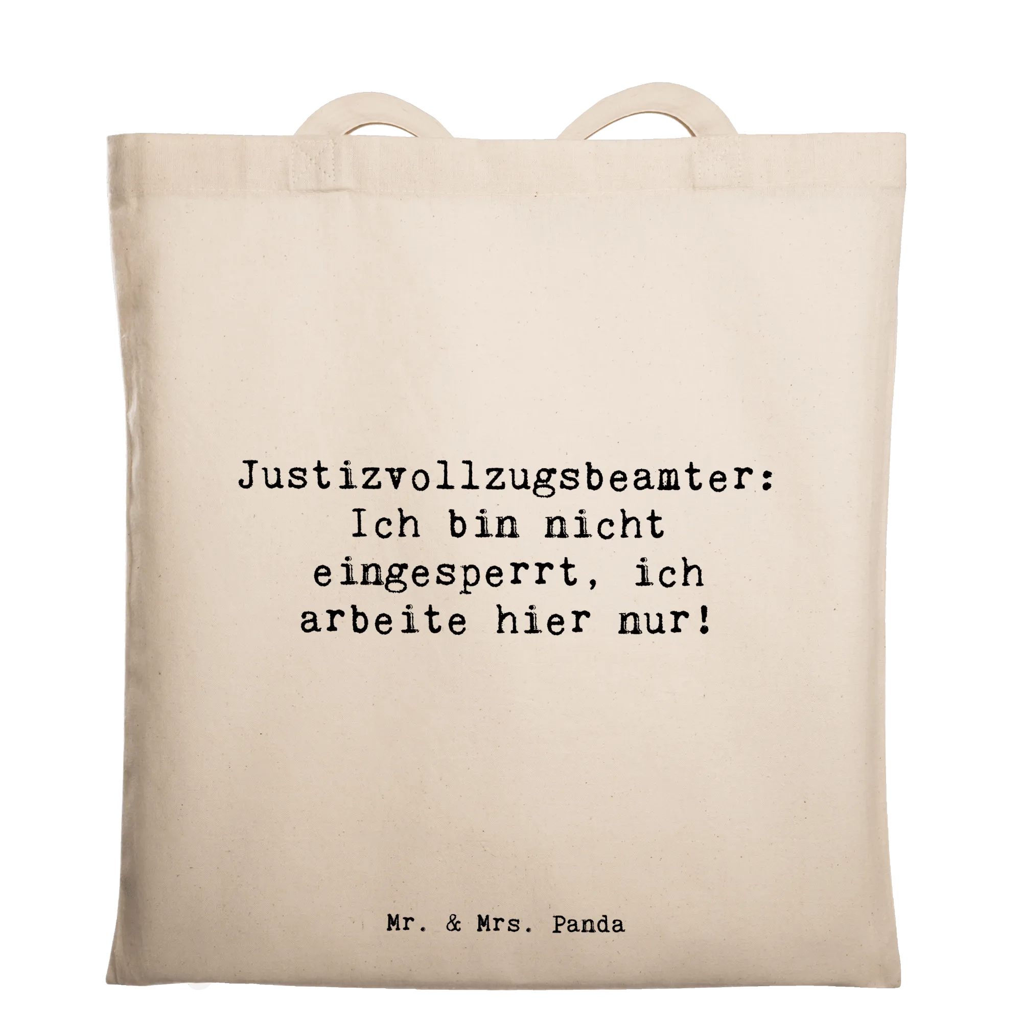 Schön, dass Du hier bist! Unsere Tragetasche „Justizvollzugsbeamter“ aus der Berufe-Kollektion von Mr. & Mrs. Panda ist das perfekte Geschenk für alle, die ihren Beruf mit einem Augenzwinkern zeigen möchten. Der freche Spruch „Justizvollzugsbeamter: Ich bin nicht eingesperrt, ich arbeite hier nur!“ sorgt für gute Laune und Gespräche – ob beim Einkauf, in der Uni oder auf dem Weg zur Schicht.