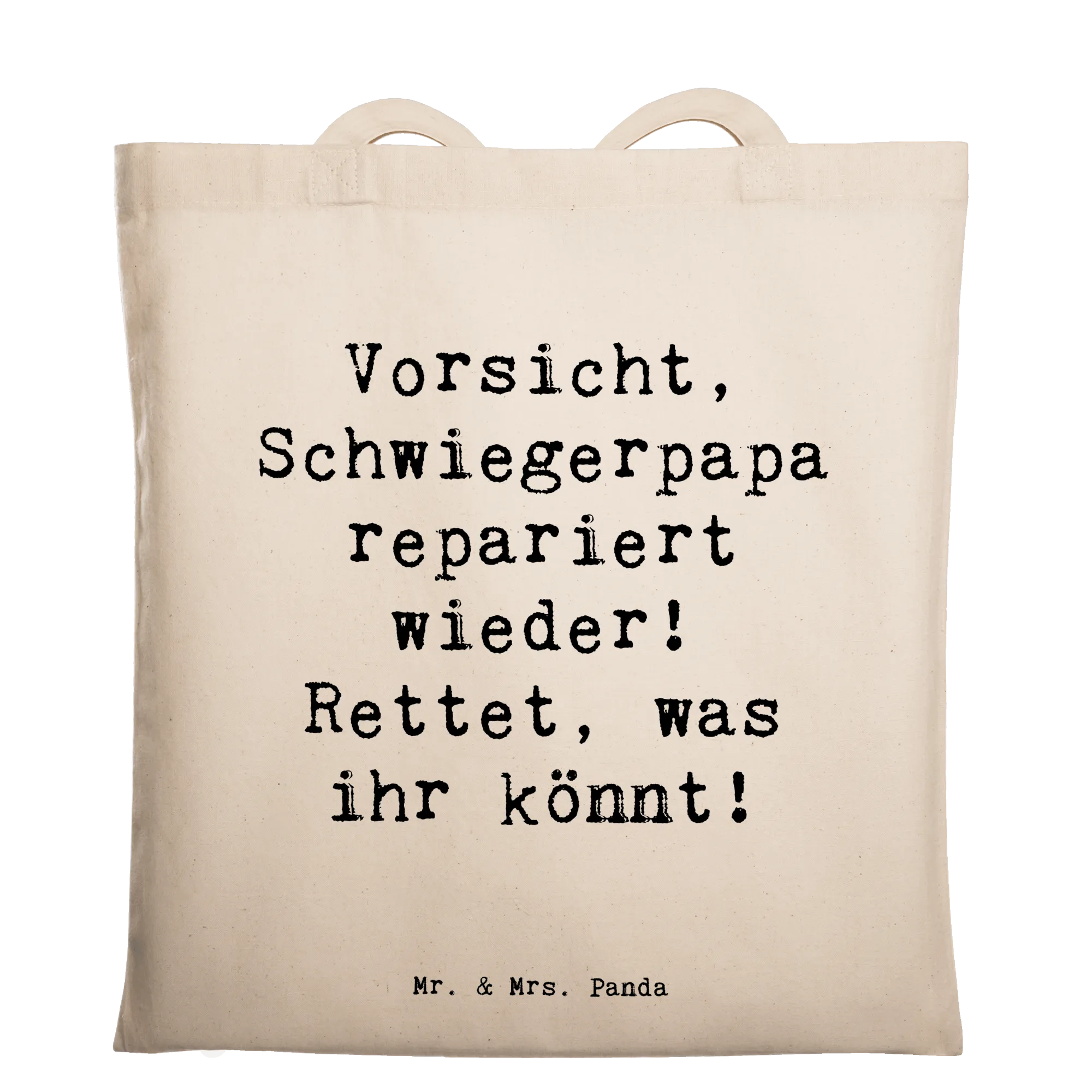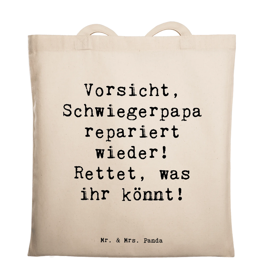 Tote bag Saying Vorsicht, Schwiegerpapa repariert wieder! Rettet, was – Mr. & Mrs. Panda