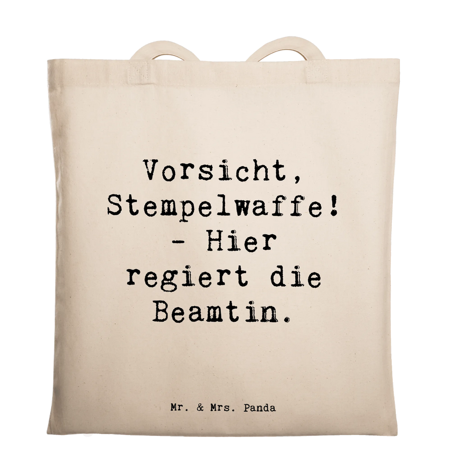 Tote bag Saying Vorsicht, Stempelwaffe! - Hier regiert die Beamtin. - Transparent