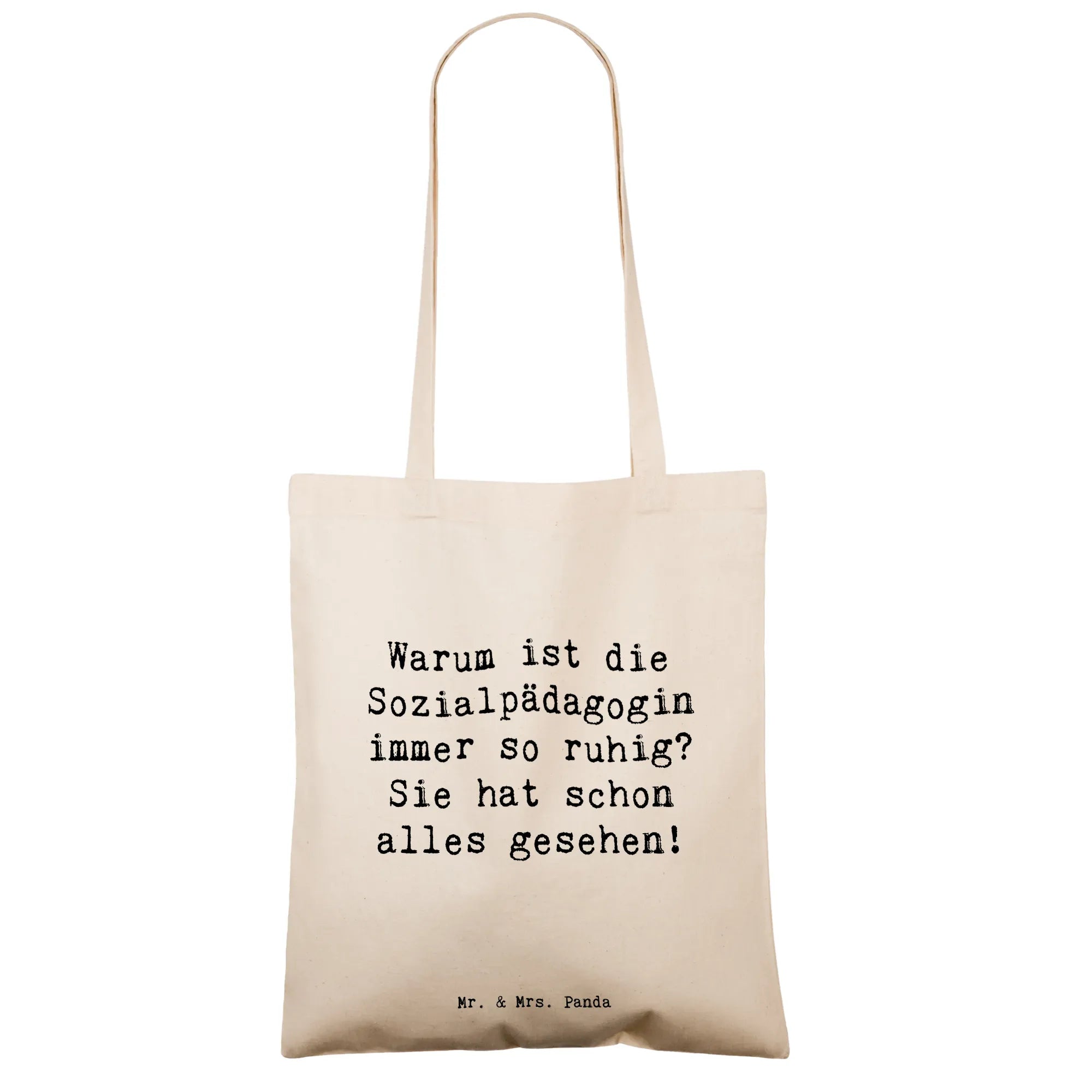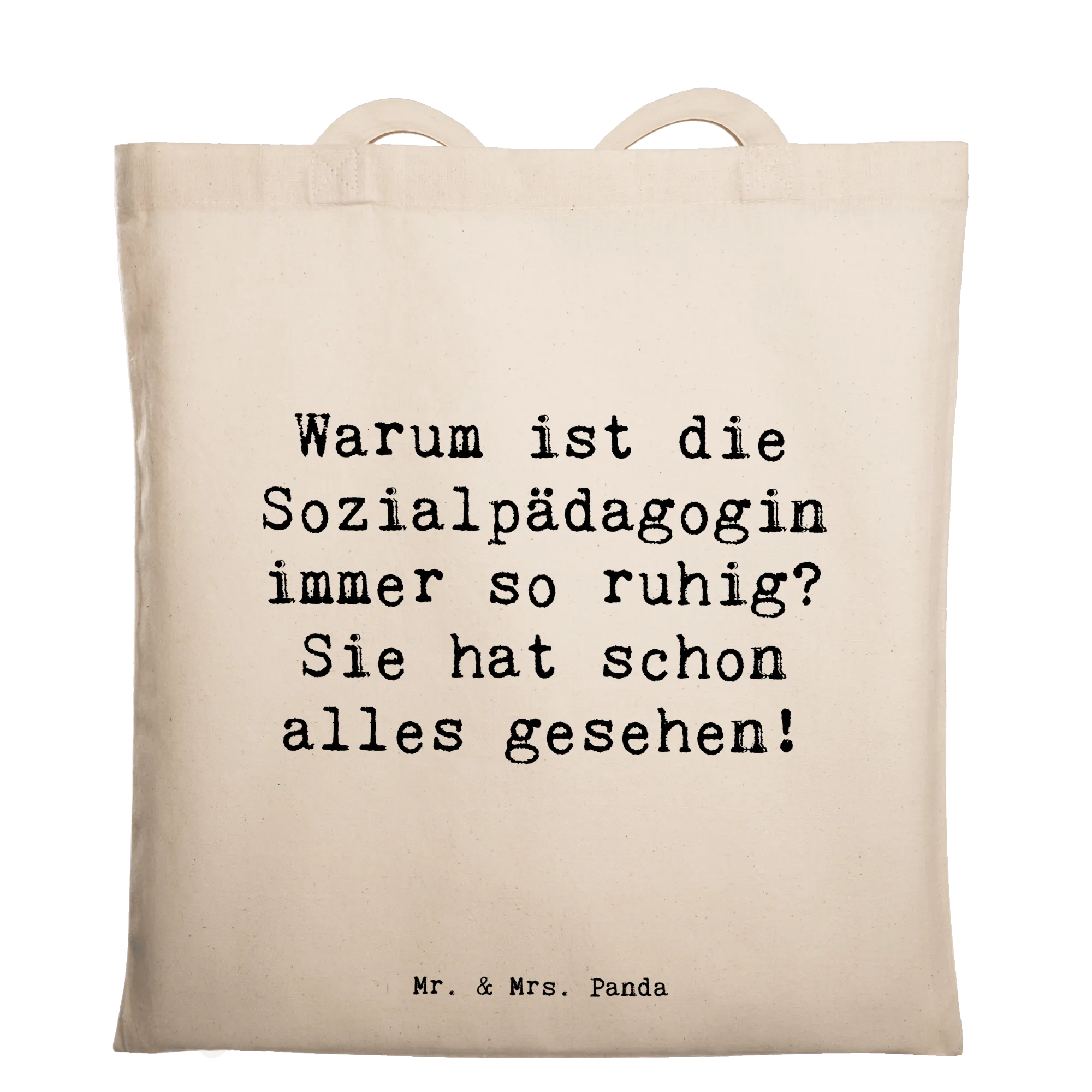 Tote bag Saying Warum ist die Sozialpädagogin immer so ruhig? Sie hat schon alles gesehen! - Transparent