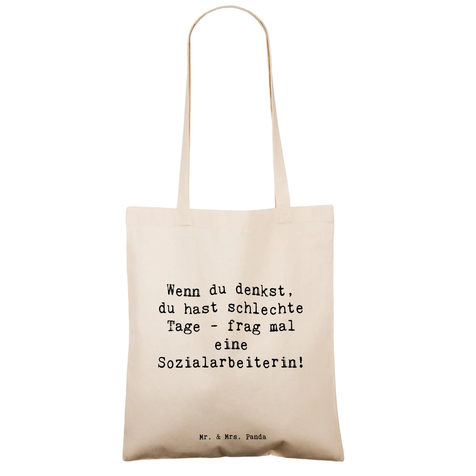 Tote bag Saying Wenn du denkst, du hast schlechte Tage - frag mal eine Sozialarbeiterin! Shopper, Einkaufstasche, Jutebeutel, Tragetasche, Tasche, Einkaufstüte, Beutel, Umhängetasche, Beuteltasche, Stoffbeutel, Badetasche, Laptoptasche, Schultertasche, Stofftasche, Strandtasche, Jutetasche, Beruf, Ausbildung, Jubiläum, Abschied, Rente, Kollege, Kollegin, Geschenk, Schenken, Arbeitskollege, Mitarbeiter, Firma, Danke, Dankeschön