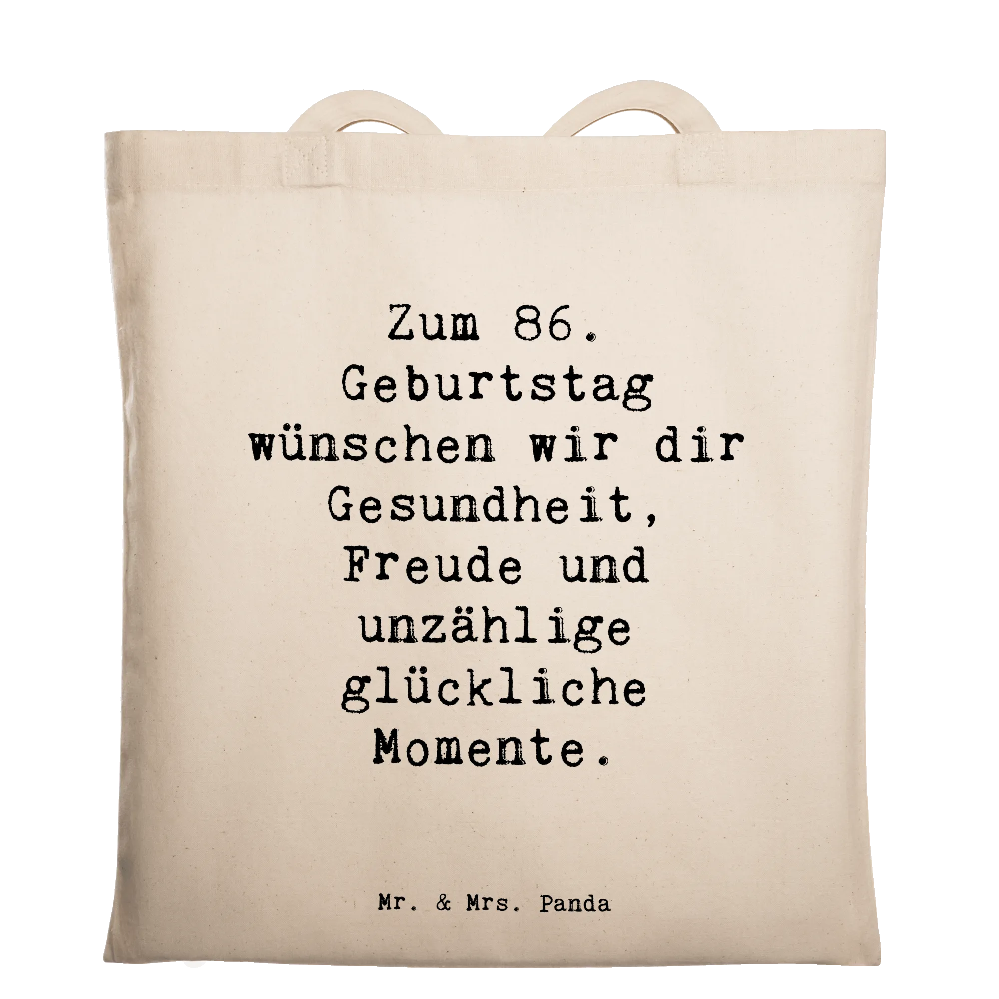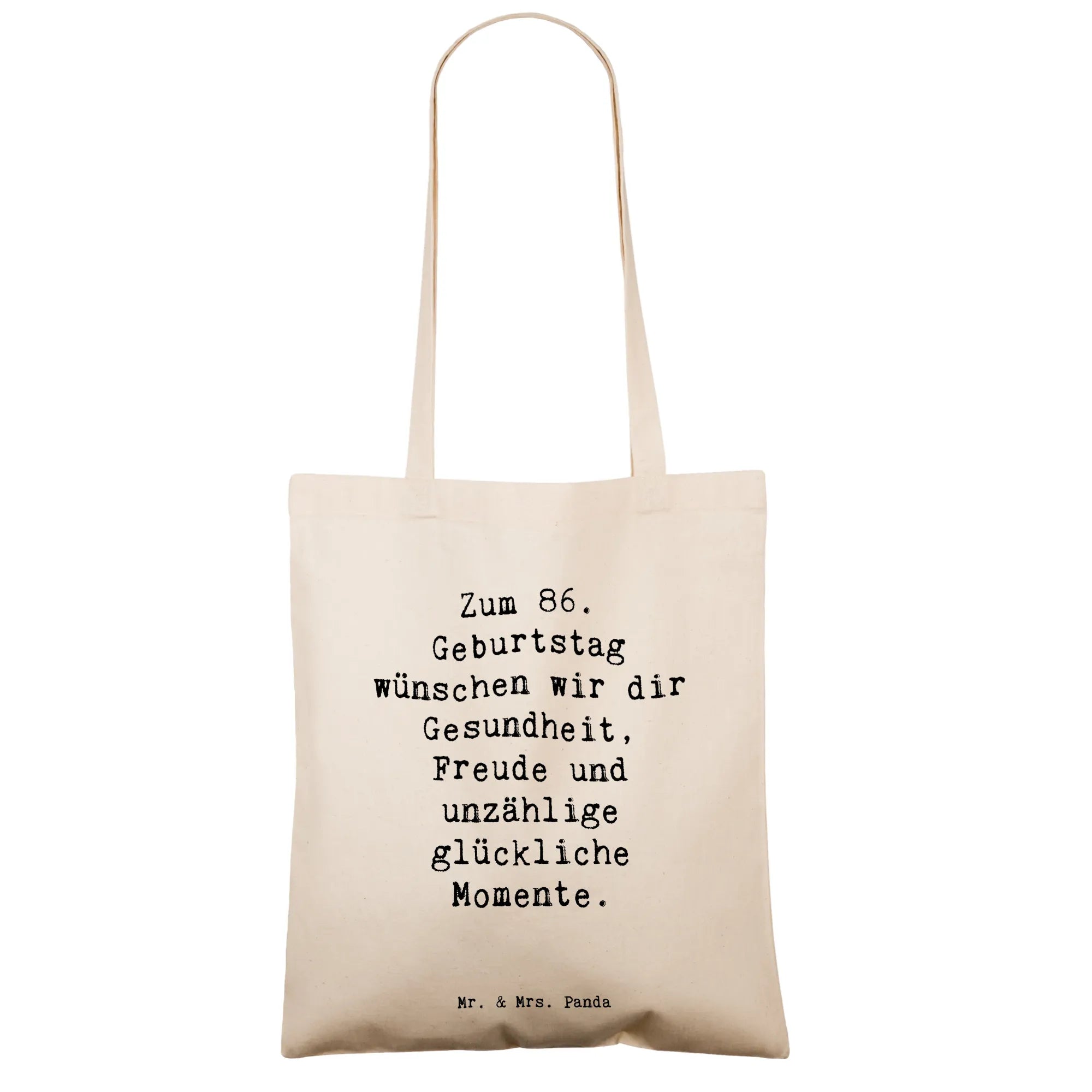 Tote bag Saying Zum 86. Geburtstag wünschen wir dir Gesundheit, Freude und unzählige glückliche Momente. - Transparent