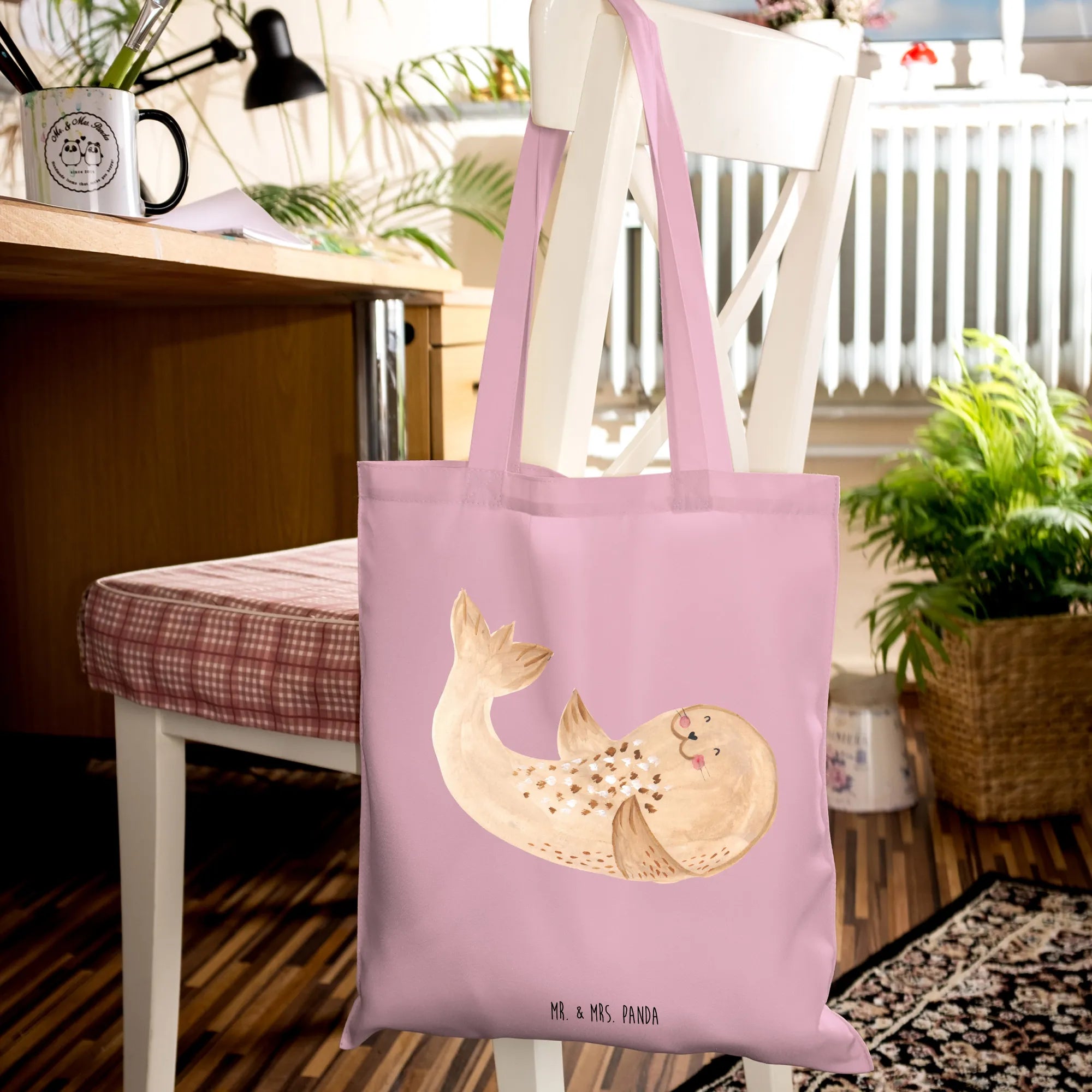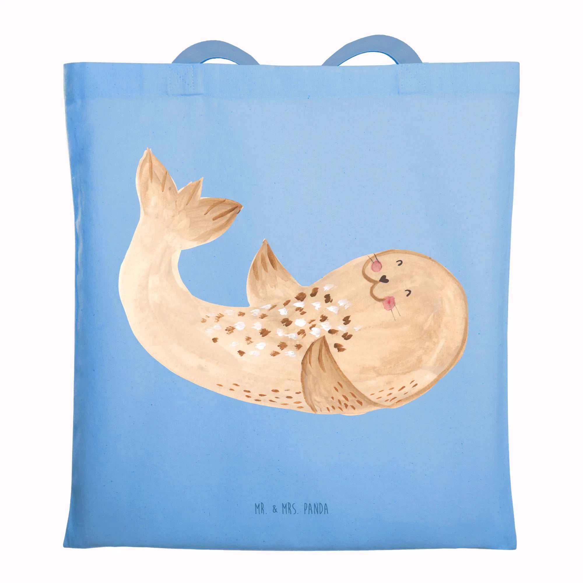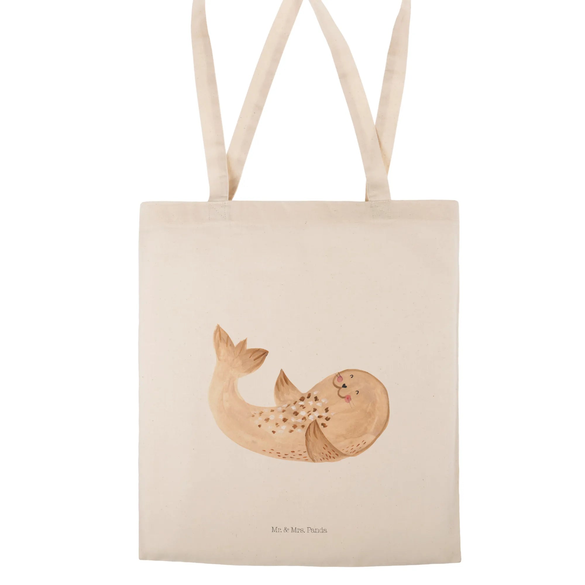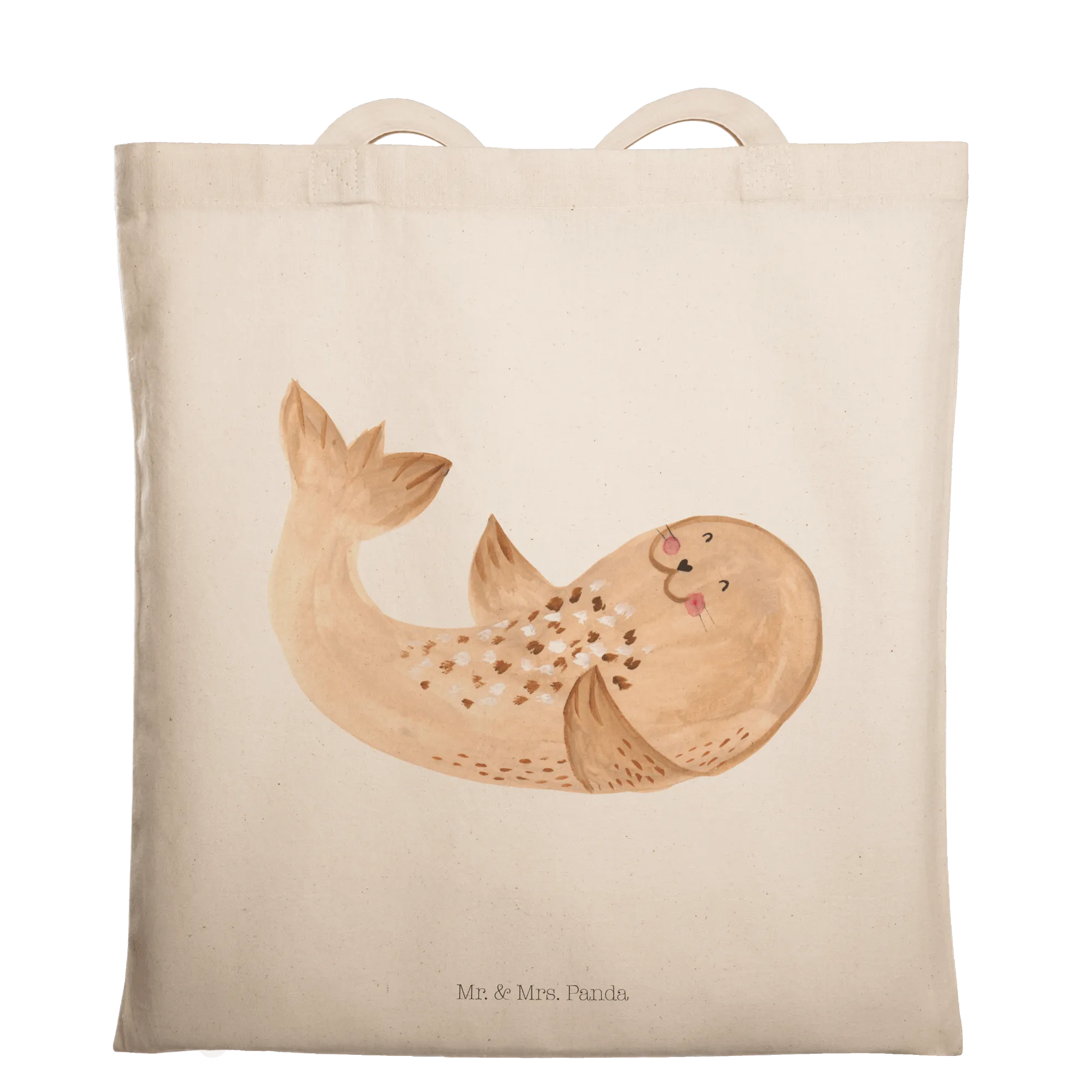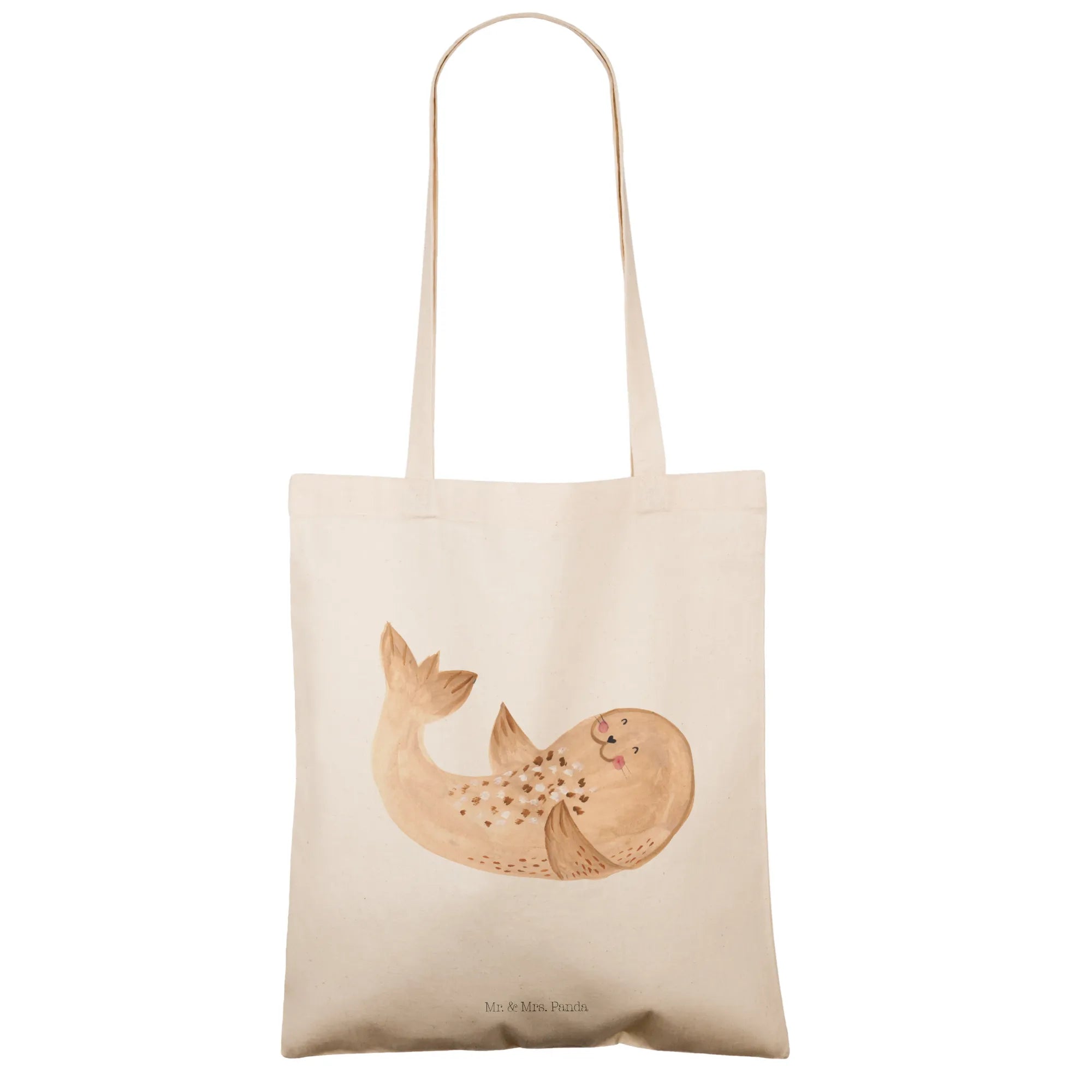 The lovely seal is hand-drawn in watercolor by Mrs. Panda, adding a touch of artistic flair and cuteness that is hard to resist. Seals are known for their playful and peaceful nature, often lounging around on the beach, soaking up the sun, and enjoying life, which perfectly encapsulates the spirit of this tote bag. With its cheerful design, this tote bag is sure to bring a smile to anyone's face and is a wonderful reminder of the joyous moments spent by the sea.