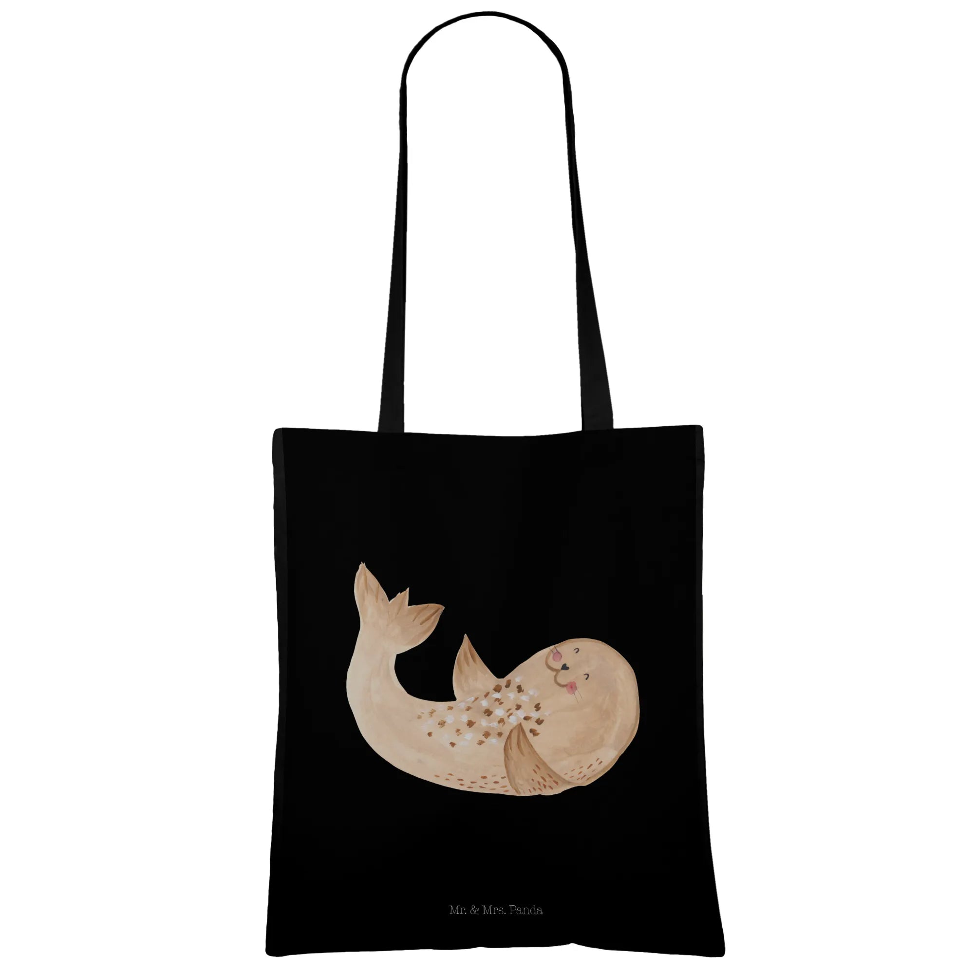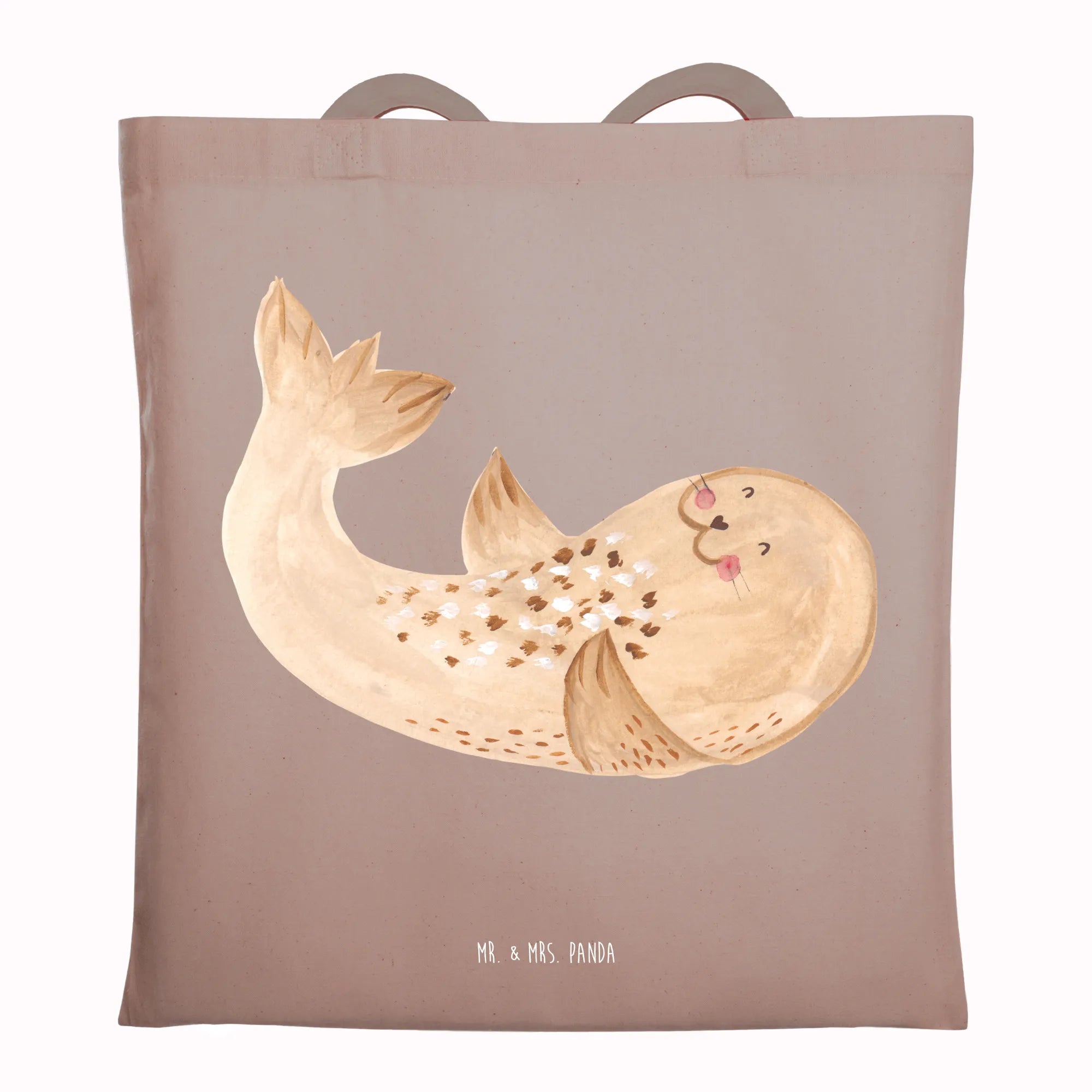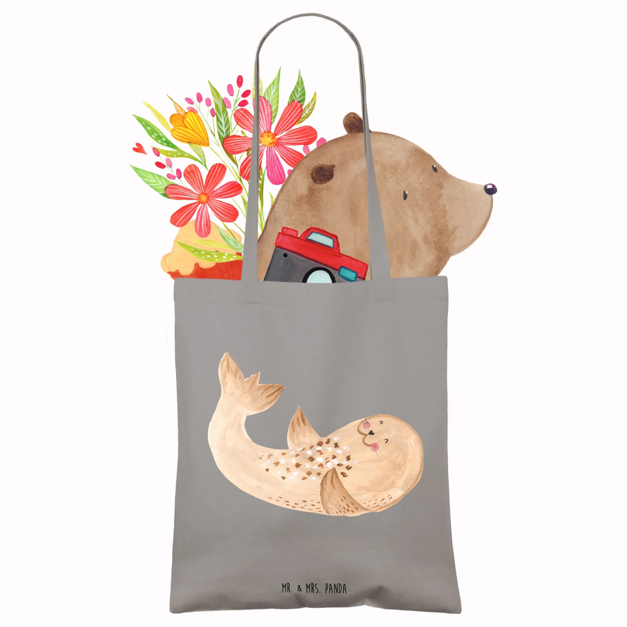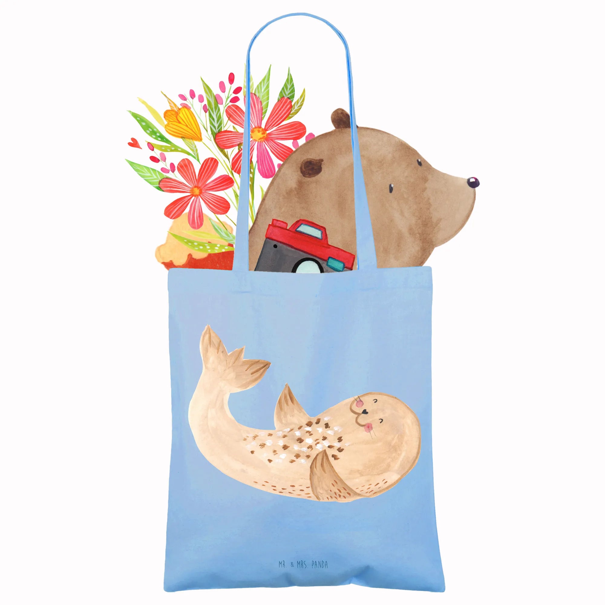 The lovely seal is hand-drawn in watercolor by Mrs. Panda, adding a touch of artistic flair and cuteness that is hard to resist. Seals are known for their playful and peaceful nature, often lounging around on the beach, soaking up the sun, and enjoying life, which perfectly encapsulates the spirit of this tote bag. With its cheerful design, this tote bag is sure to bring a smile to anyone's face and is a wonderful reminder of the joyous moments spent by the sea.