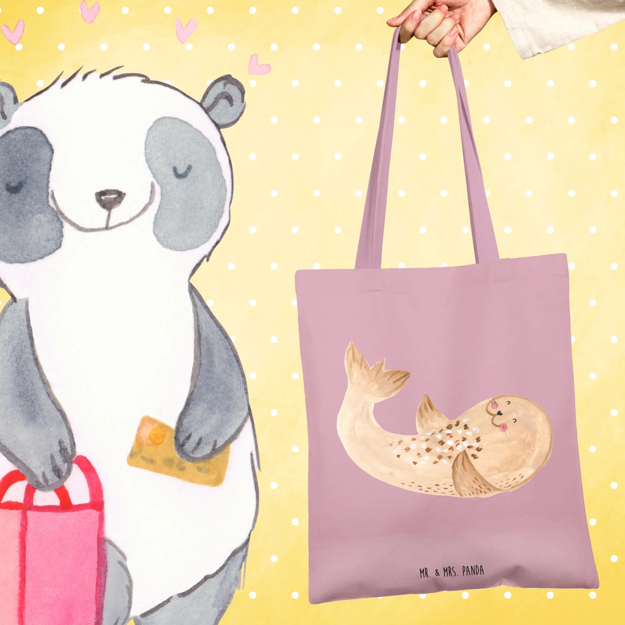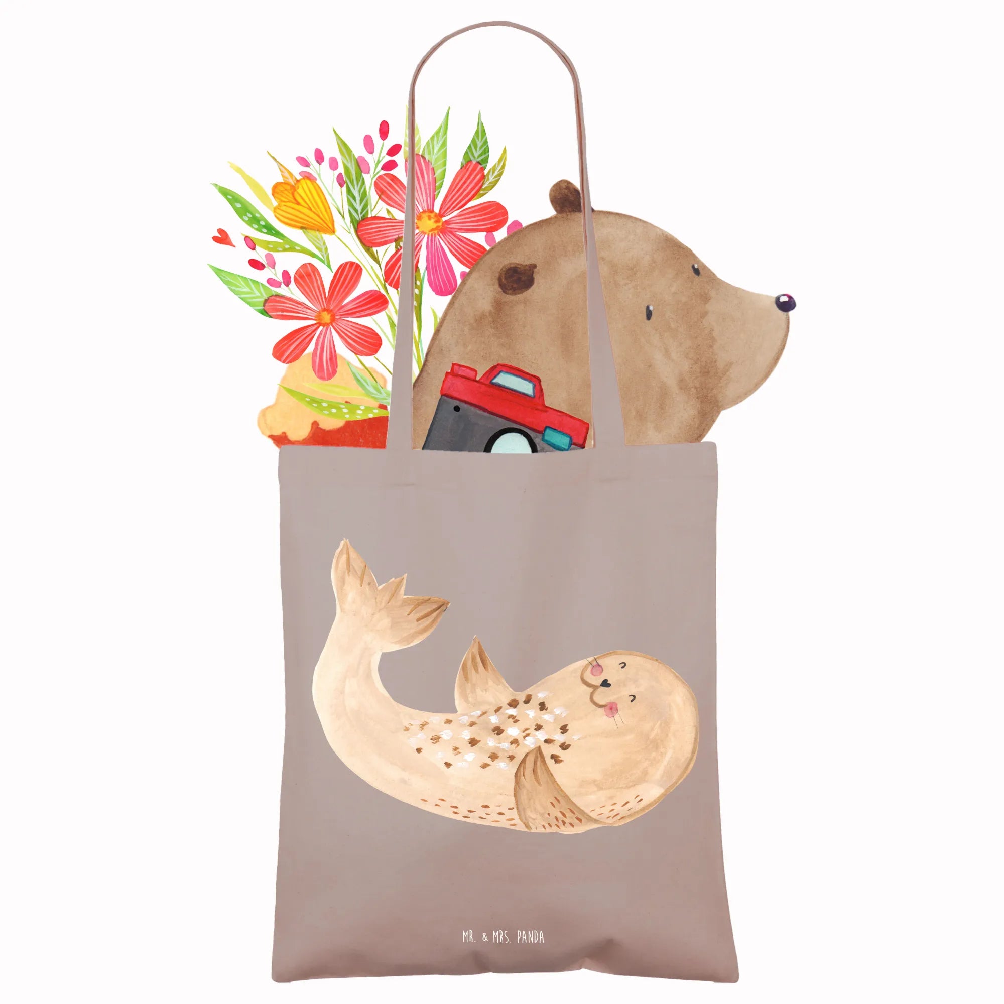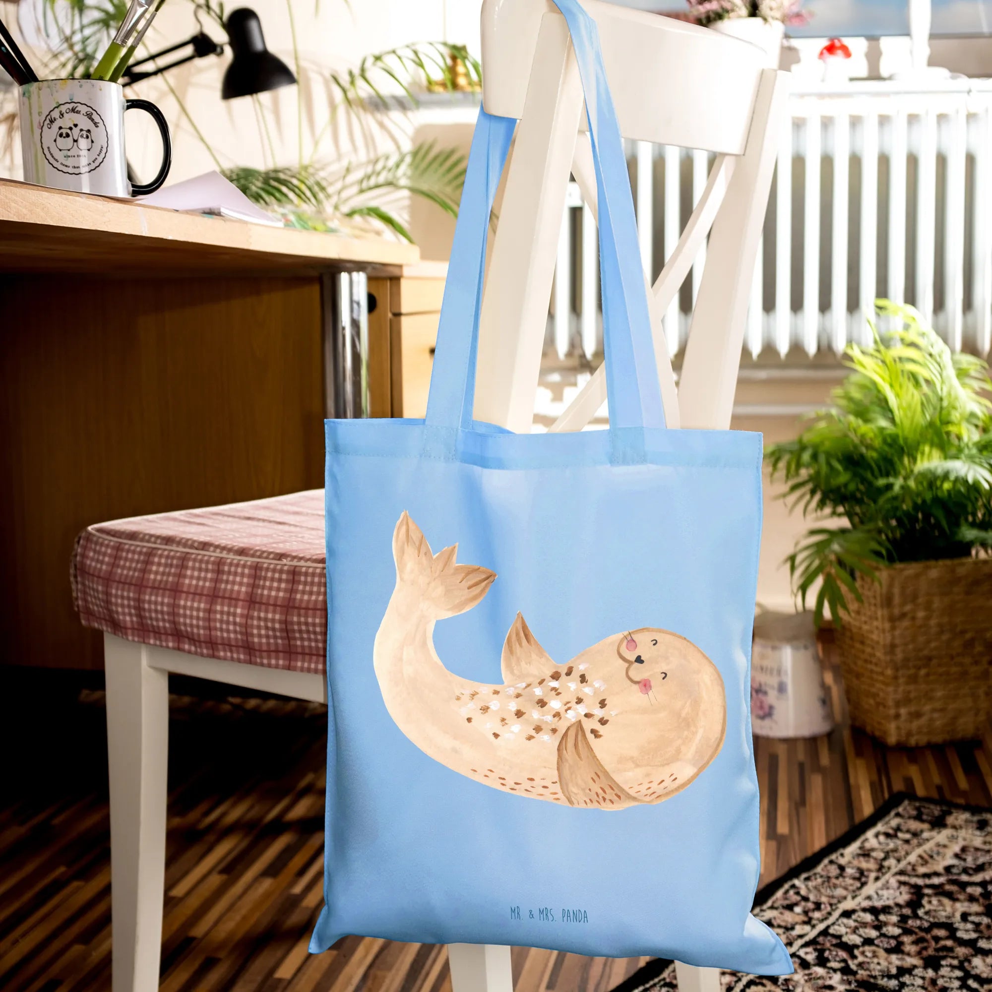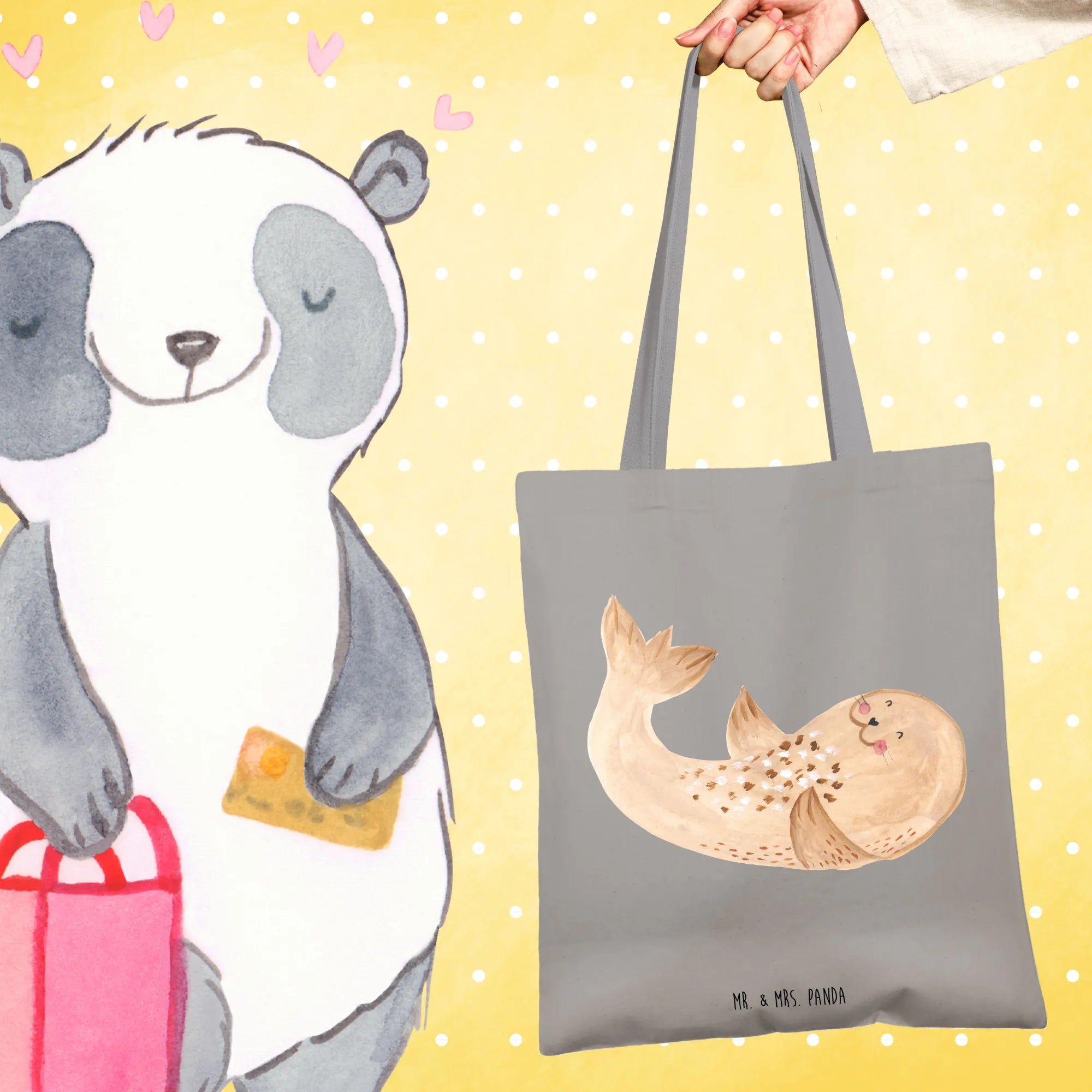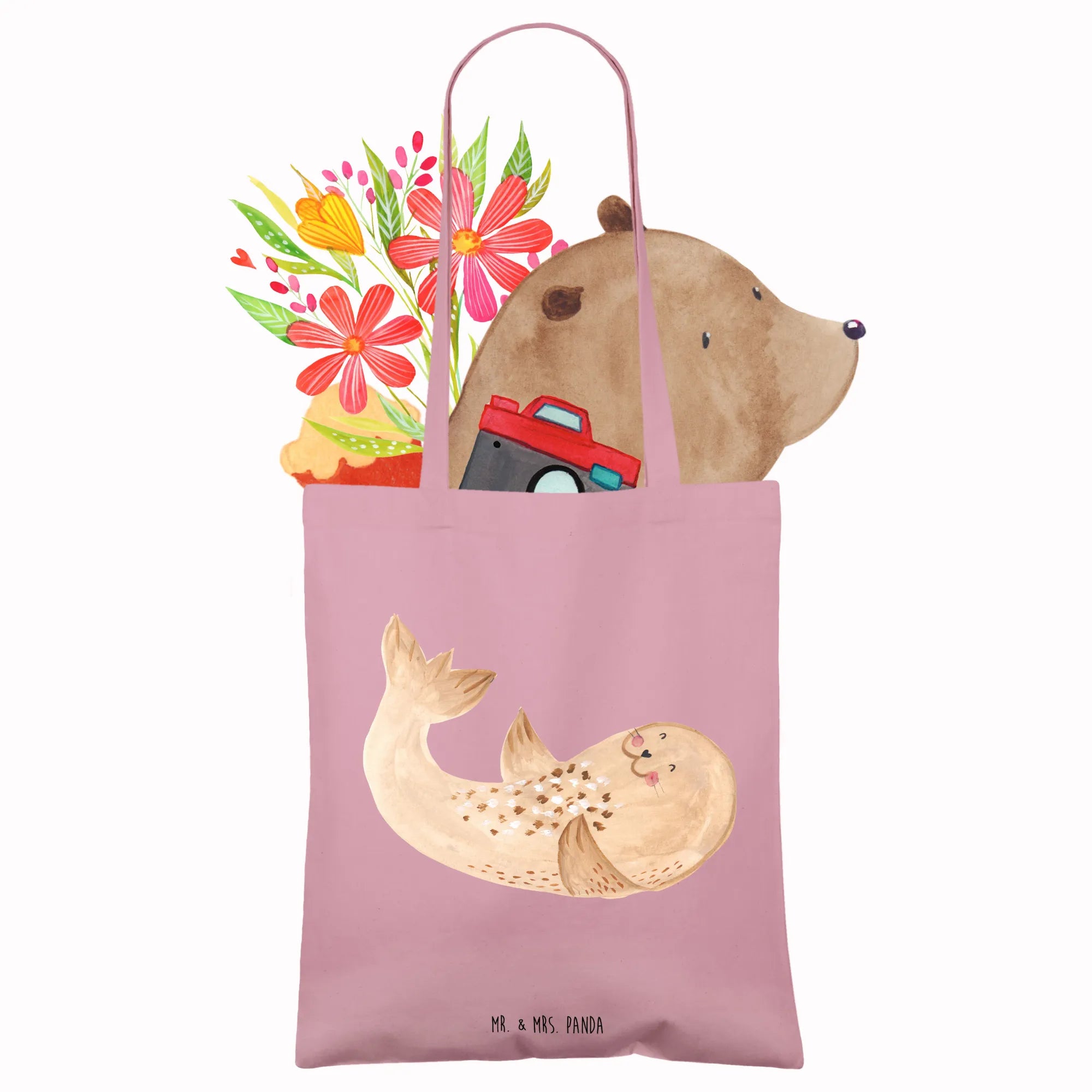 The lovely seal is hand-drawn in watercolor by Mrs. Panda, adding a touch of artistic flair and cuteness that is hard to resist. Seals are known for their playful and peaceful nature, often lounging around on the beach, soaking up the sun, and enjoying life, which perfectly encapsulates the spirit of this tote bag. With its cheerful design, this tote bag is sure to bring a smile to anyone's face and is a wonderful reminder of the joyous moments spent by the sea.