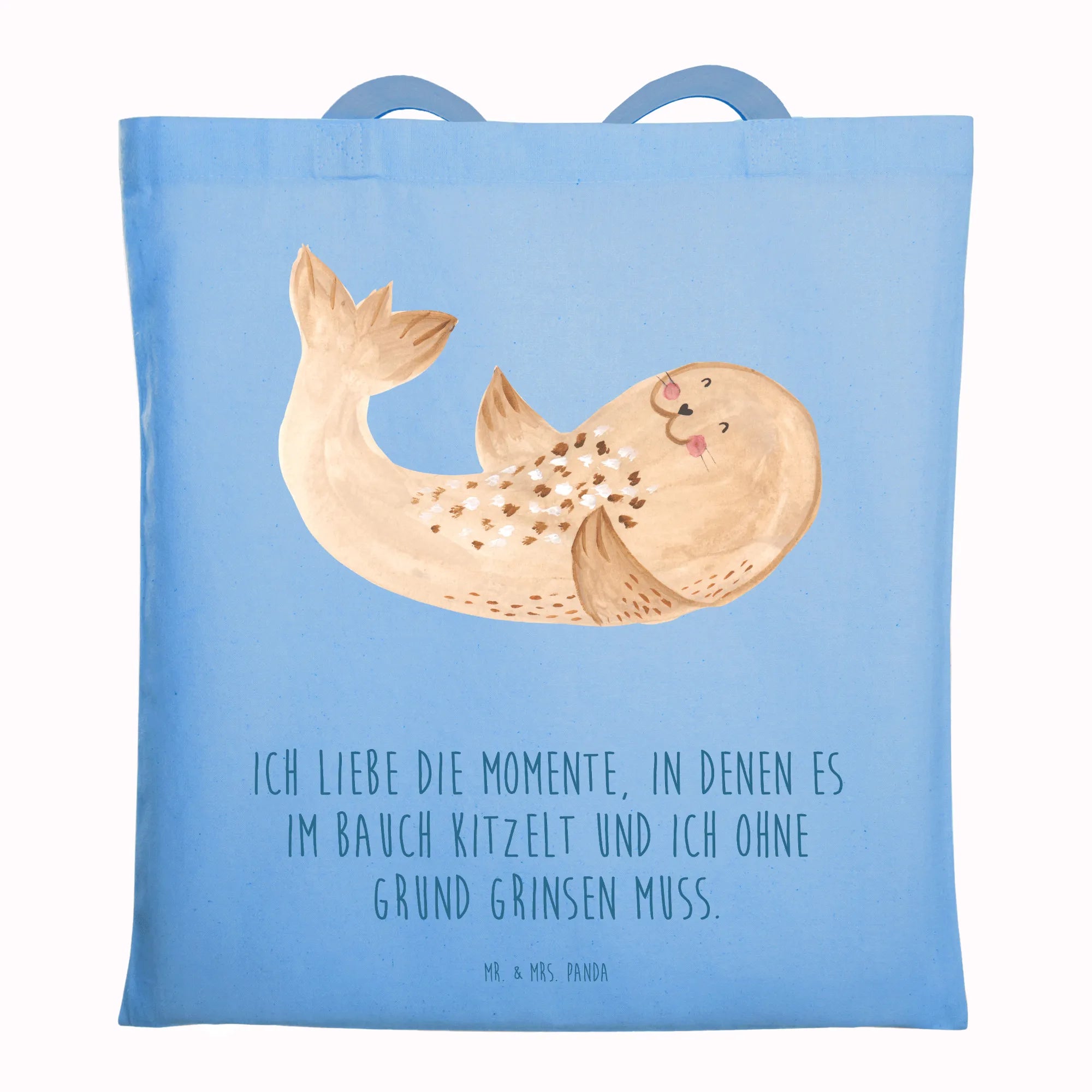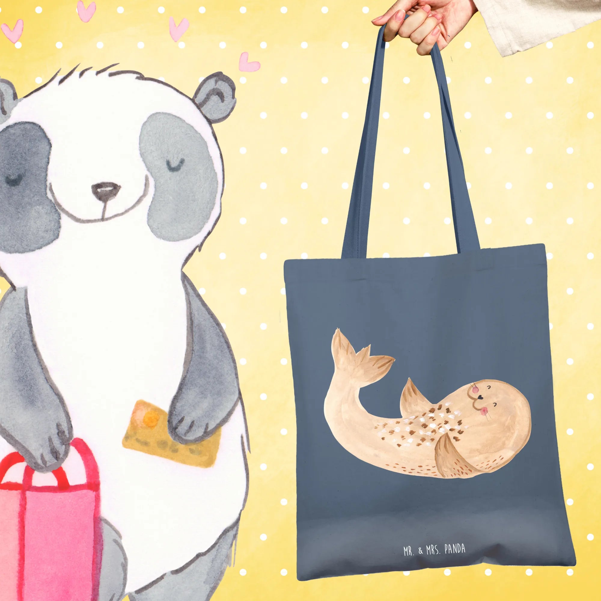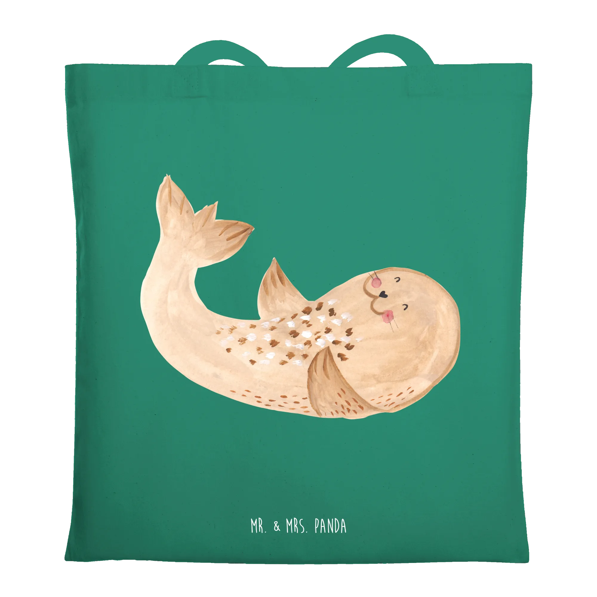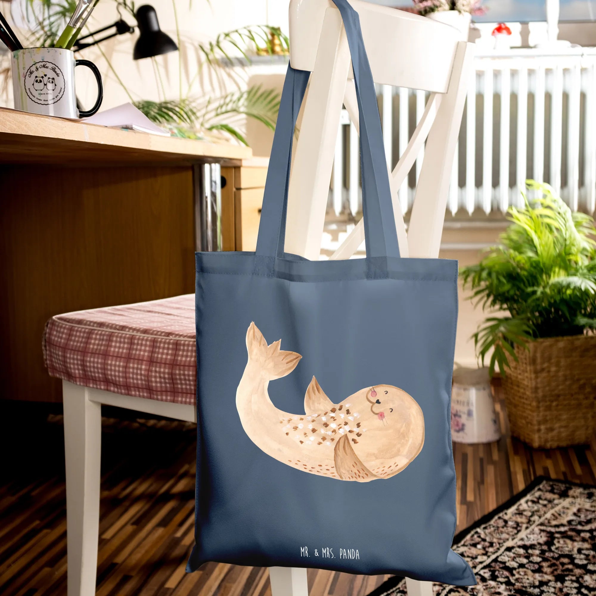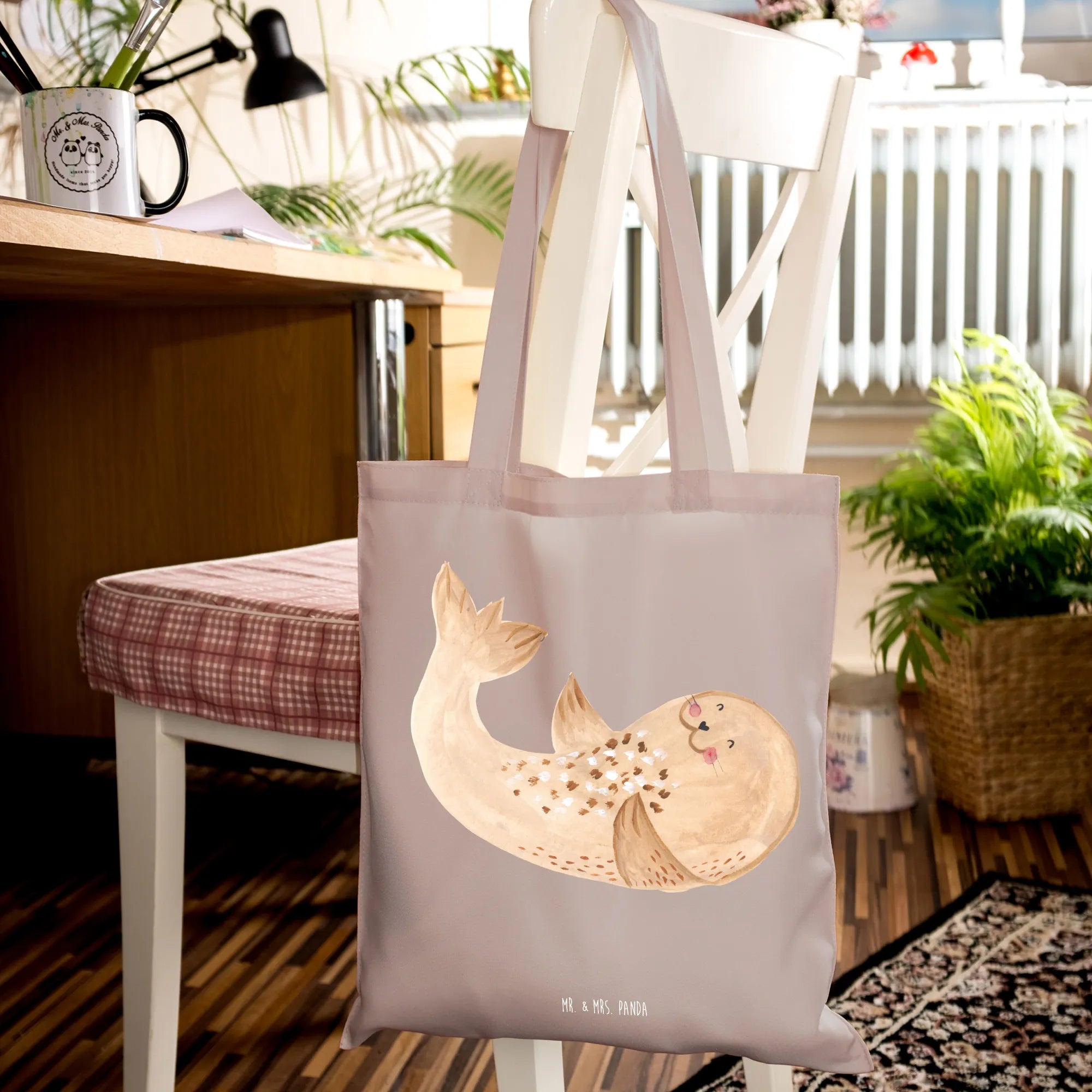 The lovely seal is hand-drawn in watercolor by Mrs. Panda, adding a touch of artistic flair and cuteness that is hard to resist. Seals are known for their playful and peaceful nature, often lounging around on the beach, soaking up the sun, and enjoying life, which perfectly encapsulates the spirit of this tote bag. With its cheerful design, this tote bag is sure to bring a smile to anyone's face and is a wonderful reminder of the joyous moments spent by the sea.