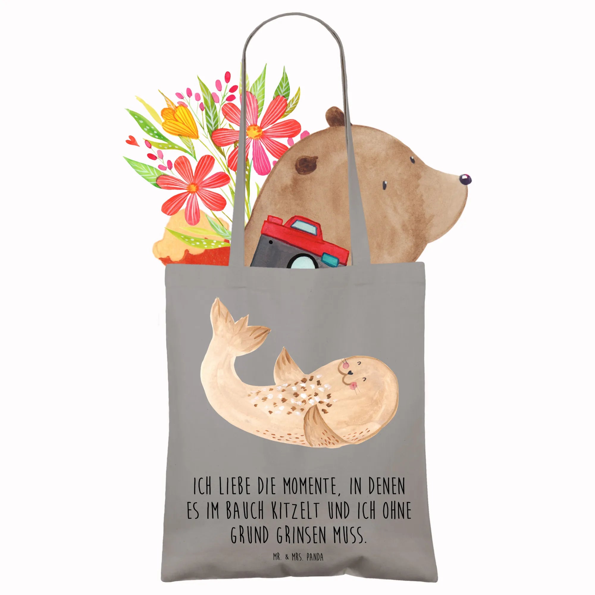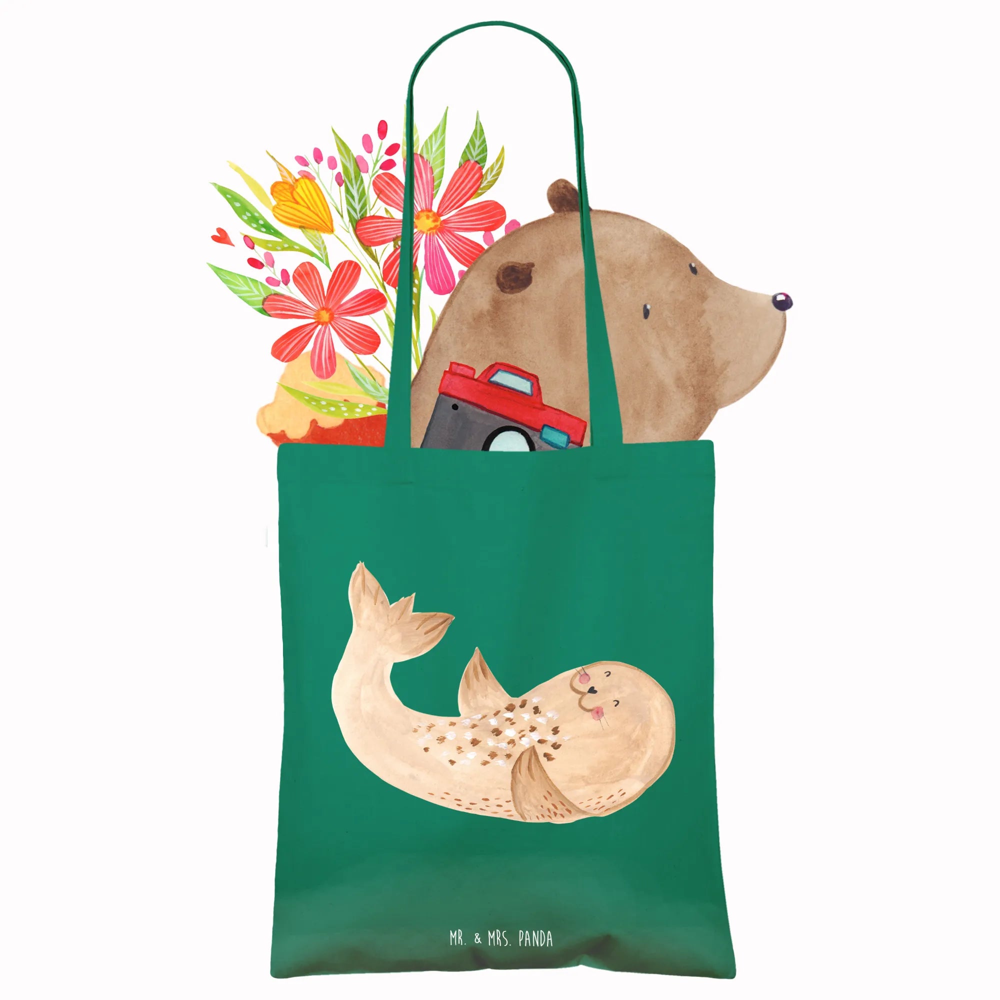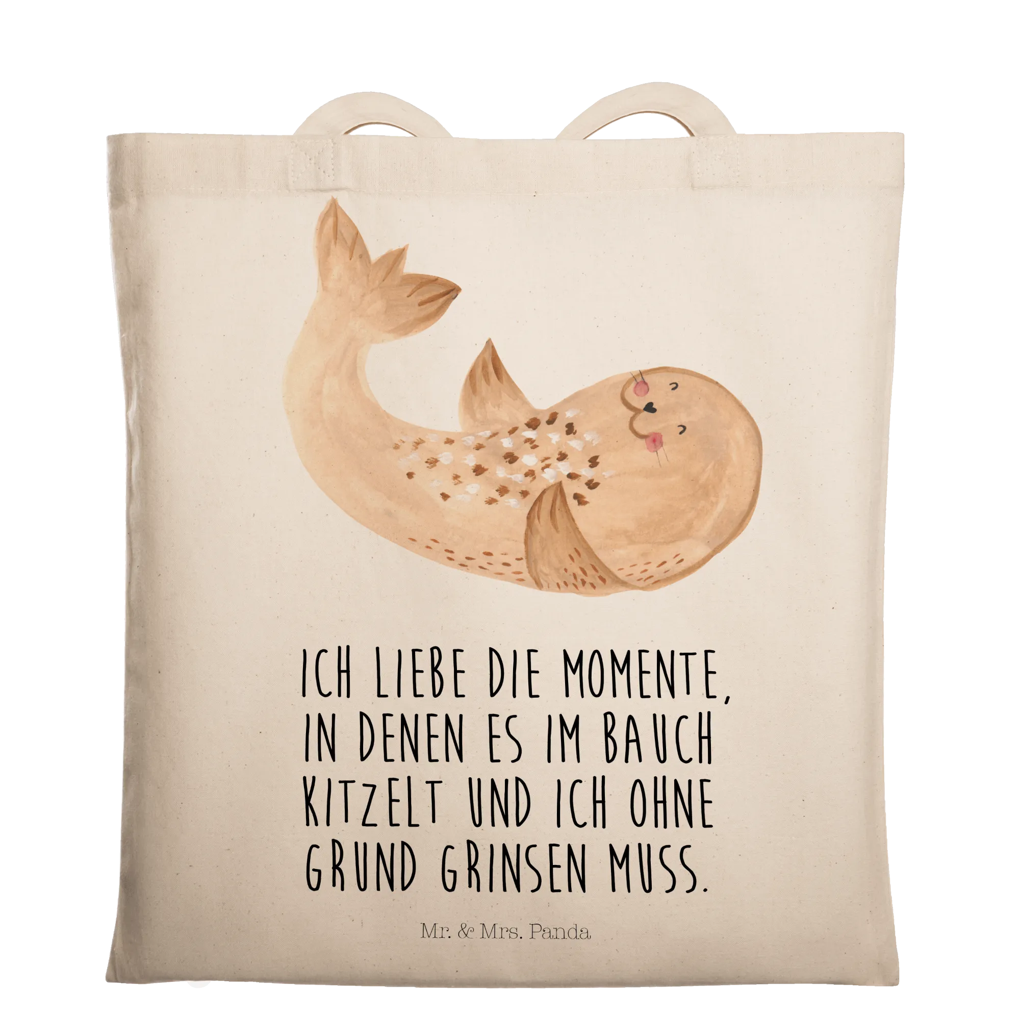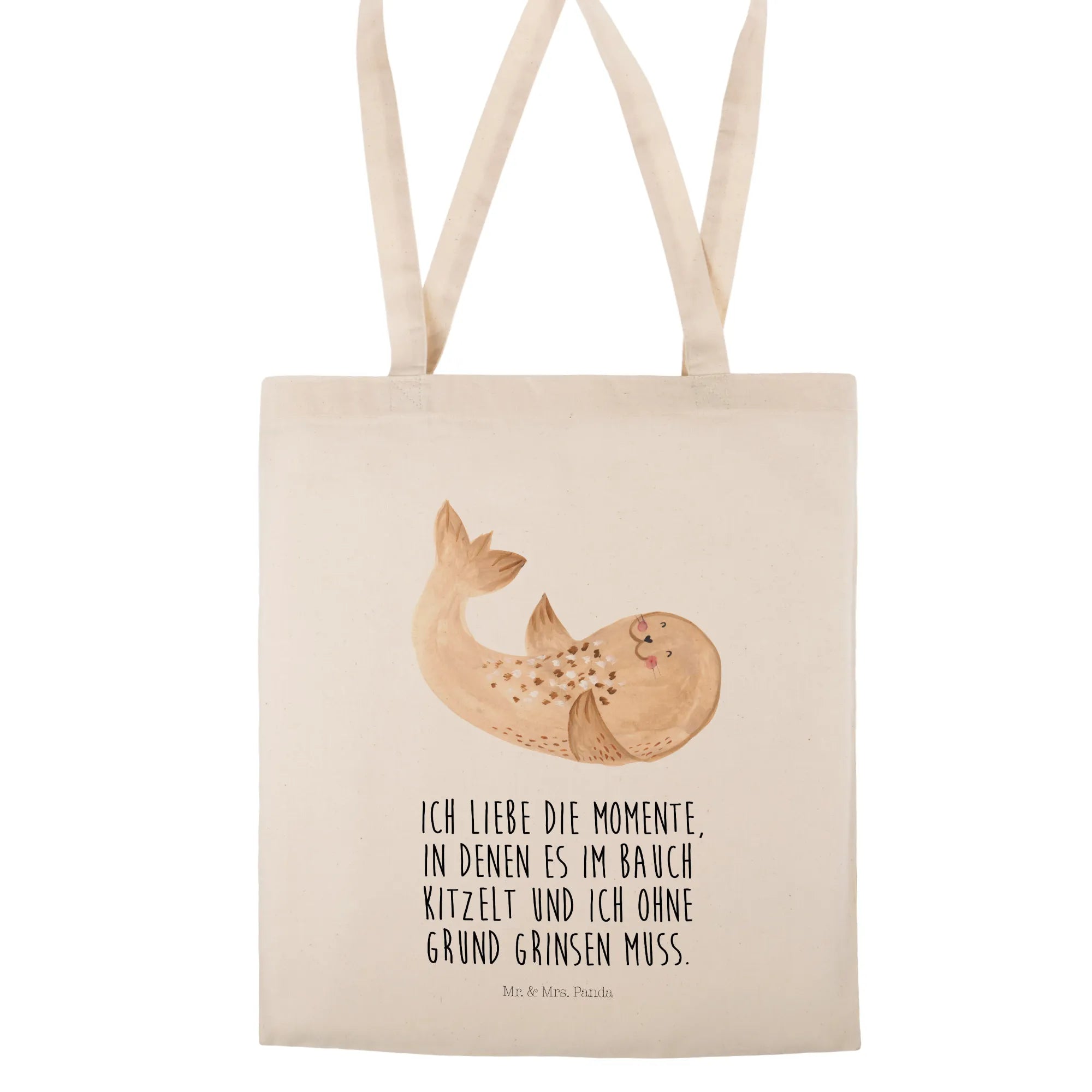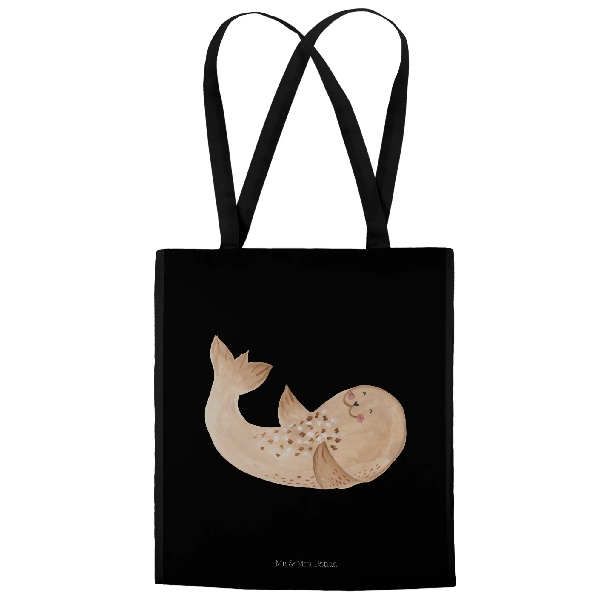 The lovely seal is hand-drawn in watercolor by Mrs. Panda, adding a touch of artistic flair and cuteness that is hard to resist. Seals are known for their playful and peaceful nature, often lounging around on the beach, soaking up the sun, and enjoying life, which perfectly encapsulates the spirit of this tote bag. With its cheerful design, this tote bag is sure to bring a smile to anyone's face and is a wonderful reminder of the joyous moments spent by the sea.