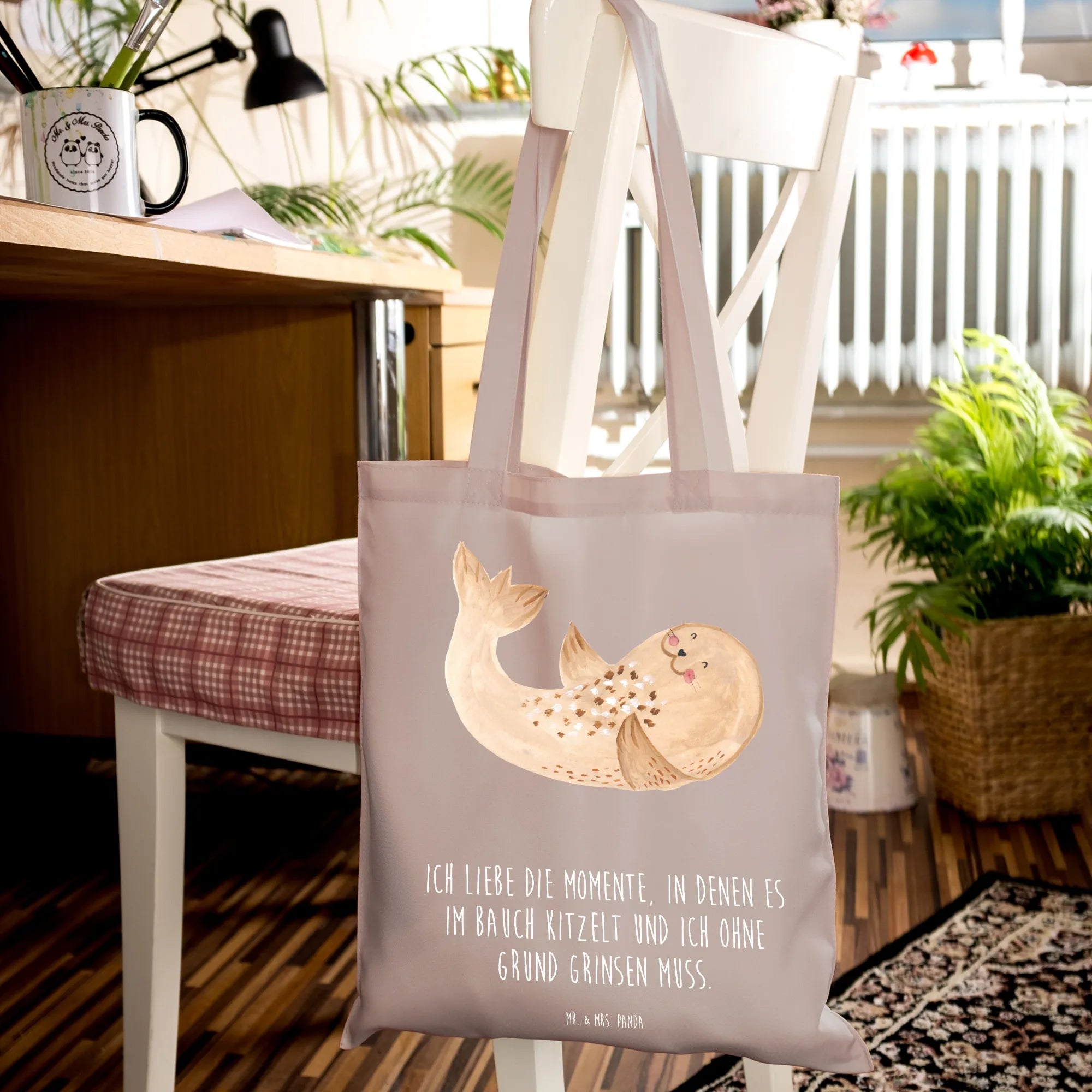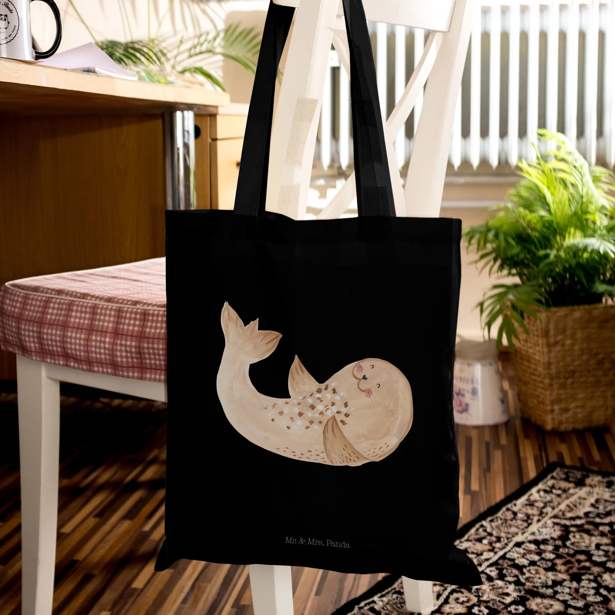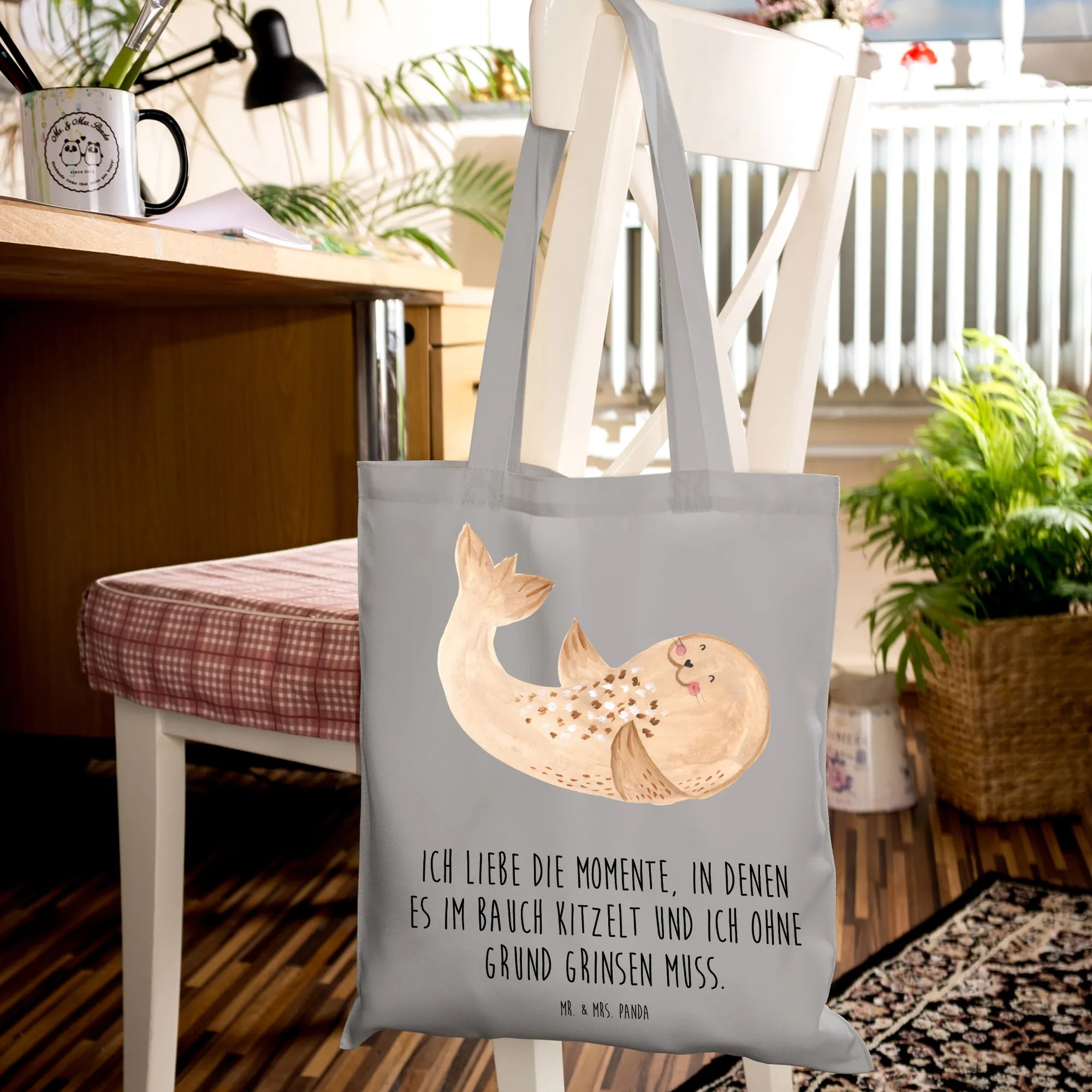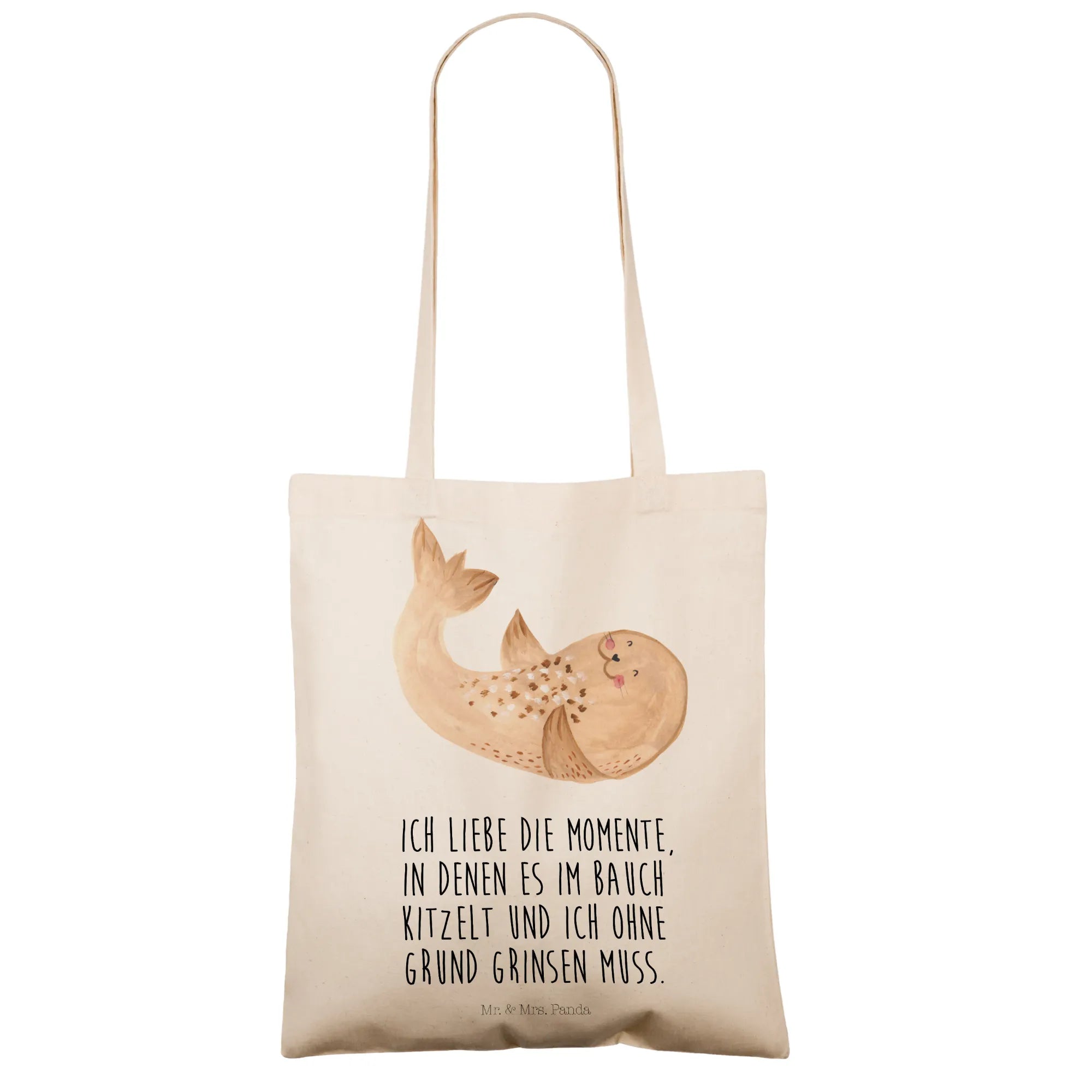 The lovely seal is hand-drawn in watercolor by Mrs. Panda, adding a touch of artistic flair and cuteness that is hard to resist. Seals are known for their playful and peaceful nature, often lounging around on the beach, soaking up the sun, and enjoying life, which perfectly encapsulates the spirit of this tote bag. With its cheerful design, this tote bag is sure to bring a smile to anyone's face and is a wonderful reminder of the joyous moments spent by the sea.