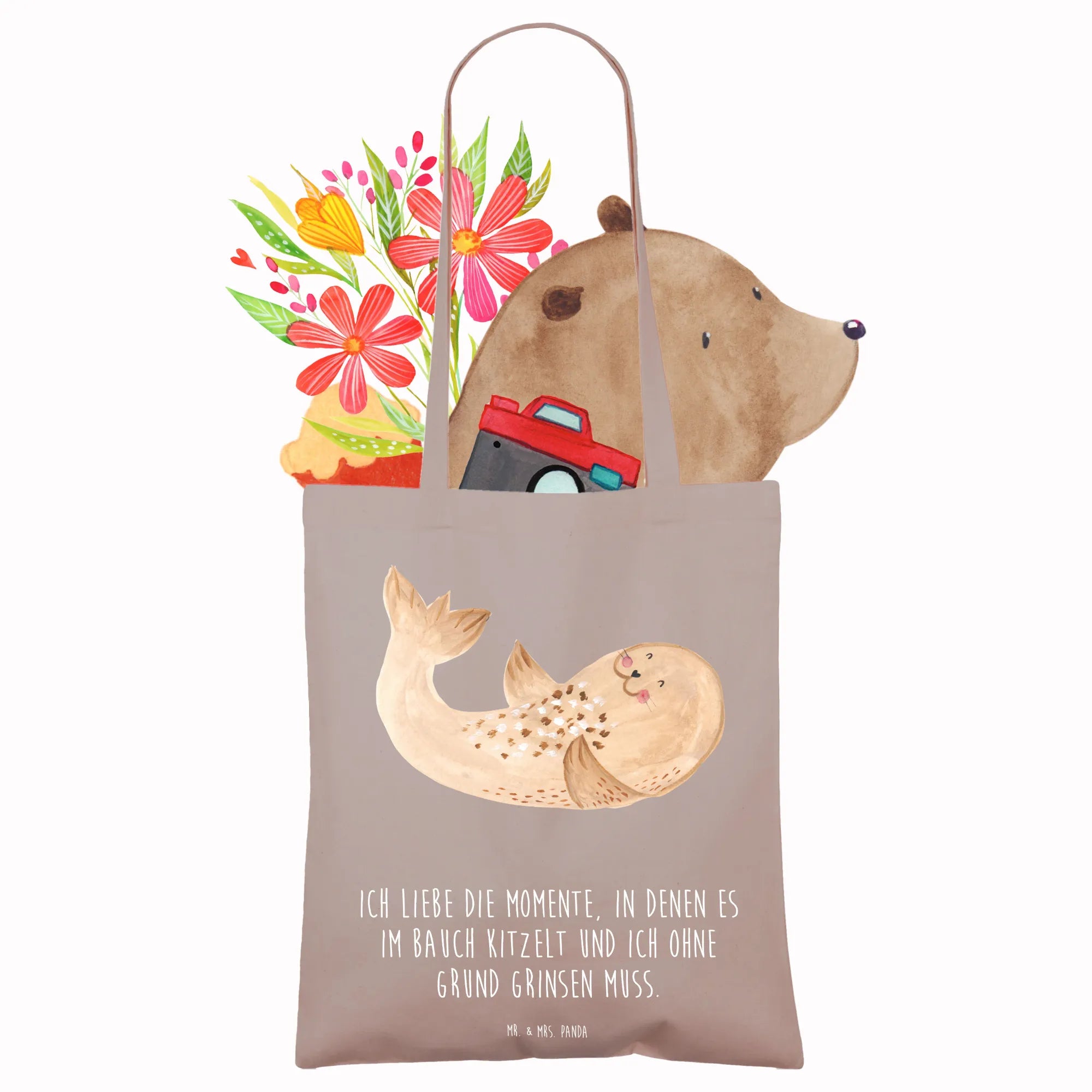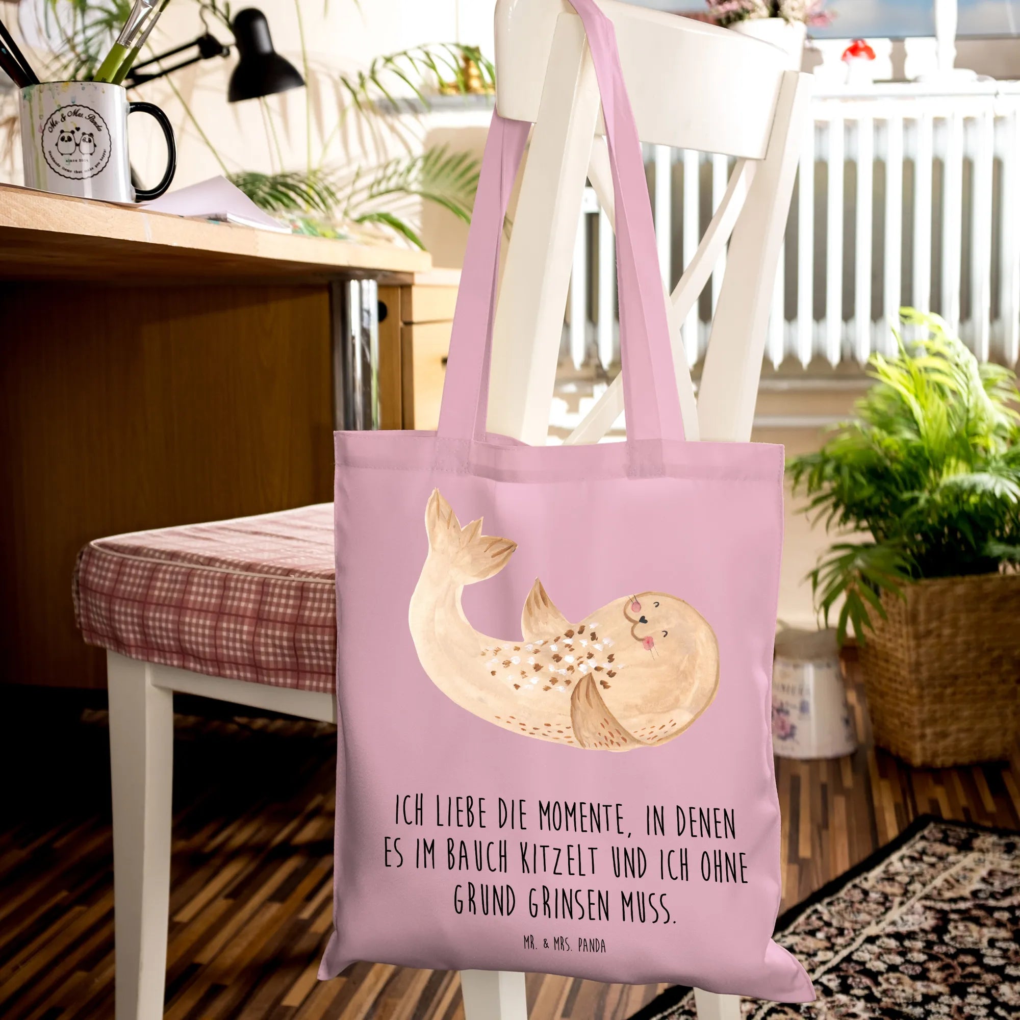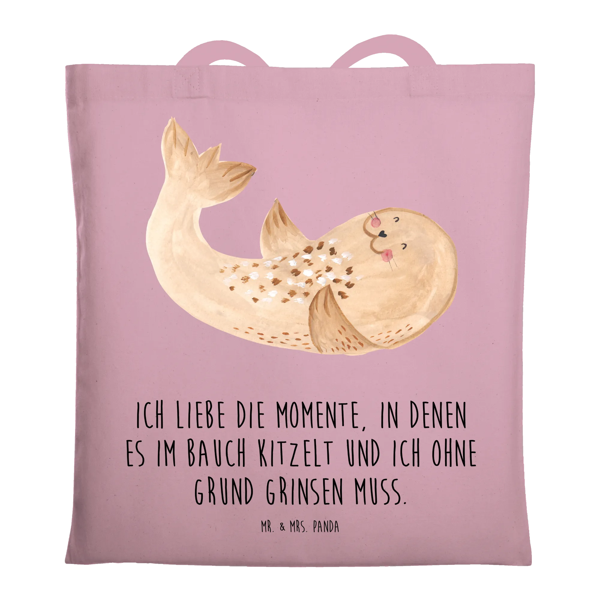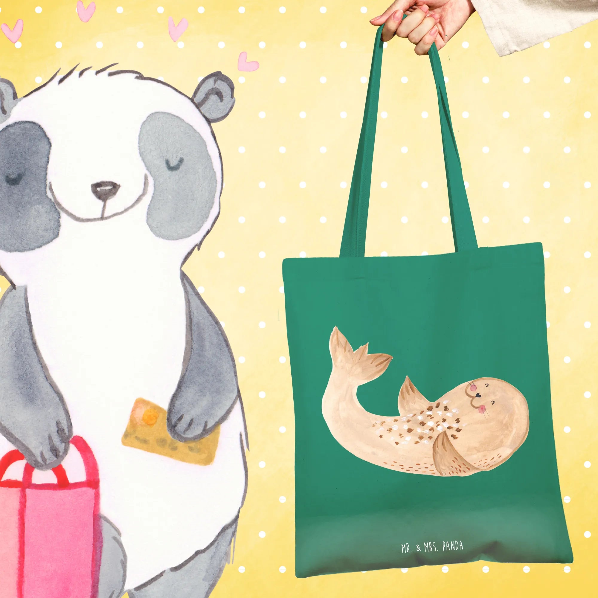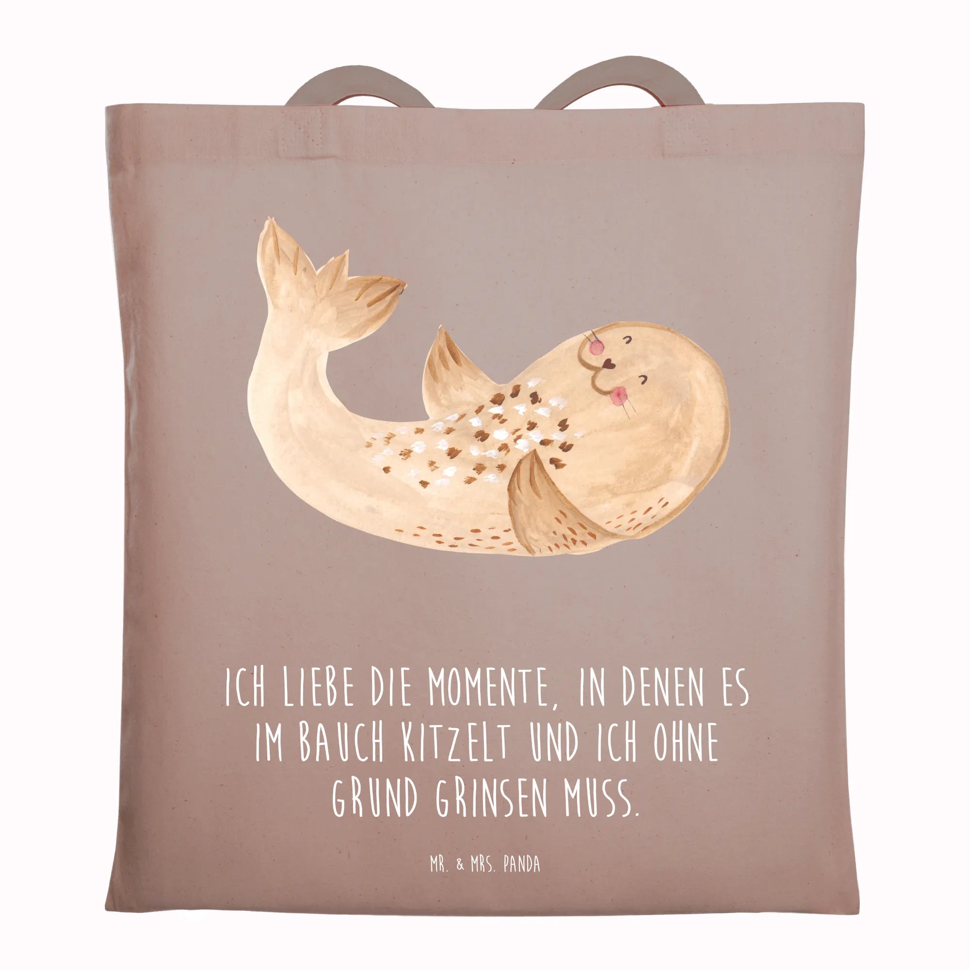 The lovely seal is hand-drawn in watercolor by Mrs. Panda, adding a touch of artistic flair and cuteness that is hard to resist. Seals are known for their playful and peaceful nature, often lounging around on the beach, soaking up the sun, and enjoying life, which perfectly encapsulates the spirit of this tote bag. With its cheerful design, this tote bag is sure to bring a smile to anyone's face and is a wonderful reminder of the joyous moments spent by the sea.