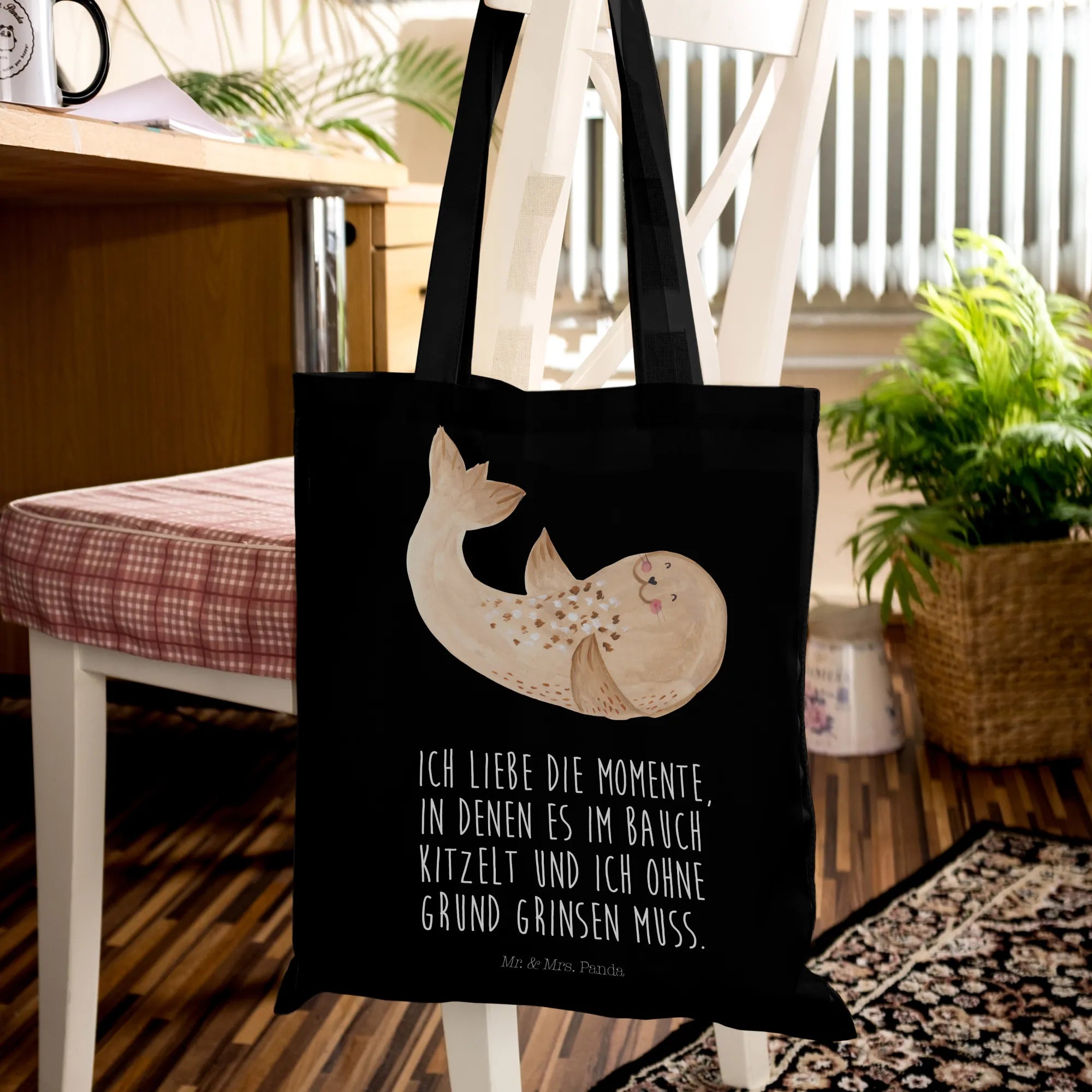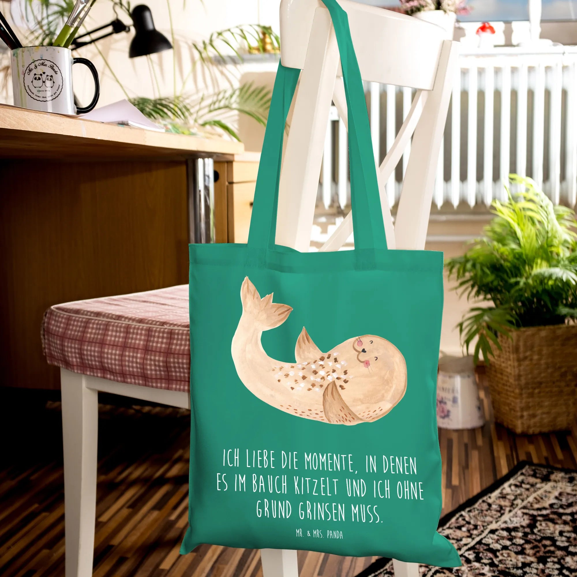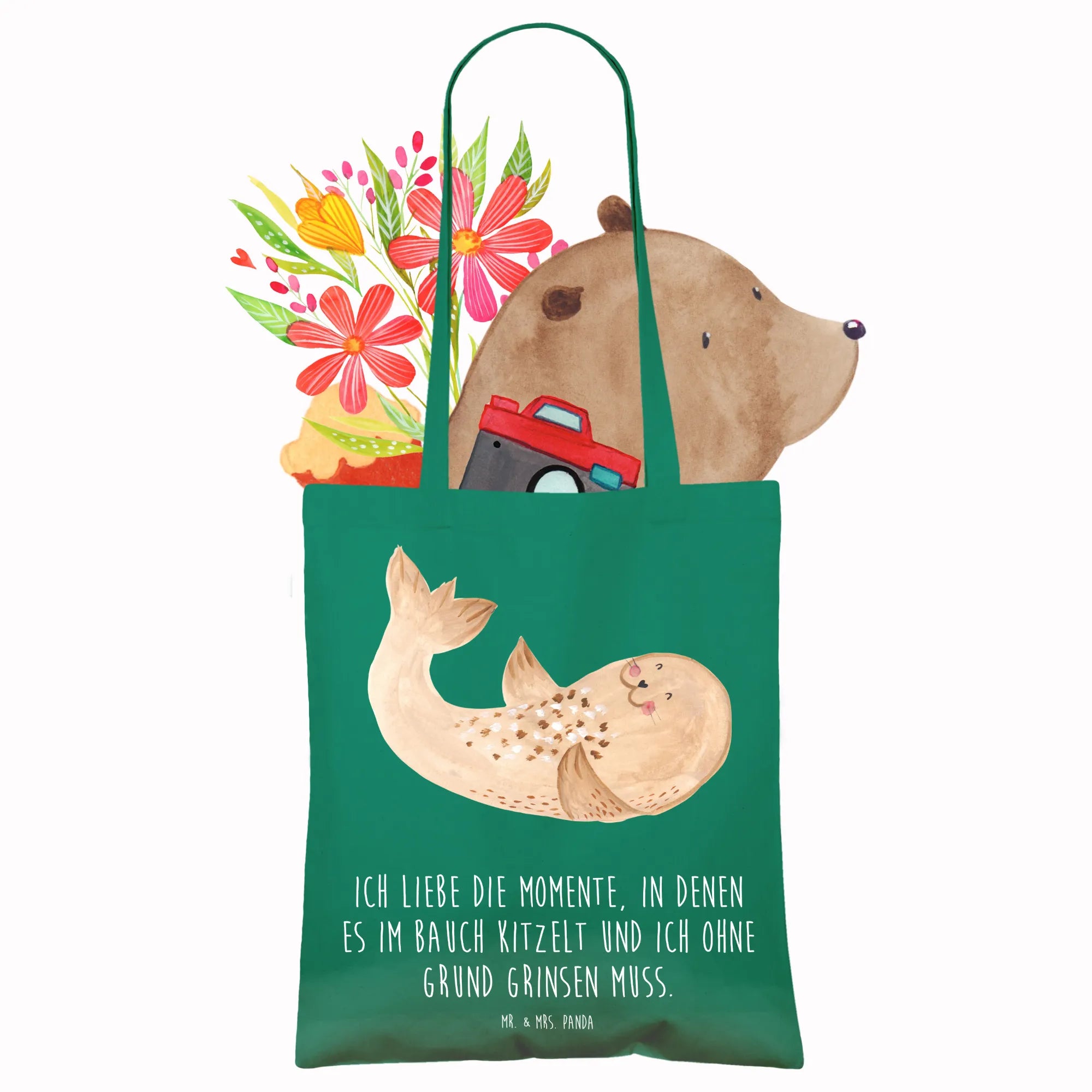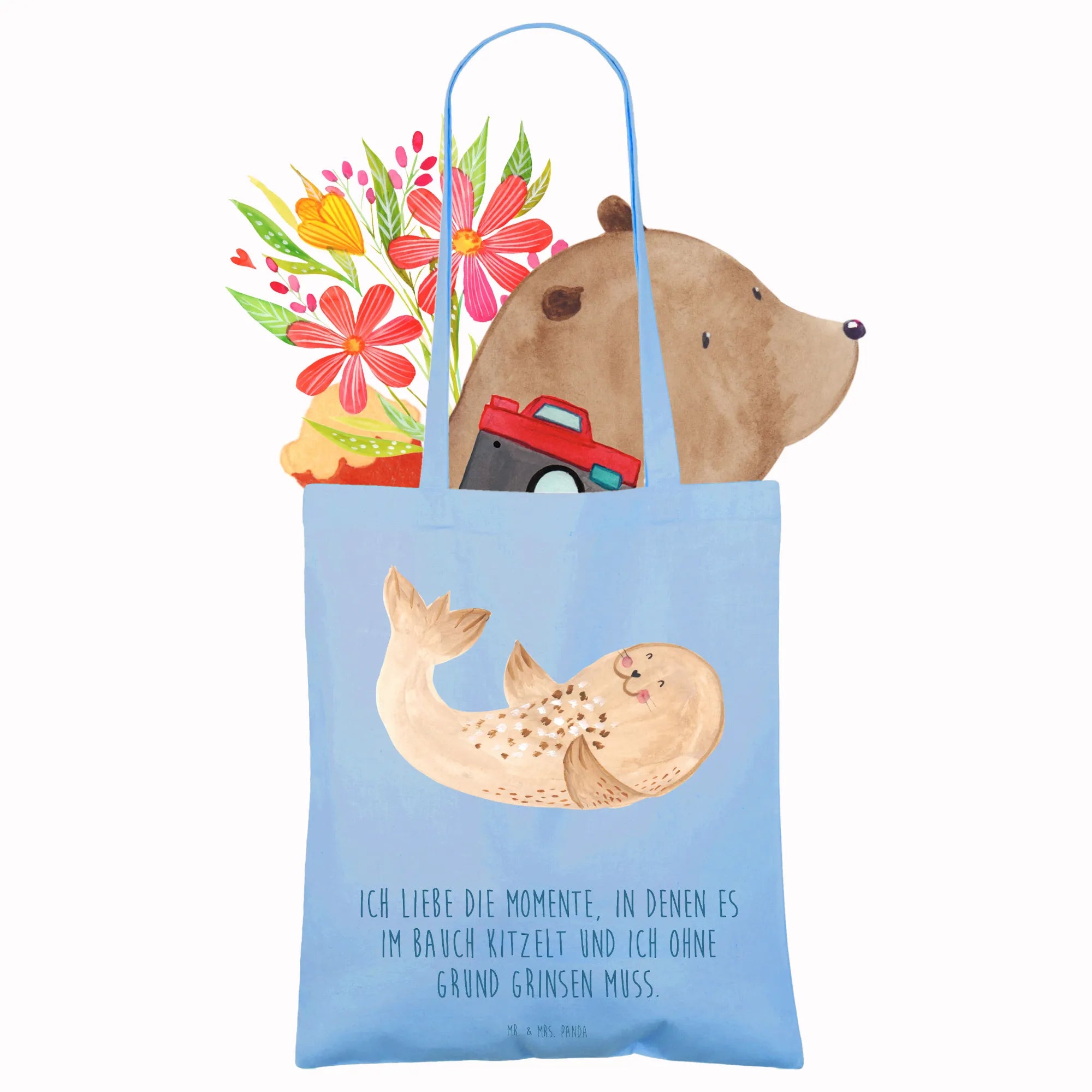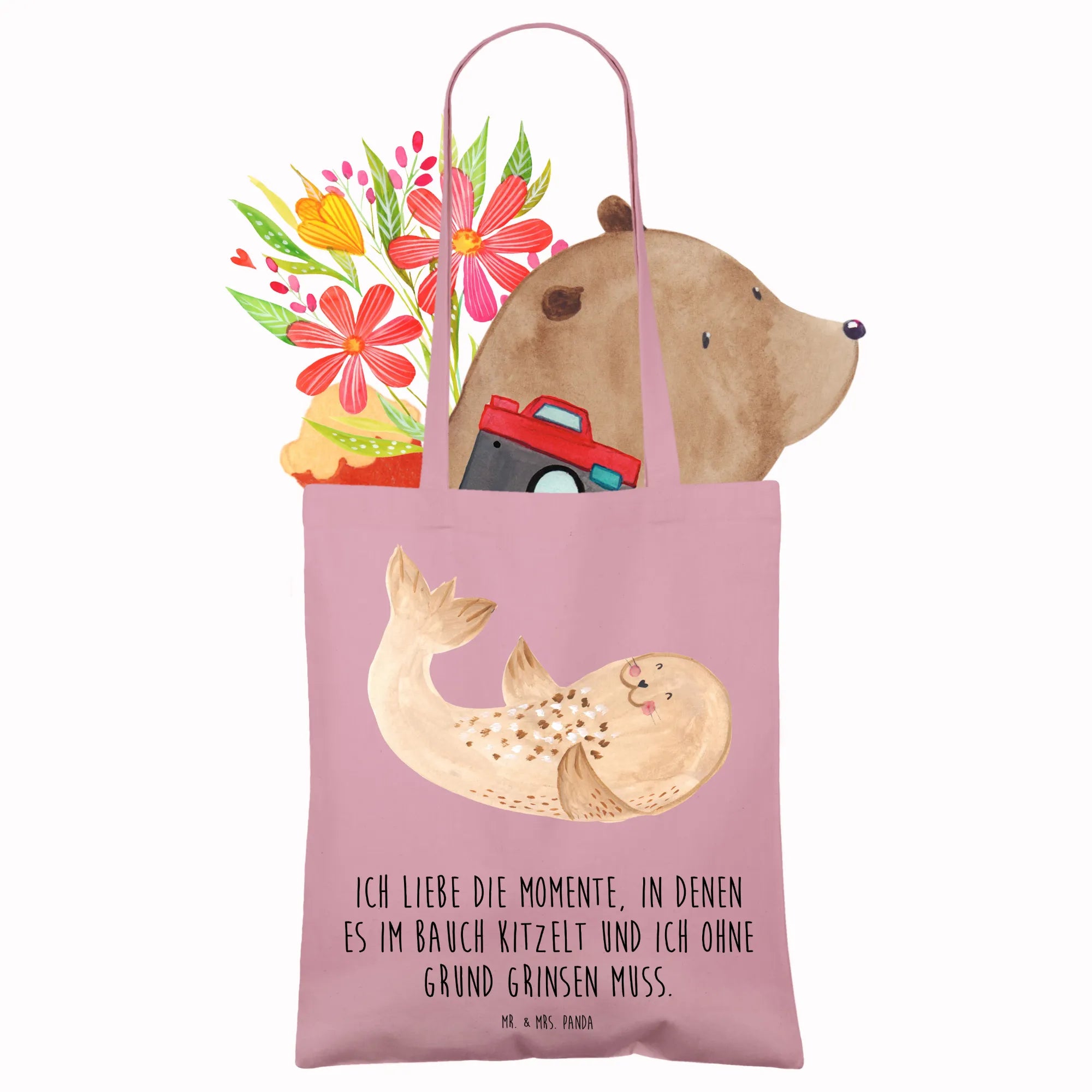 The lovely seal is hand-drawn in watercolor by Mrs. Panda, adding a touch of artistic flair and cuteness that is hard to resist. Seals are known for their playful and peaceful nature, often lounging around on the beach, soaking up the sun, and enjoying life, which perfectly encapsulates the spirit of this tote bag. With its cheerful design, this tote bag is sure to bring a smile to anyone's face and is a wonderful reminder of the joyous moments spent by the sea.