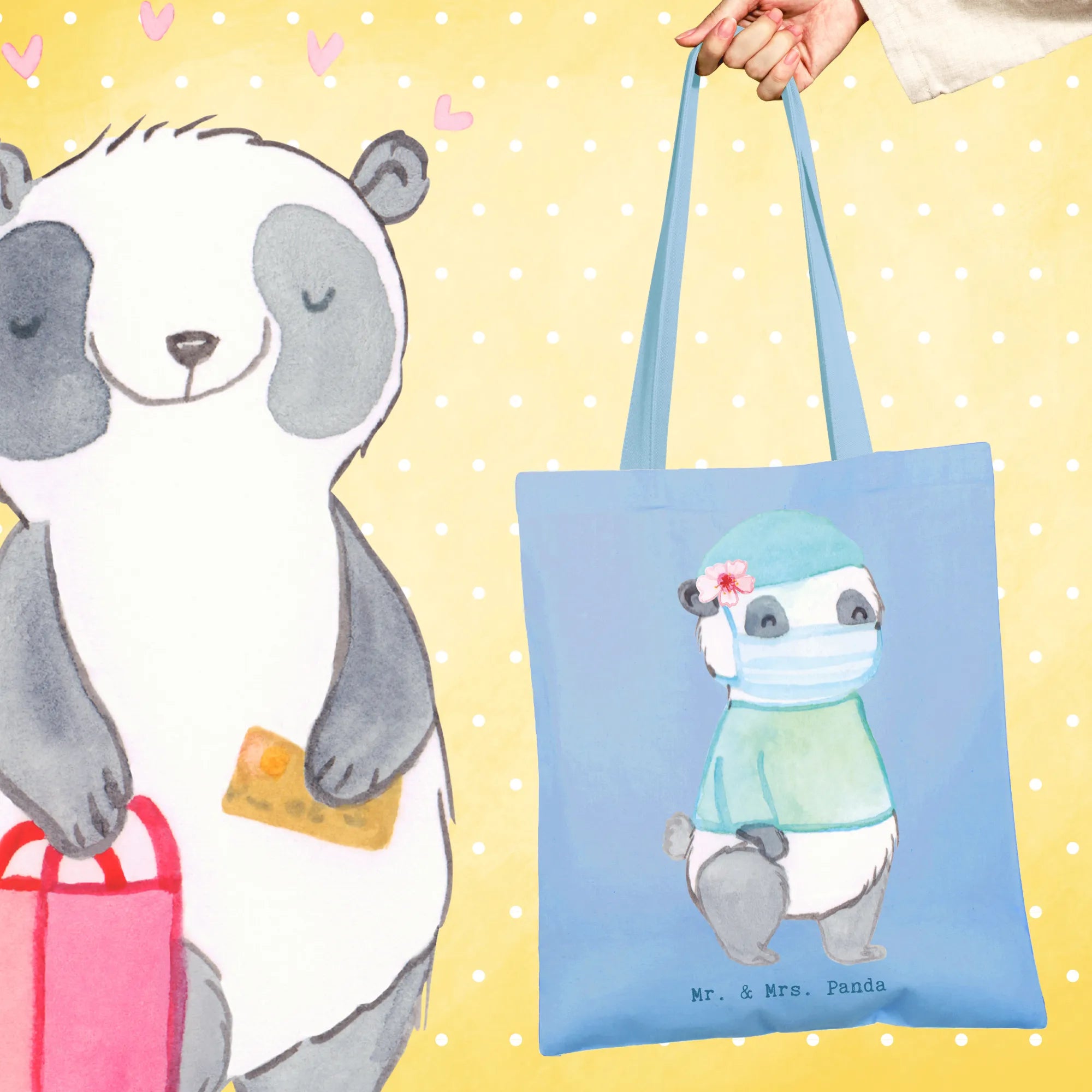• Let your personality shine with our adorable Mr. & Mrs. Panda tote.