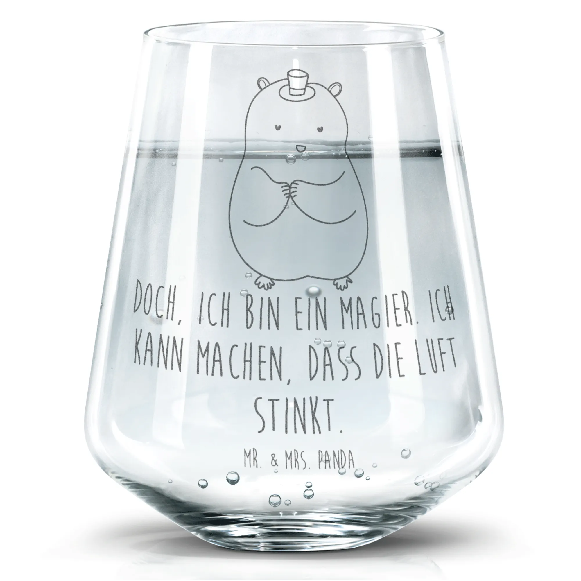 Das Motiv „Doch, ich bin ein Magier. Ich kann machen, dass die Luft stinkt.“ macht es zudem zu einem ganz besonderen Geschenk. Besonders für Tierliebhaber und Freunde von zauberhaften Designs ist dieses Glas ein Must-Have.