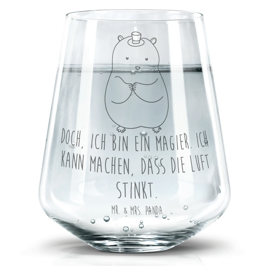 Das Trinkglas "Hamster mit Hut" aus der Small World Kollektion von Mr. & Mrs. Panda ist ein wahrer Blickfang, der gute Laune verbreitet! Mit seiner fröhlichen Darstellung eines kleinen Hamsters, der einen Zylinder trägt, zaubert dieses Glas jedem ein Lächeln ins Gesicht.