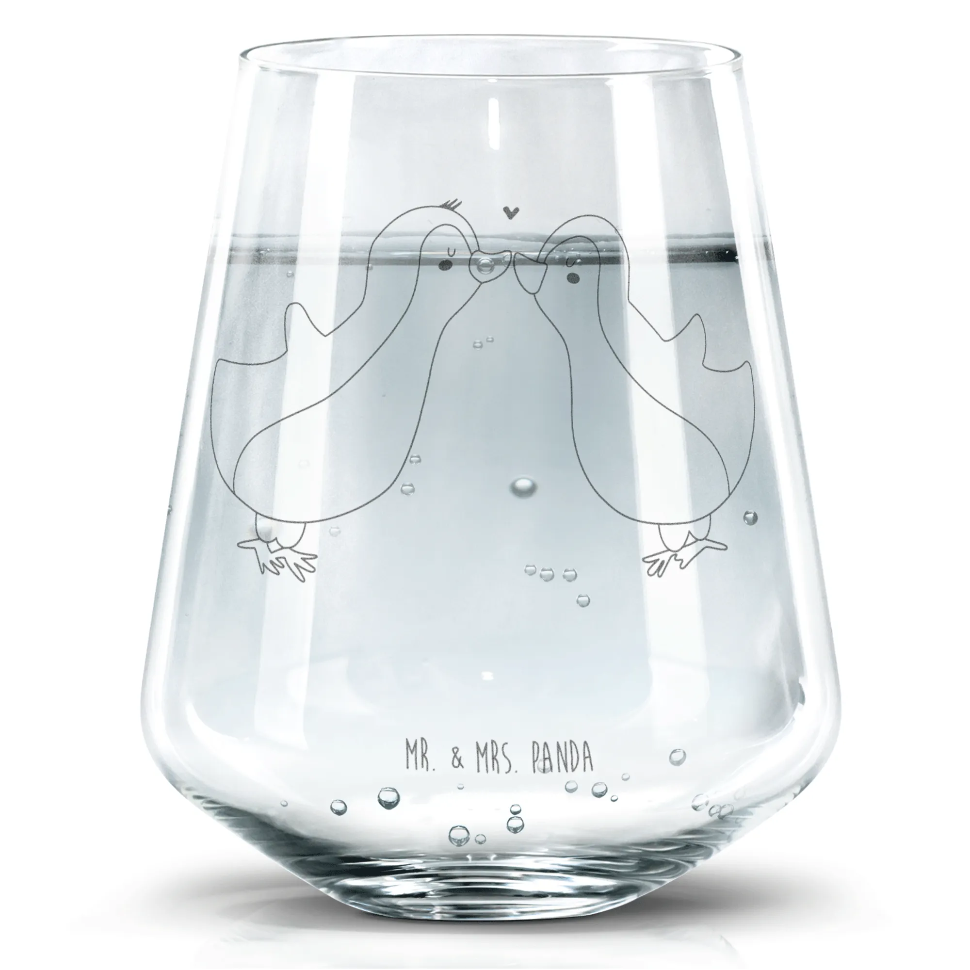 Alle Pärchen und Liebenden dürfen sich über dieses wunderschöne Accessoire freuen, das nicht nur durch die schöne Gravur, sondern auch durch seine Funktionalität überzeugt. Zeige deinem Partner, wie wichtig er dir ist und bereite ihm eine Freude mit dem entzückenden Trinkglas Pinguin Liebe von Mr. & Mrs. Panda.