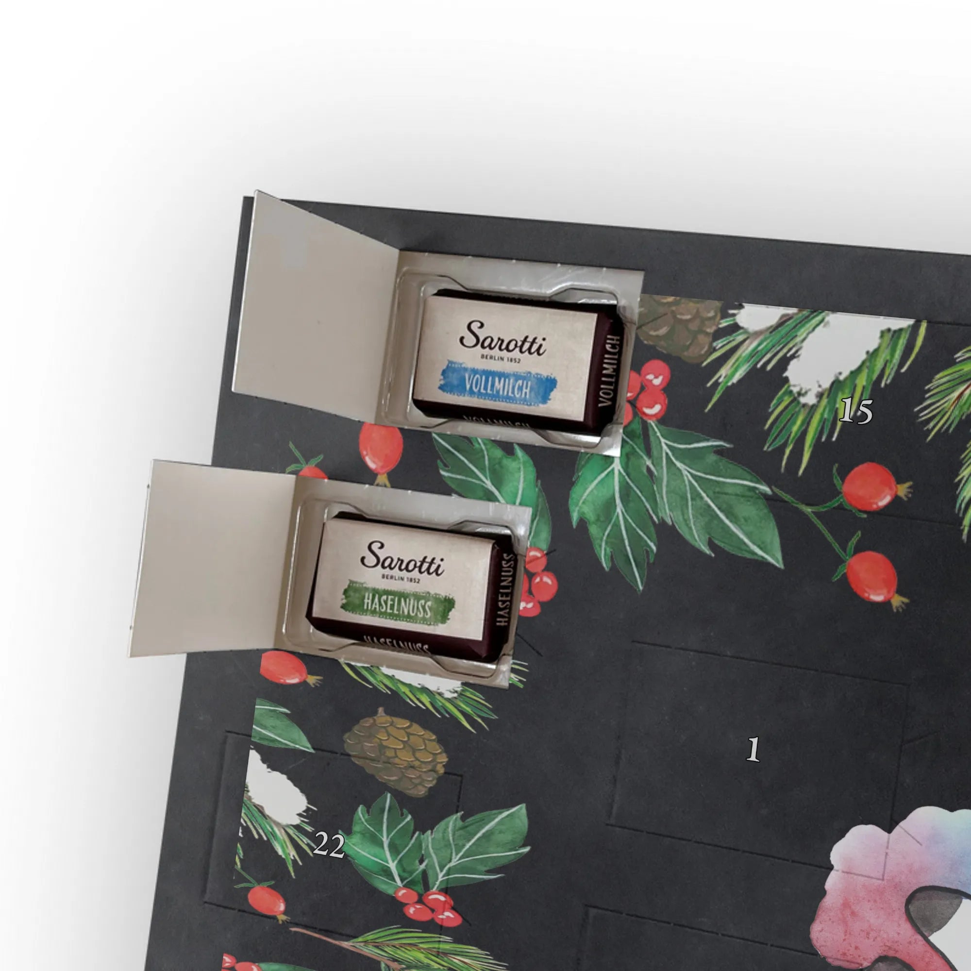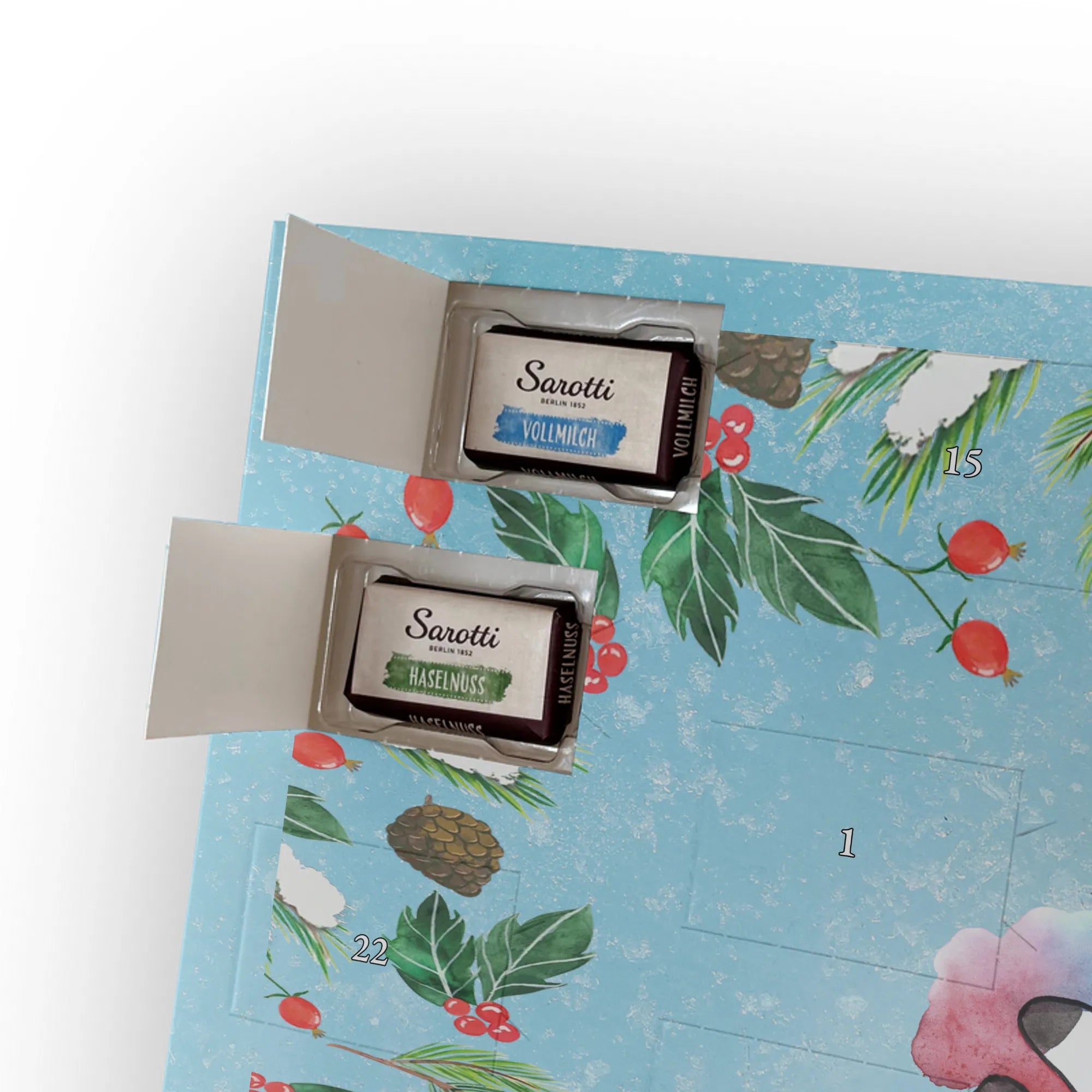 Make the Advent season even more special with the personalized chocolate Advent calendar from Mr. & Mrs. Panda. This unique Advent calendar is printed with your desired name or a custom text and features exclusive designs and sayings from the renowned designer duo. It's not only a visual highlight but also delights taste buds with 24 high-quality chocolate balls in various colors. The brilliant print quality and the silk-matte finish make this calendar a true eye-catcher during the Christmas season.