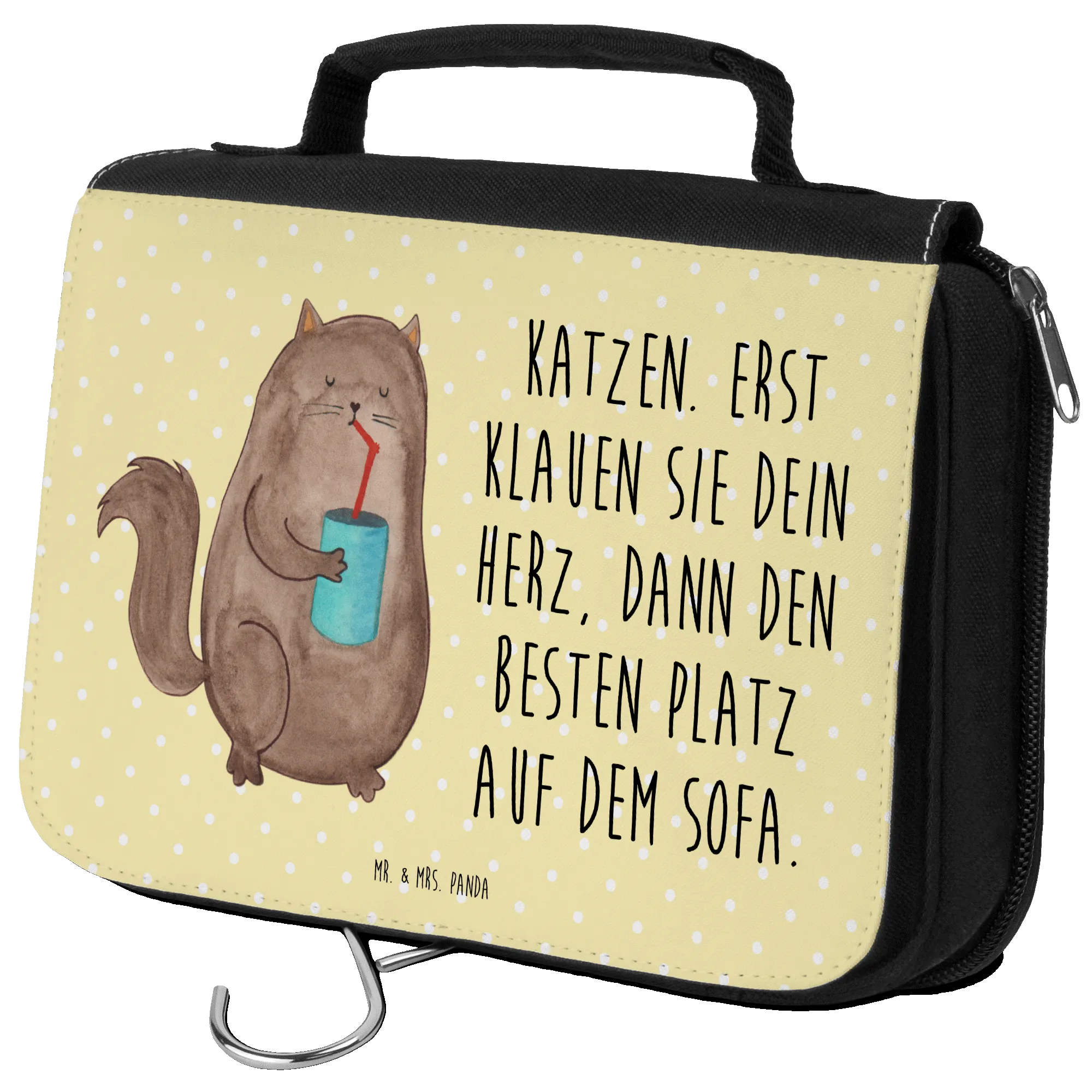 Our adorable design features an irresistible kitty holding a can, capturing the humorous side of cat ownership—because we all know our cats have a knack for stealing our hearts along with the coziest spot on the couch! With the slogan "Cats! First they steal your heart, then the comfiest spot on the couch," this wash bag is as practical as it is entertaining.