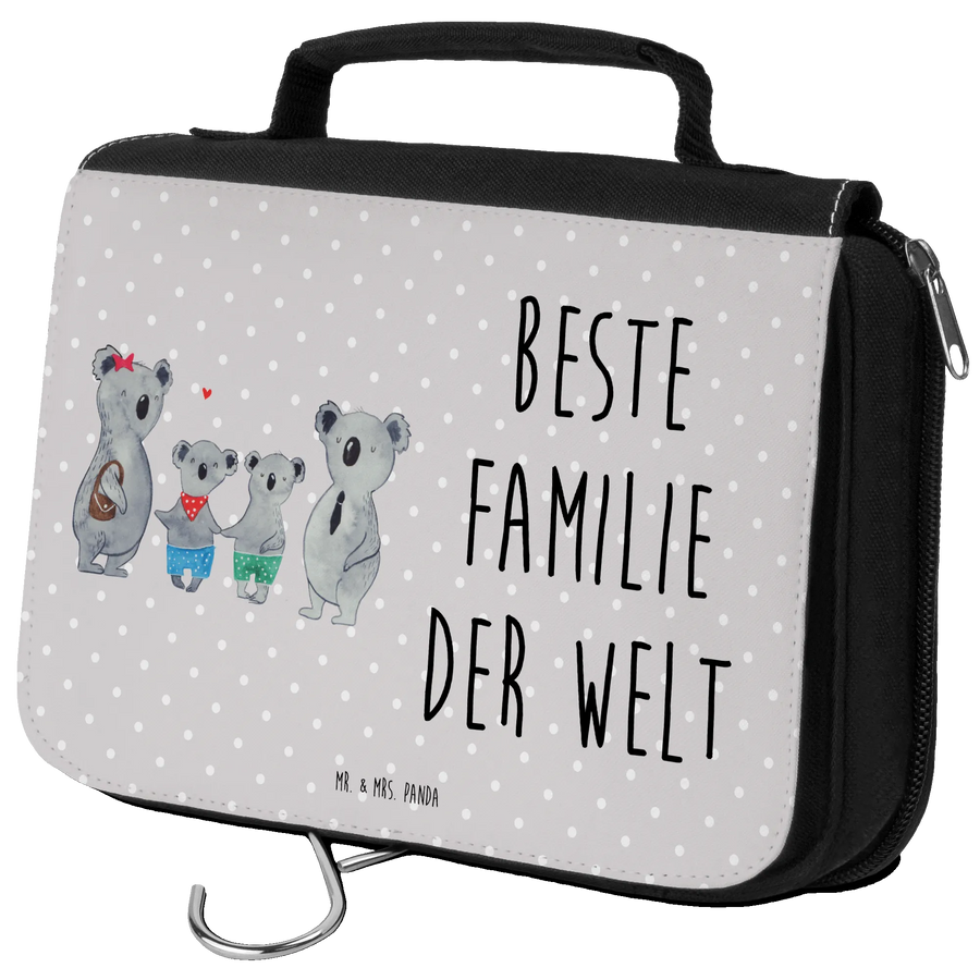 Wash bag Koala family with two kids - with saying - Grey Pastel