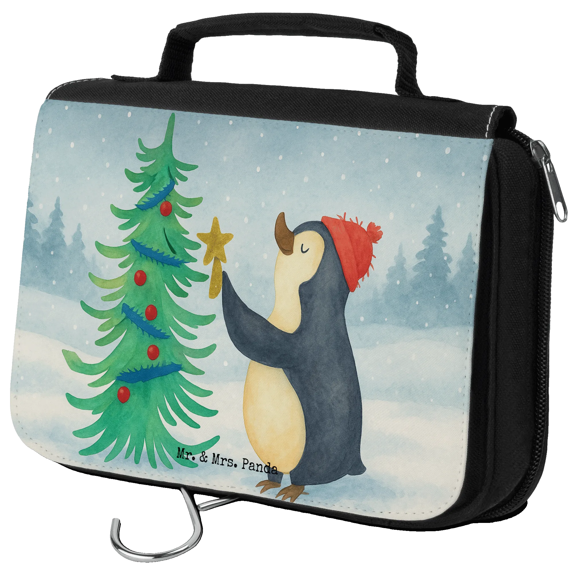 Wash bag penguin Christmas tree Design - with saying
