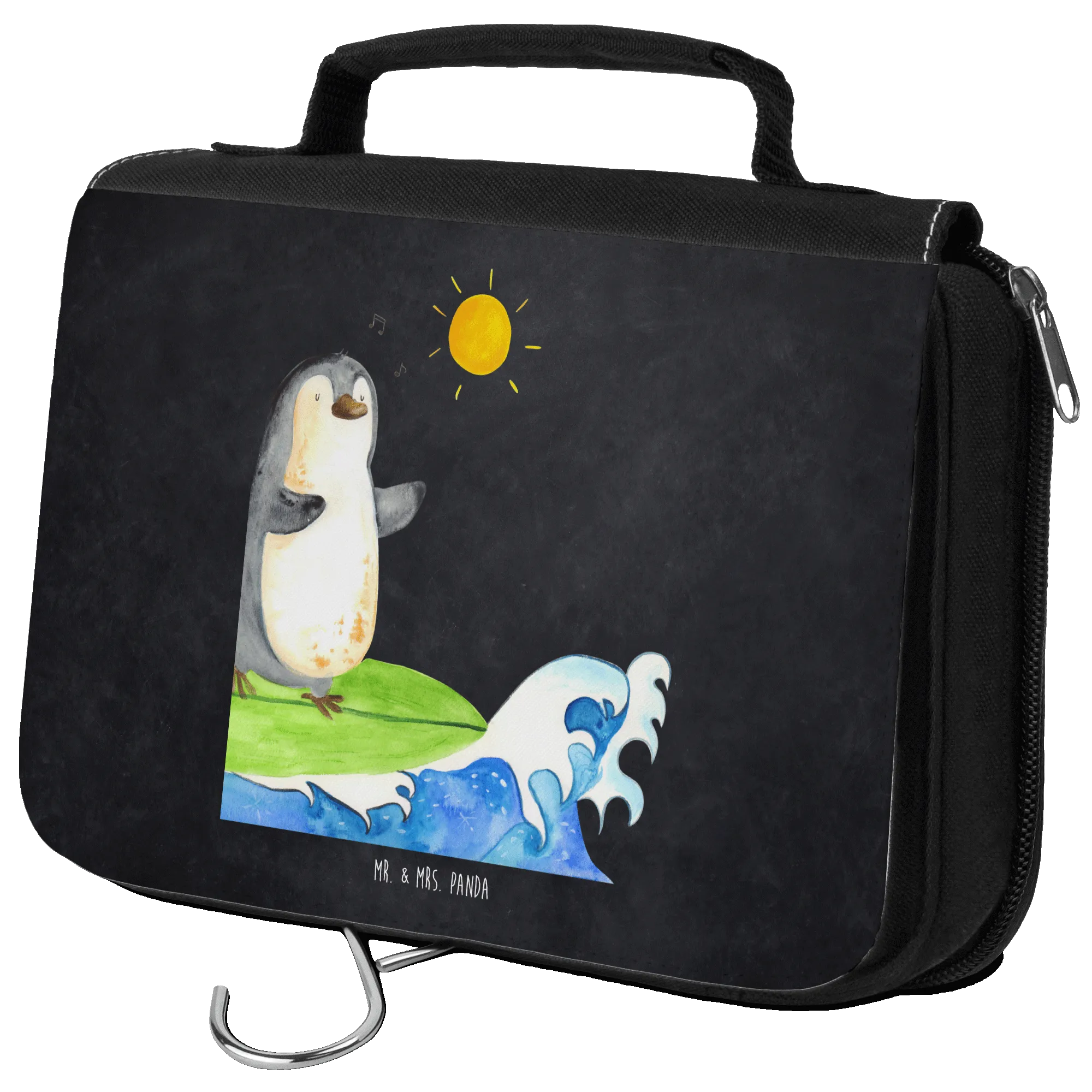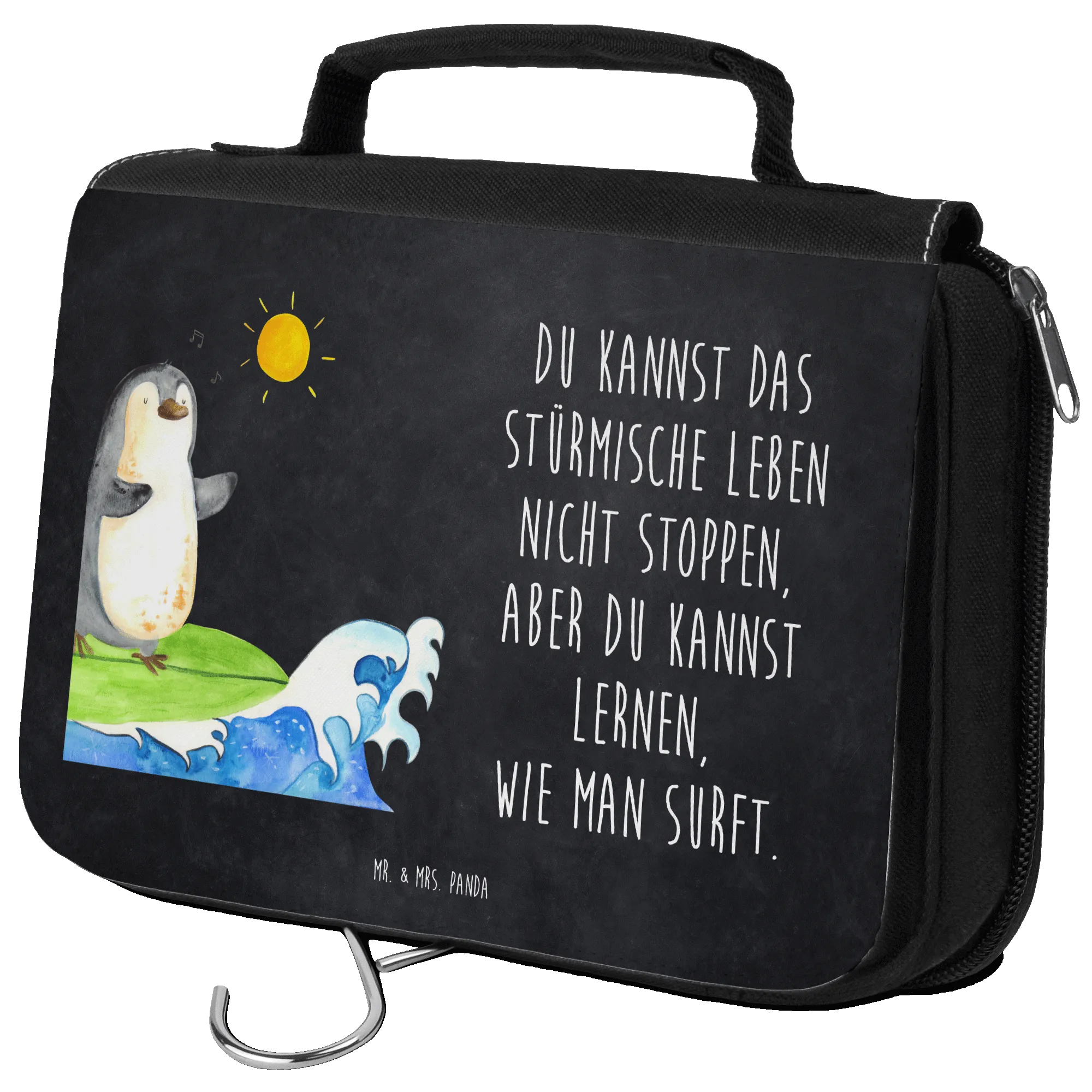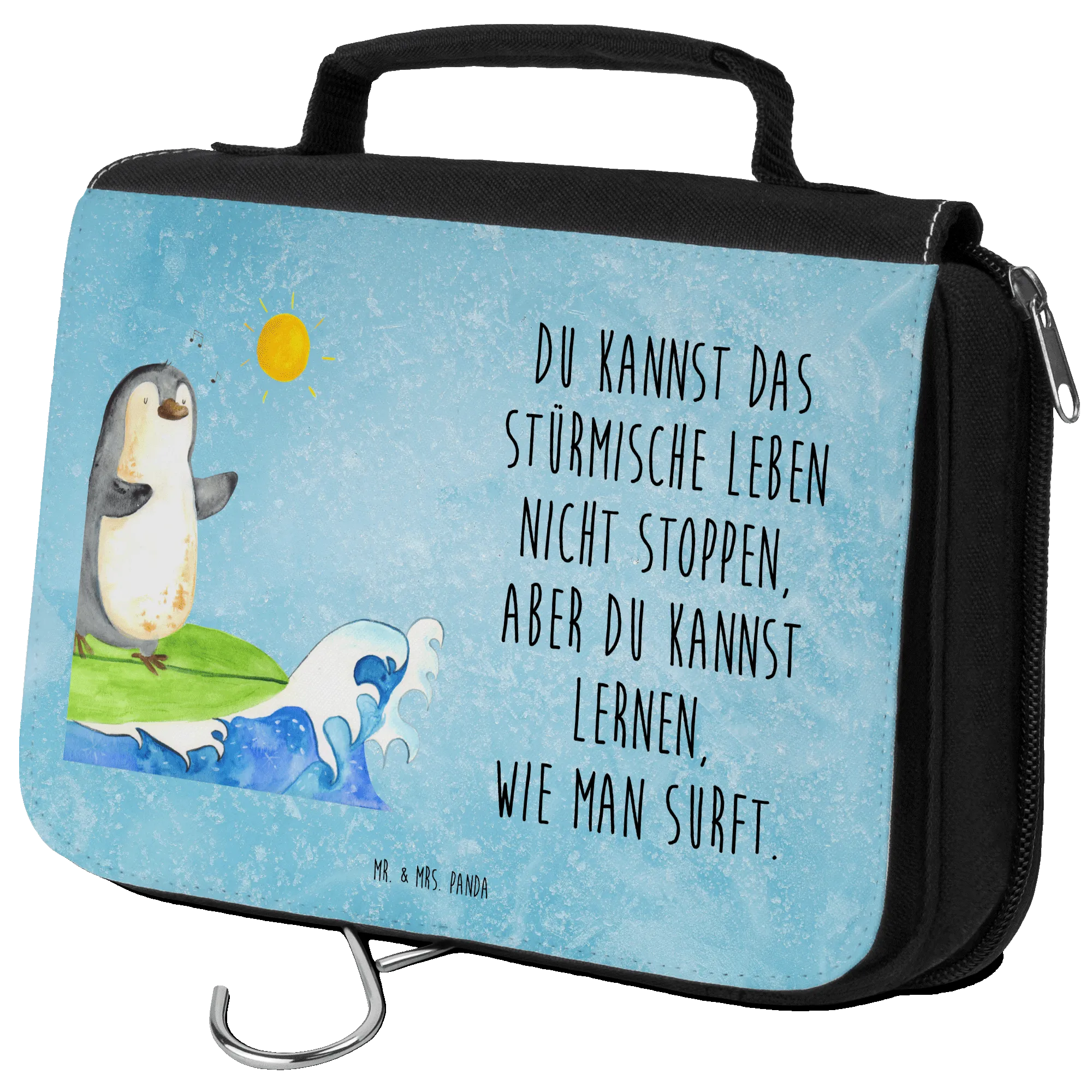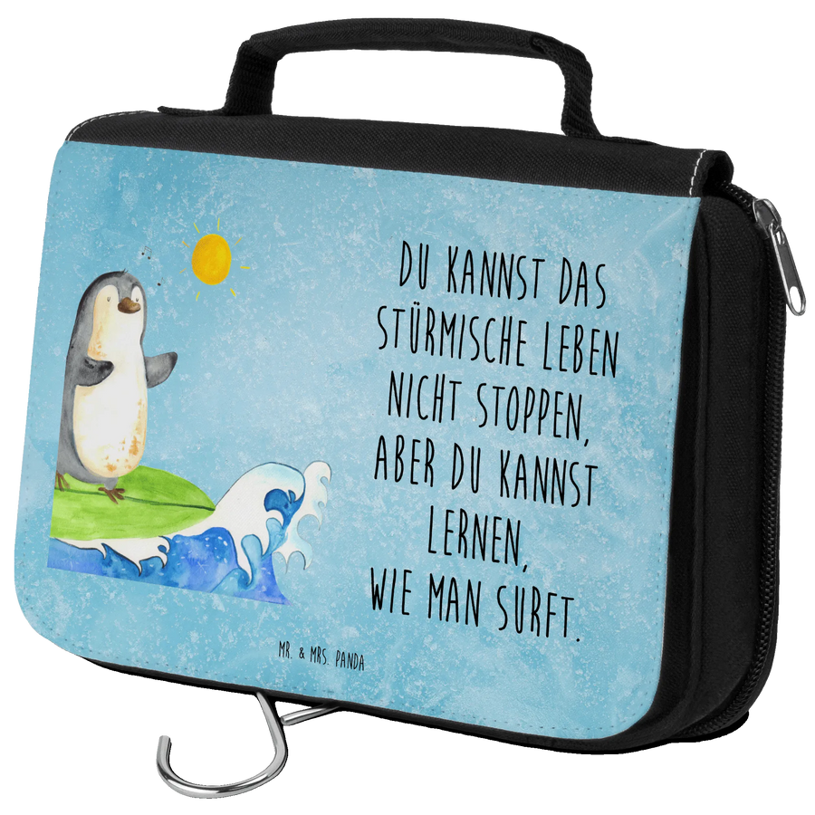 Wash bag Penguin surfer - with a saying - Ice Blue