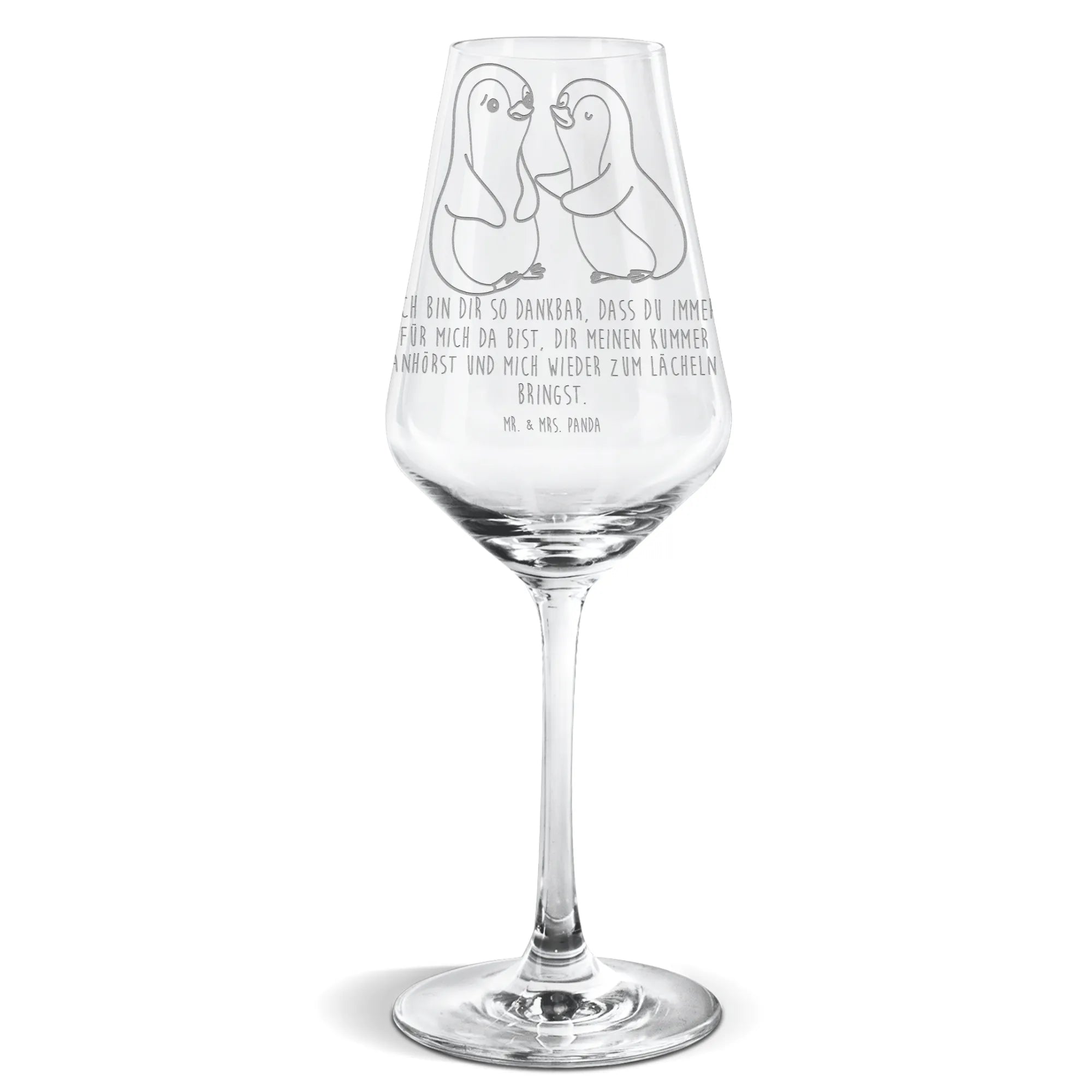 Add a touch of elegance to your white wine experience with our Mr. & Mrs. Panda White Wine Glass. This exquisite glass, standing at 209 mm (8 inches) tall and with a diameter of 81 mm (3 inches), can hold a lovely 500 ml (17 oz) of your favorite vintage. Its beautiful laser engravings, adorned with uplifting quotes and whimsical designs, create a unique piece that captures the joy of sharing a drink with friends. Made from durable glass, it's built to last and withstand regular use while being dishwasher safe for hassle-free cleaning. Perfect for festive gatherings, romantic dinners, or as a cherished gift, this glass is designed to make every occasion feel special. Gift it to a friend or enjoy it yourself; either way, boosting your drinking experience has never been more delightful!
