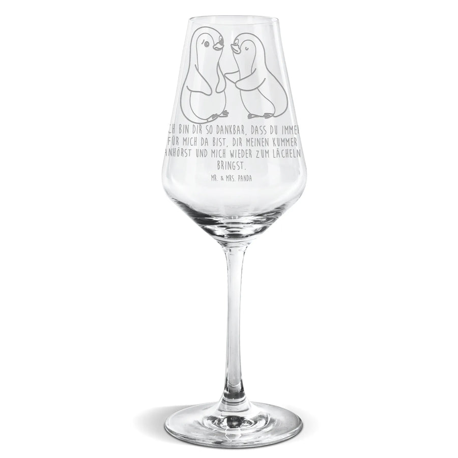 White Wine Glass penguins console - with saying
