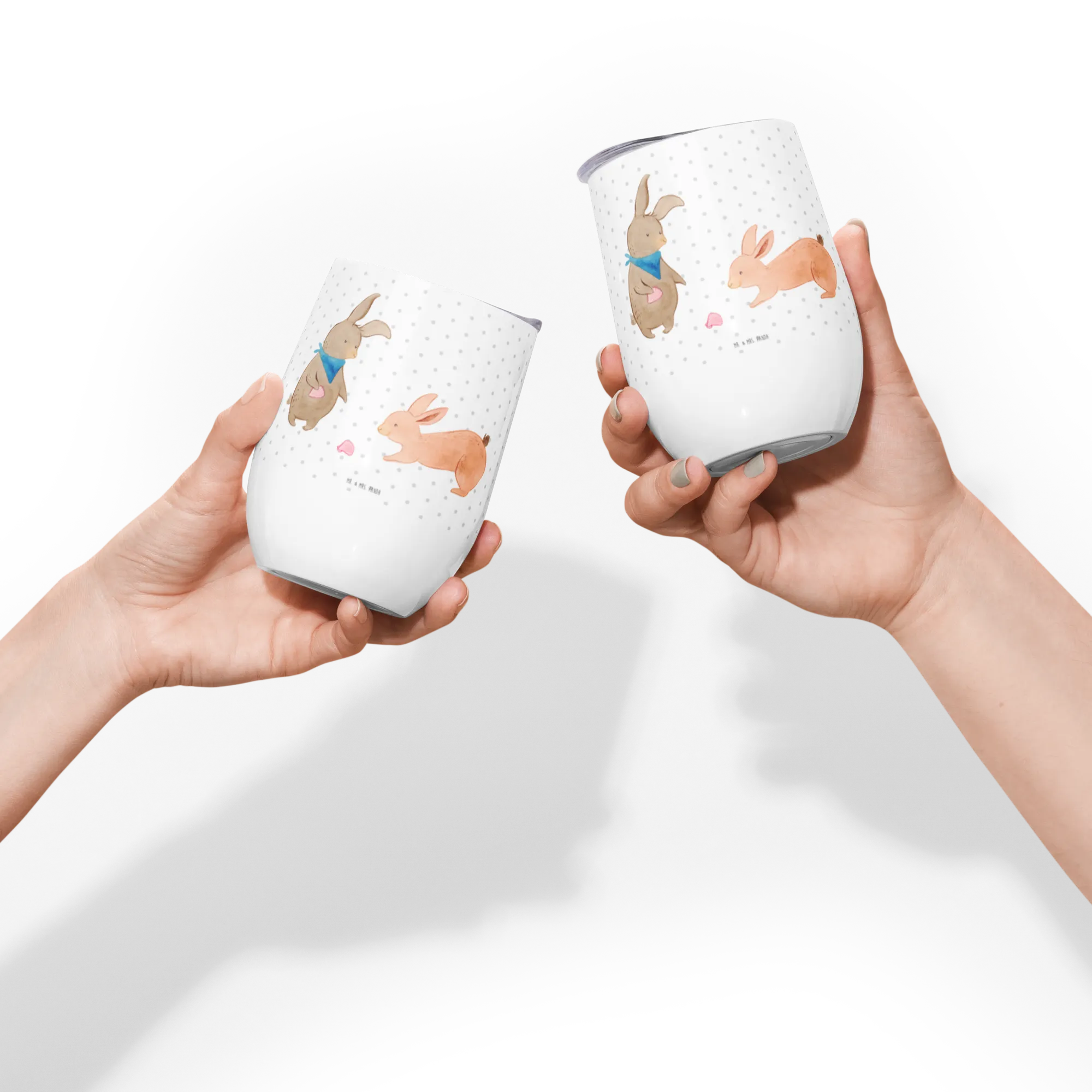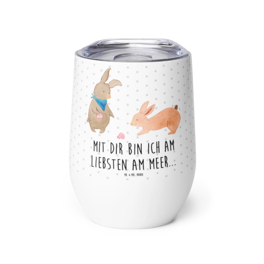 Wine cup Bunnies with seashell - with a saying