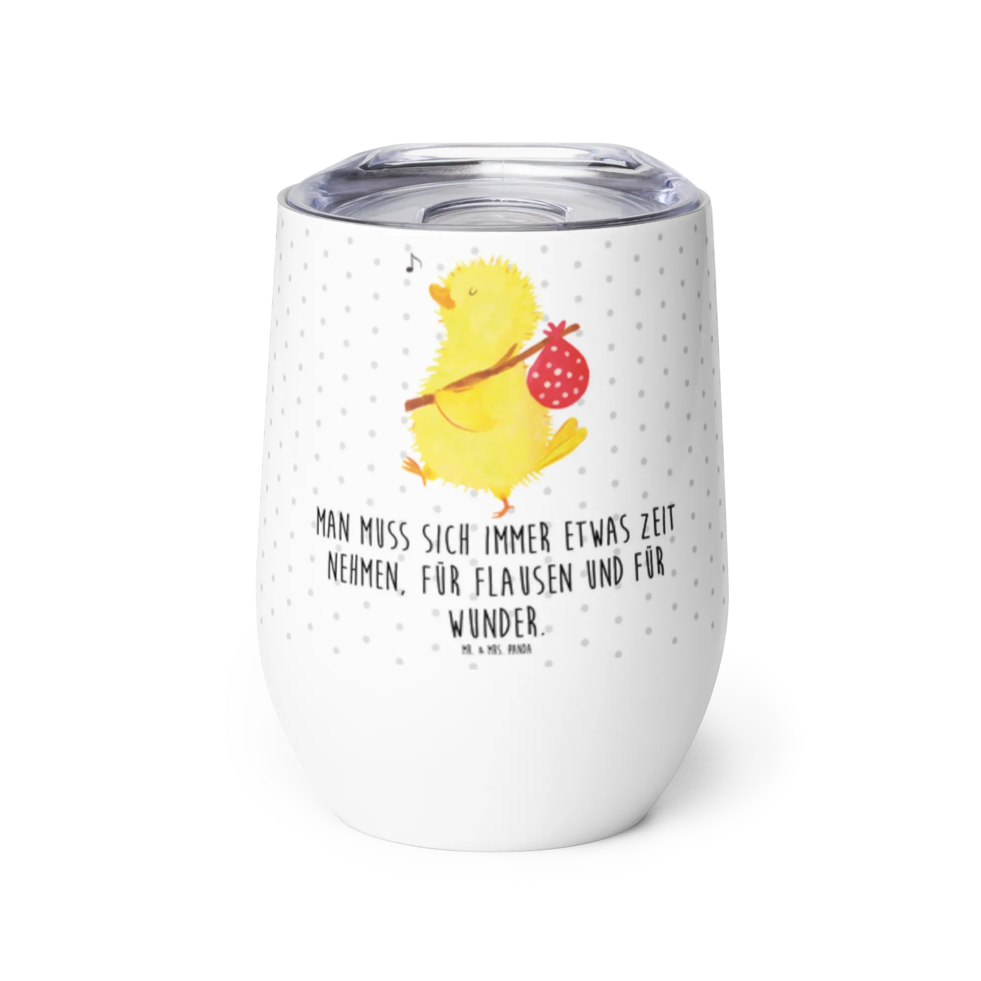 Remember, the best gifts are those that remind us to take time for fun, wonder, and a bit of nonsense in our busy lives, just as the slogan "Man muss sich immer etwas Zeit Nehmen, für Flausen und für Wunder" suggests. So, celebrate this Easter with our Chicks Hiker wine tumbler, and make it a part of your springtime festivities.