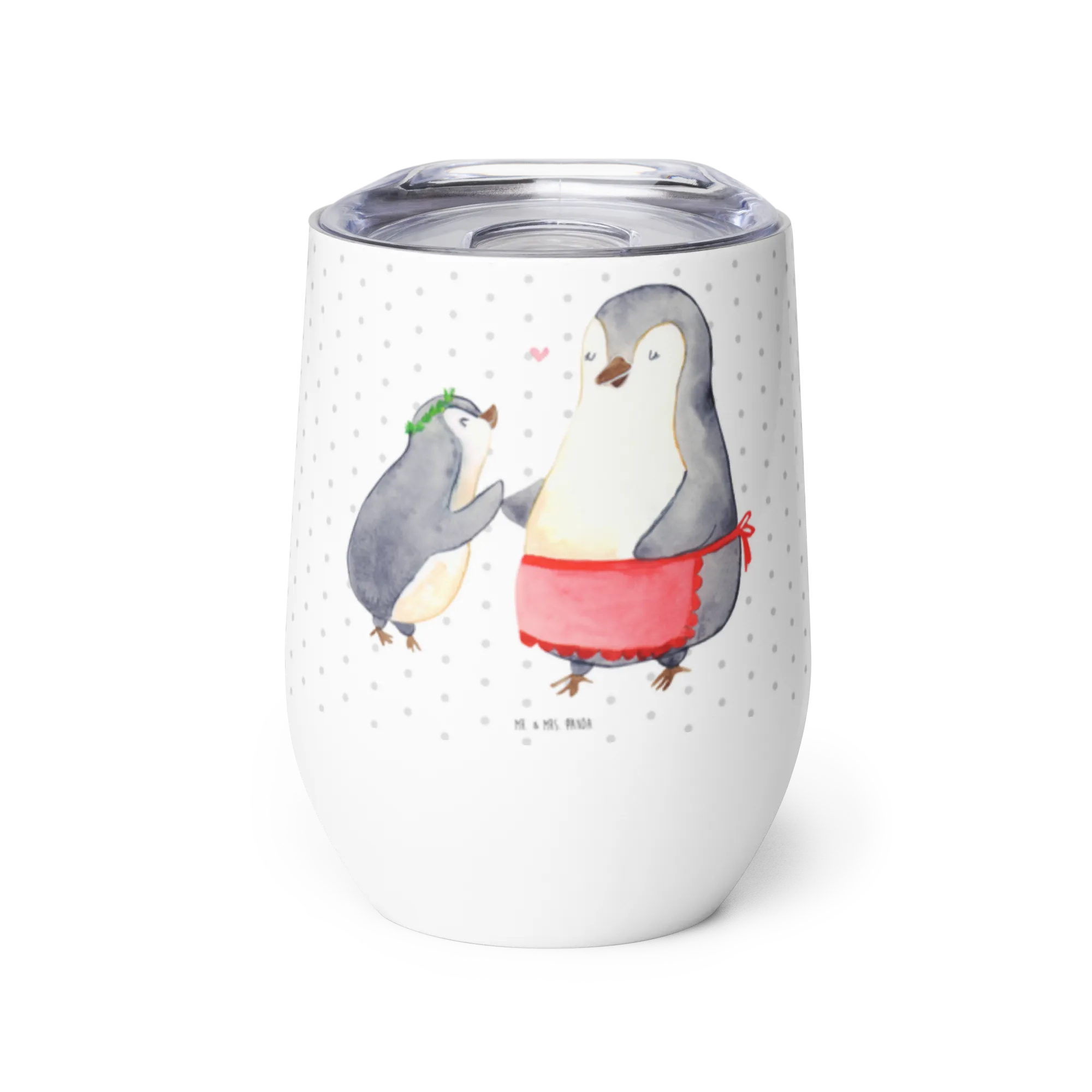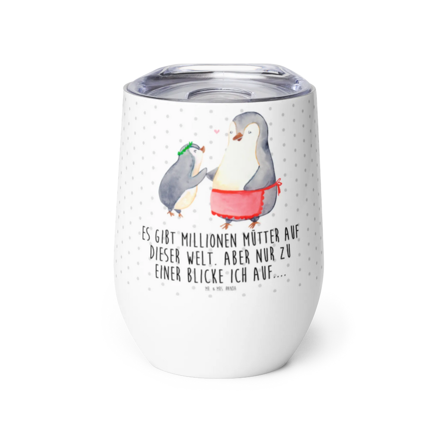 Wine cup Penguin with child - with a saying