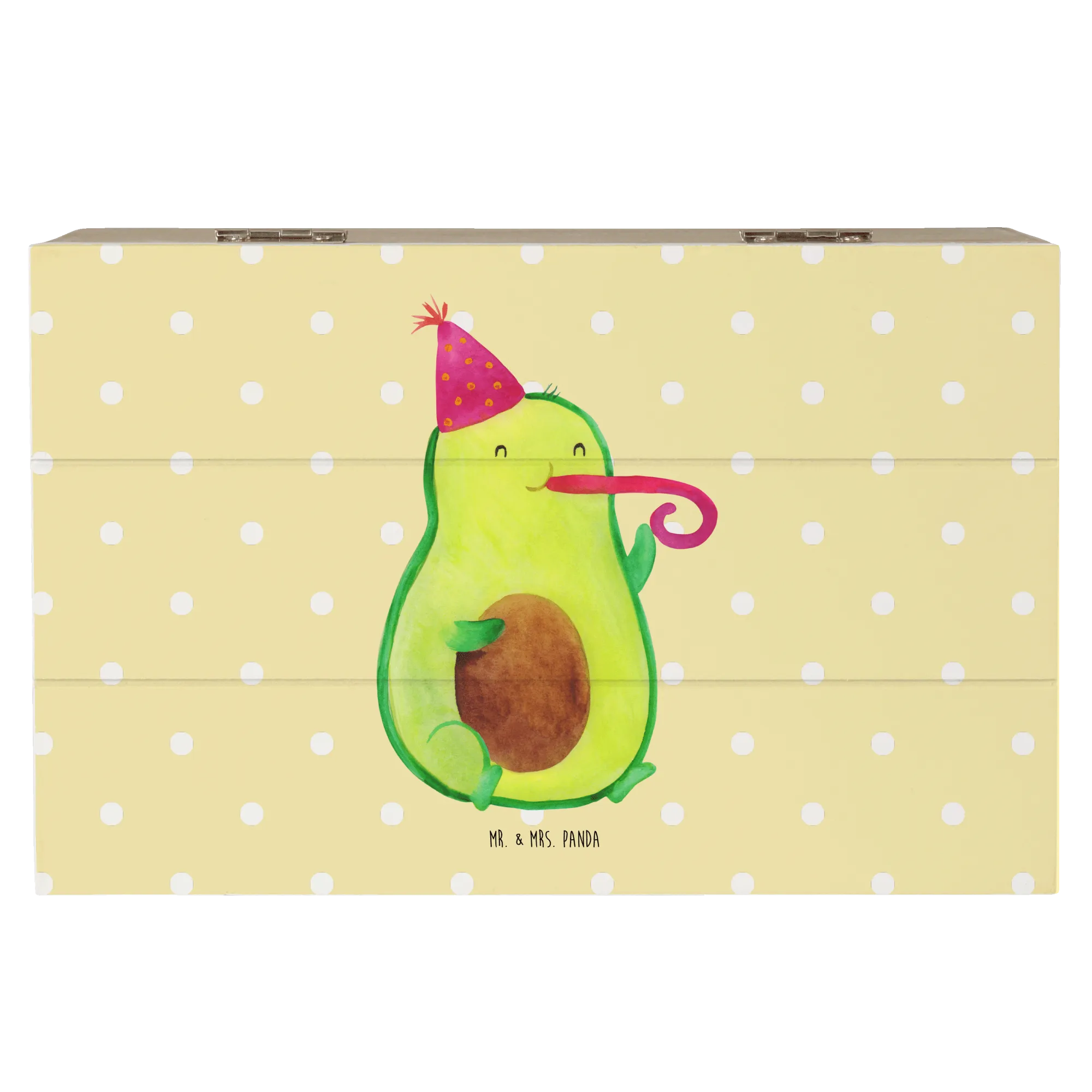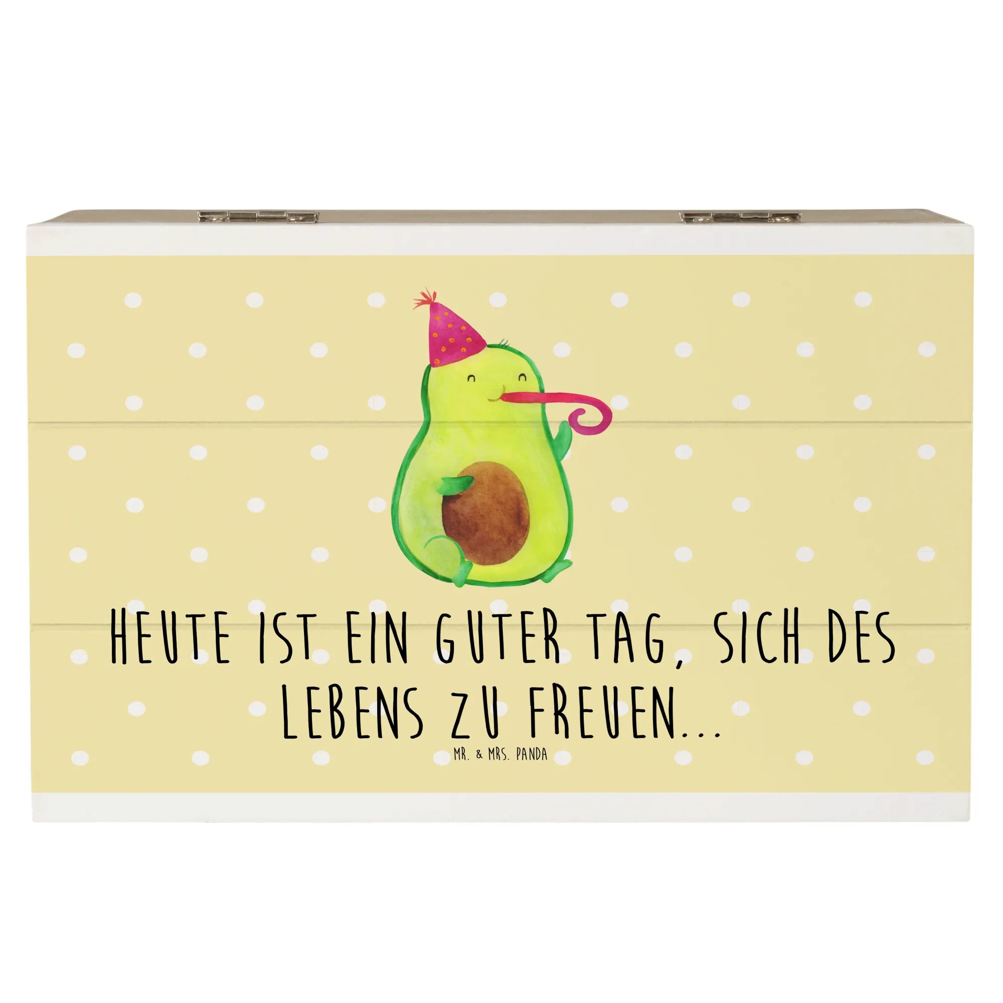 Introducing the delightful Wooden Chest with the charming Avocado Party Horn motif from Mr. & Mrs. Panda! This beautiful wooden box is perfect for anyone looking to celebrate life’s special moments, whether it's birthdays, parties, or simply because. Imagine a lovely pastel yellow treasure chest adorned with an adorable avocado sporting a party hat and joyfully blowing a party horn. This eye-catching design is not just a feast for the eyes but also embodies joy, laughter, and the spirit of celebration!