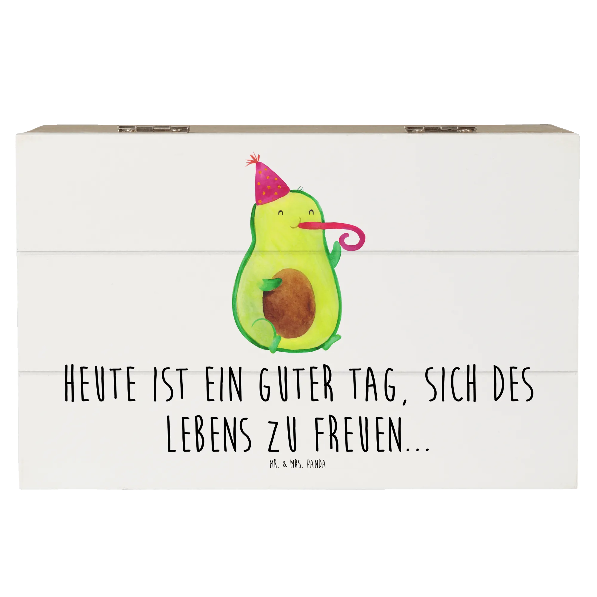 Introducing the perfect gift for any occasion - the stunning Avocado Party Horn Wooden Chest from Mr. & Mrs. Panda! This delightful memory box is more than just a decorative storage solution; it’s a treasure chest for your most cherished memories. Designed with a cheerful avocado donning a party hat and blowing a party horn, this vibrant motif brings a splash of joy wherever it’s placed.