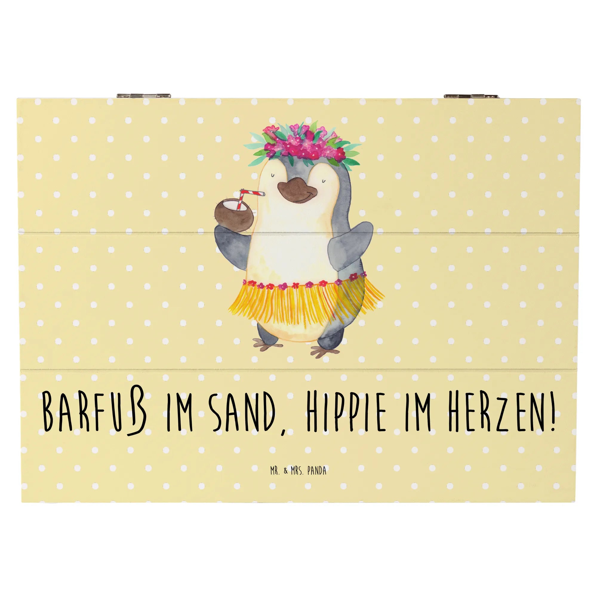 Wooden chest Barfuß im Sand, Hippie im Herzen! - 22 x 15 cm - Yellow Pastel