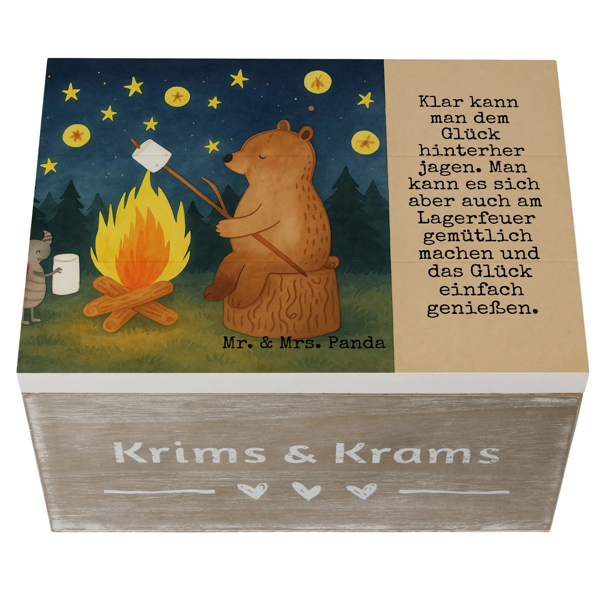 Wooden chest Bear & Ladybird campfire Design - 22 x 15 cm - with saying