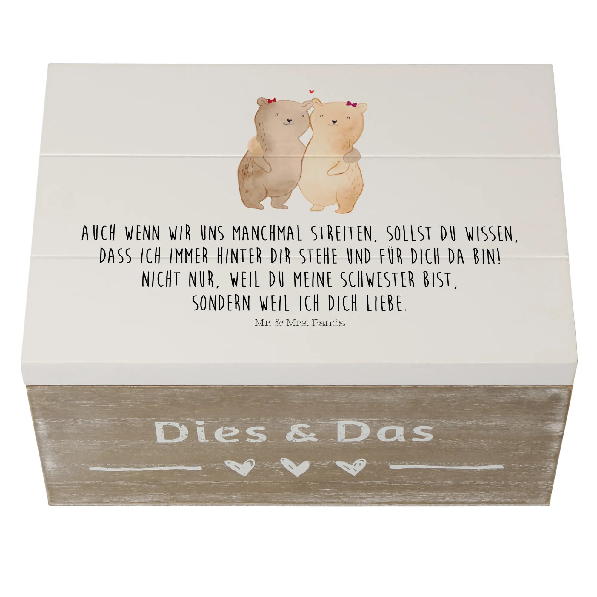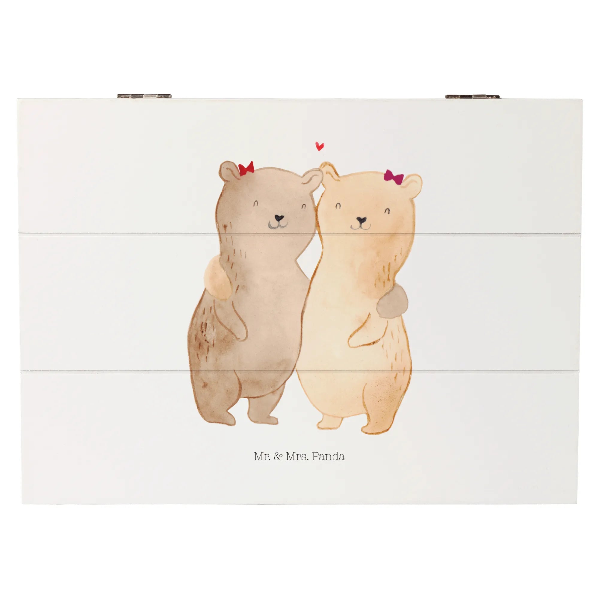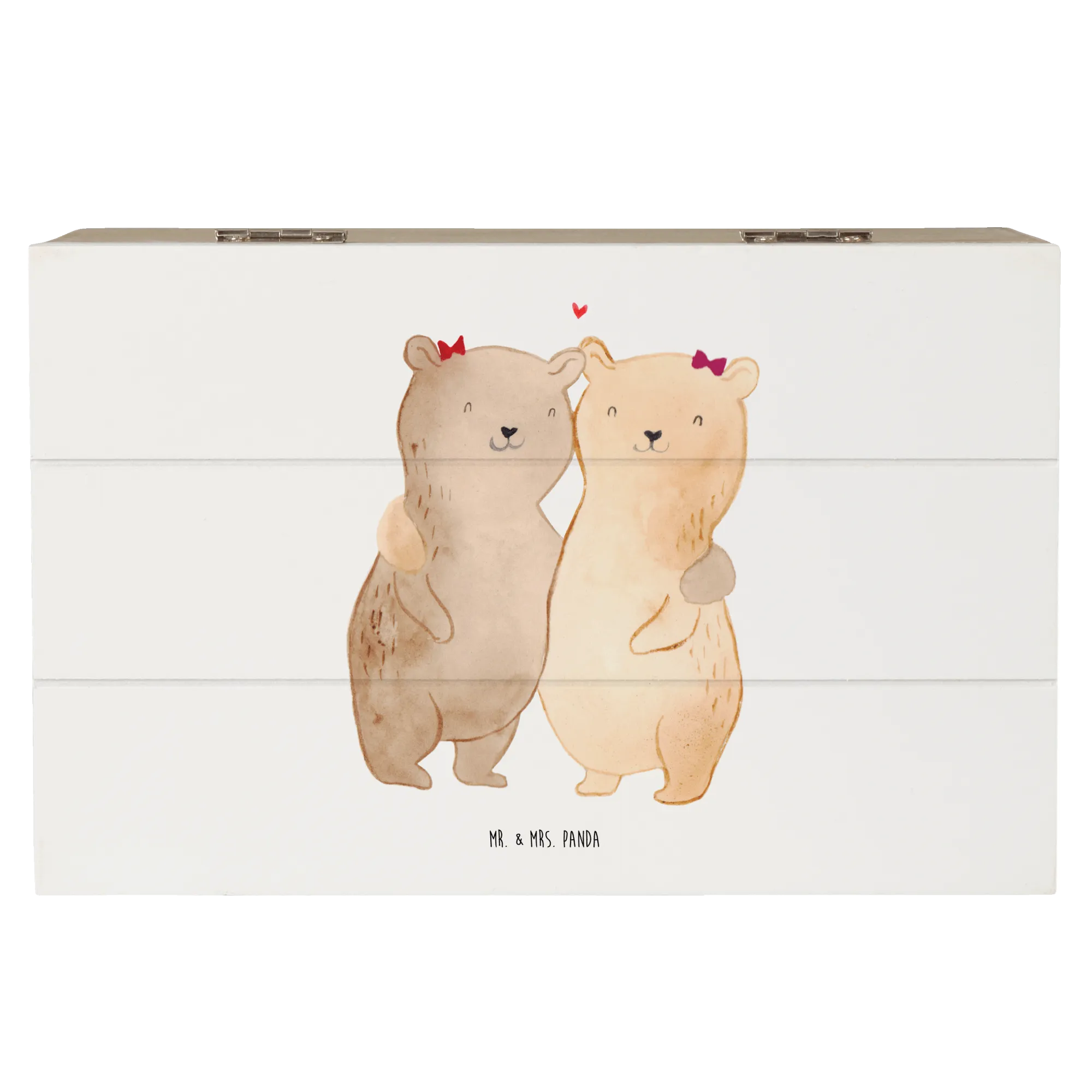 Wooden chest bears sisters - 22 x 15 cm - with saying - White