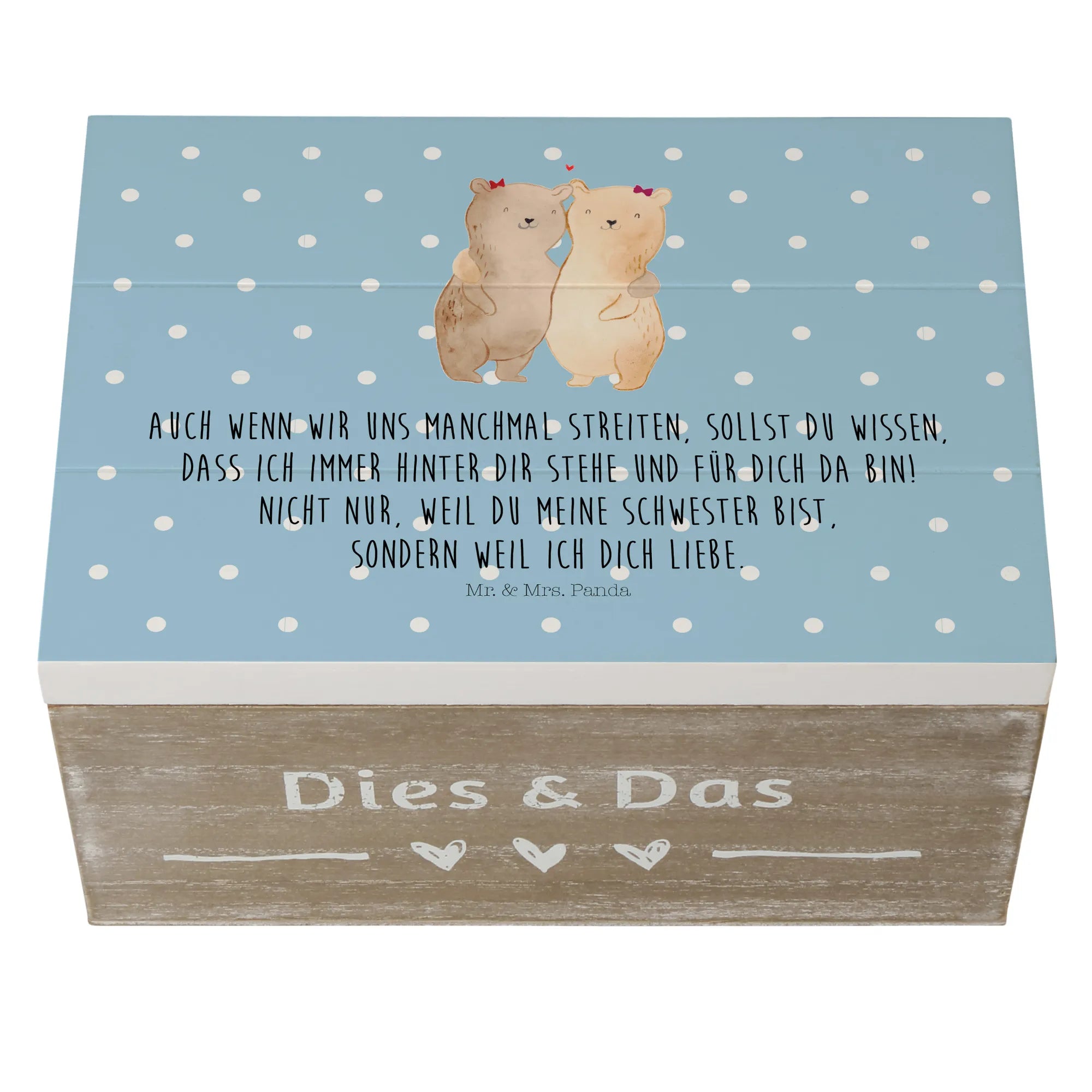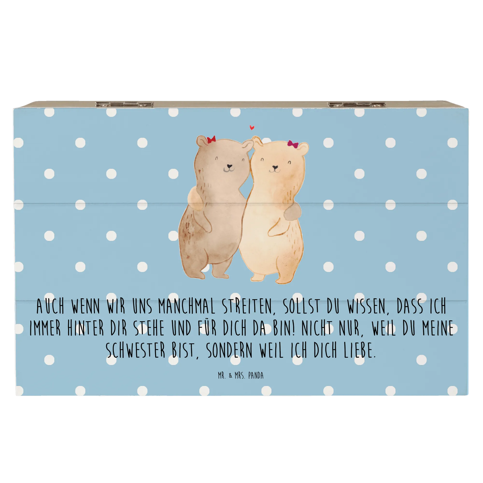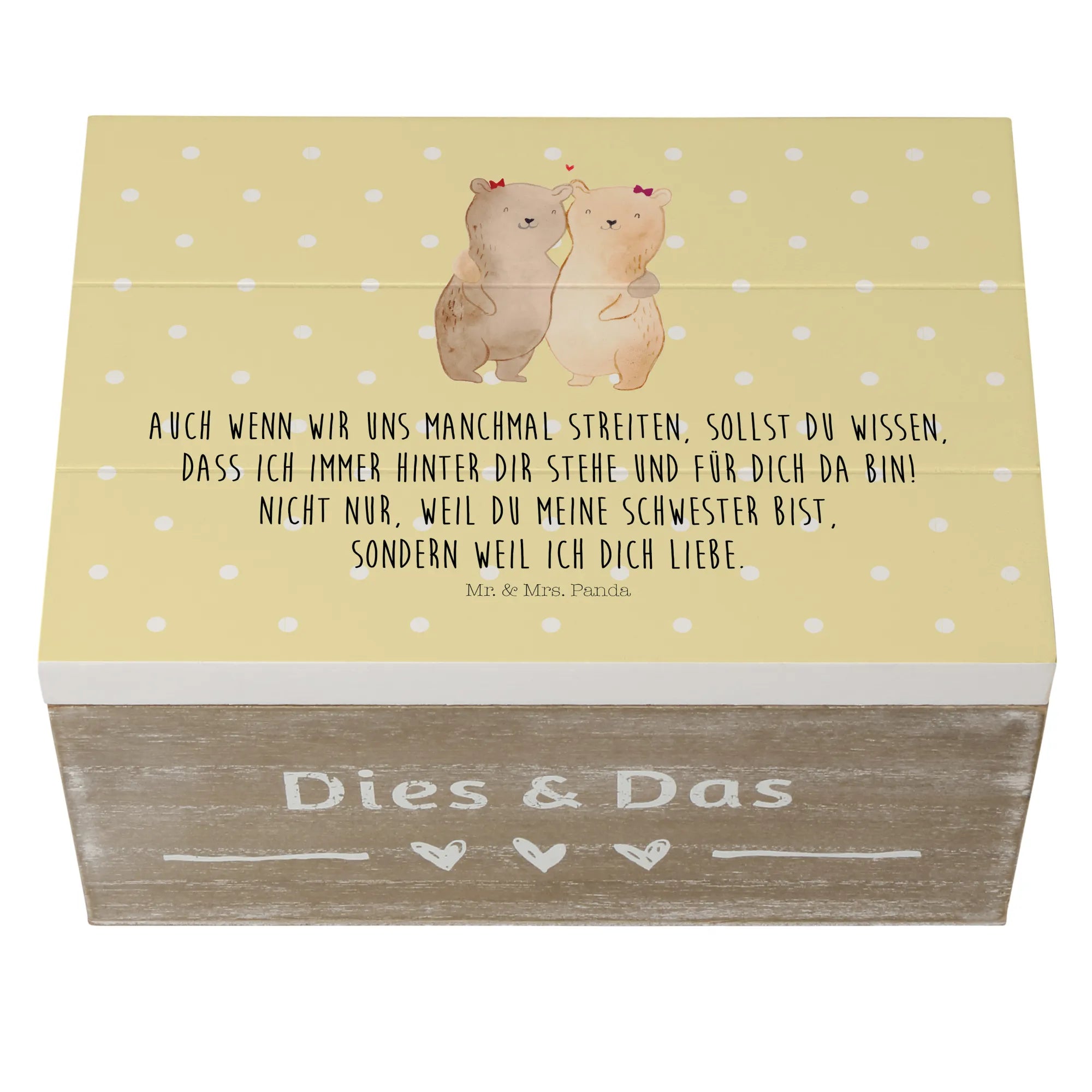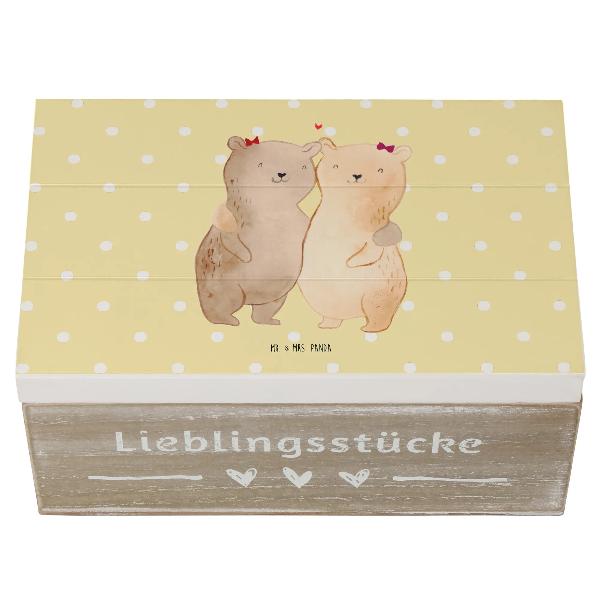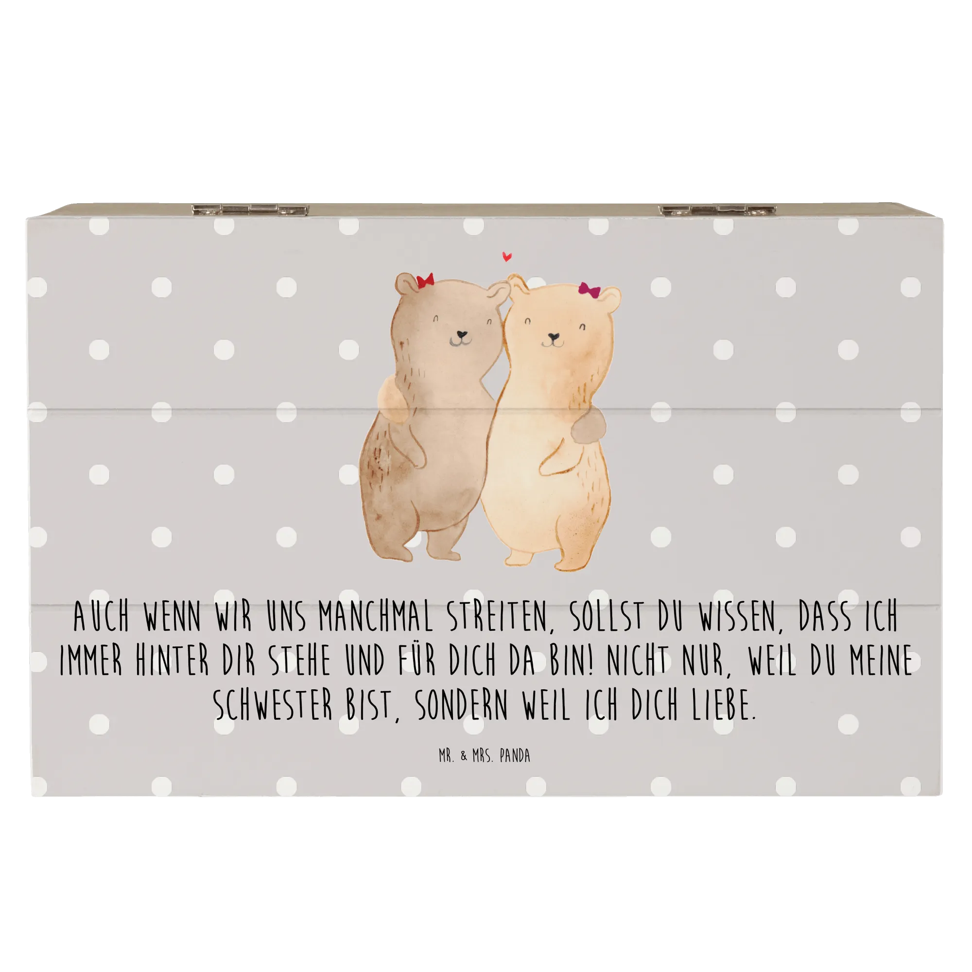 Looking for the perfect gift for your sister? Look no further than the beautifully crafted Wooden Chest featuring the adorable Sisters Bears motif from Mr. & Mrs. Panda! This stunning memory box, made from premium hardboard, is not only a storage solution for all her treasured keepsakes but also a heartwarming symbol of the special bond you share.