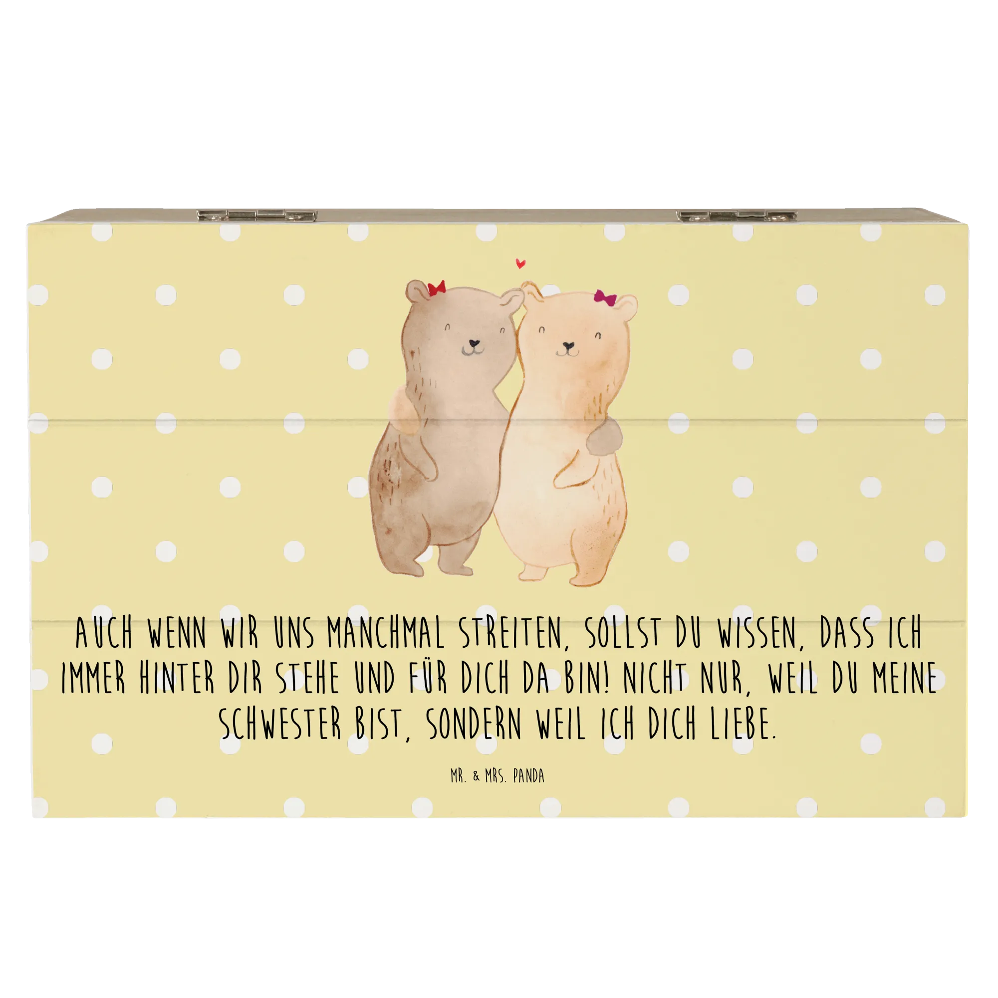 Looking for that perfect heartfelt gift for your beloved sister? Meet the enchanting Wooden Chest featuring the adorable Sisters Bears motif from Mr. & Mrs. Panda's Family collection! This beautifully crafted wooden box is not just a decorative storage solution, but a treasure chest filled with love and memories.
