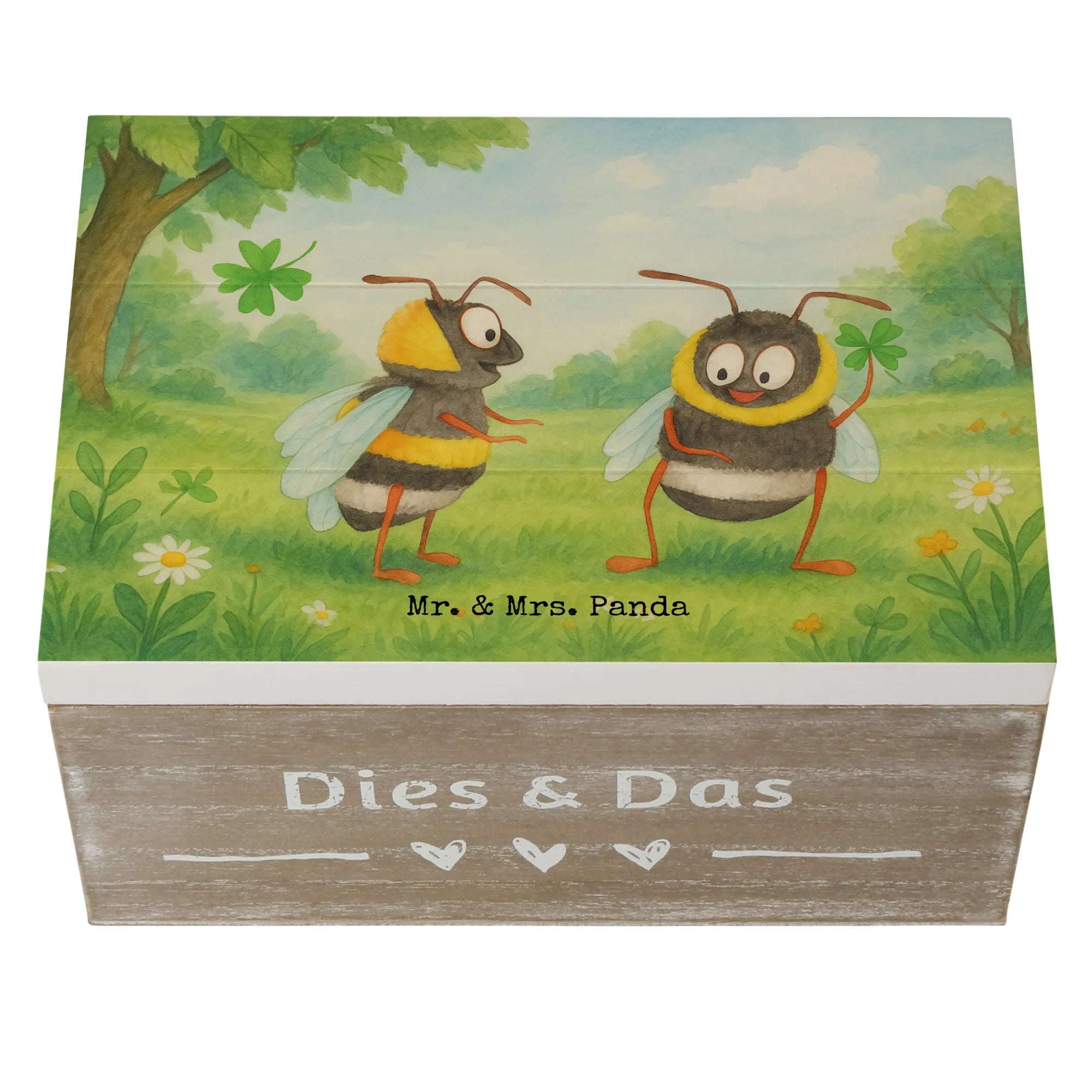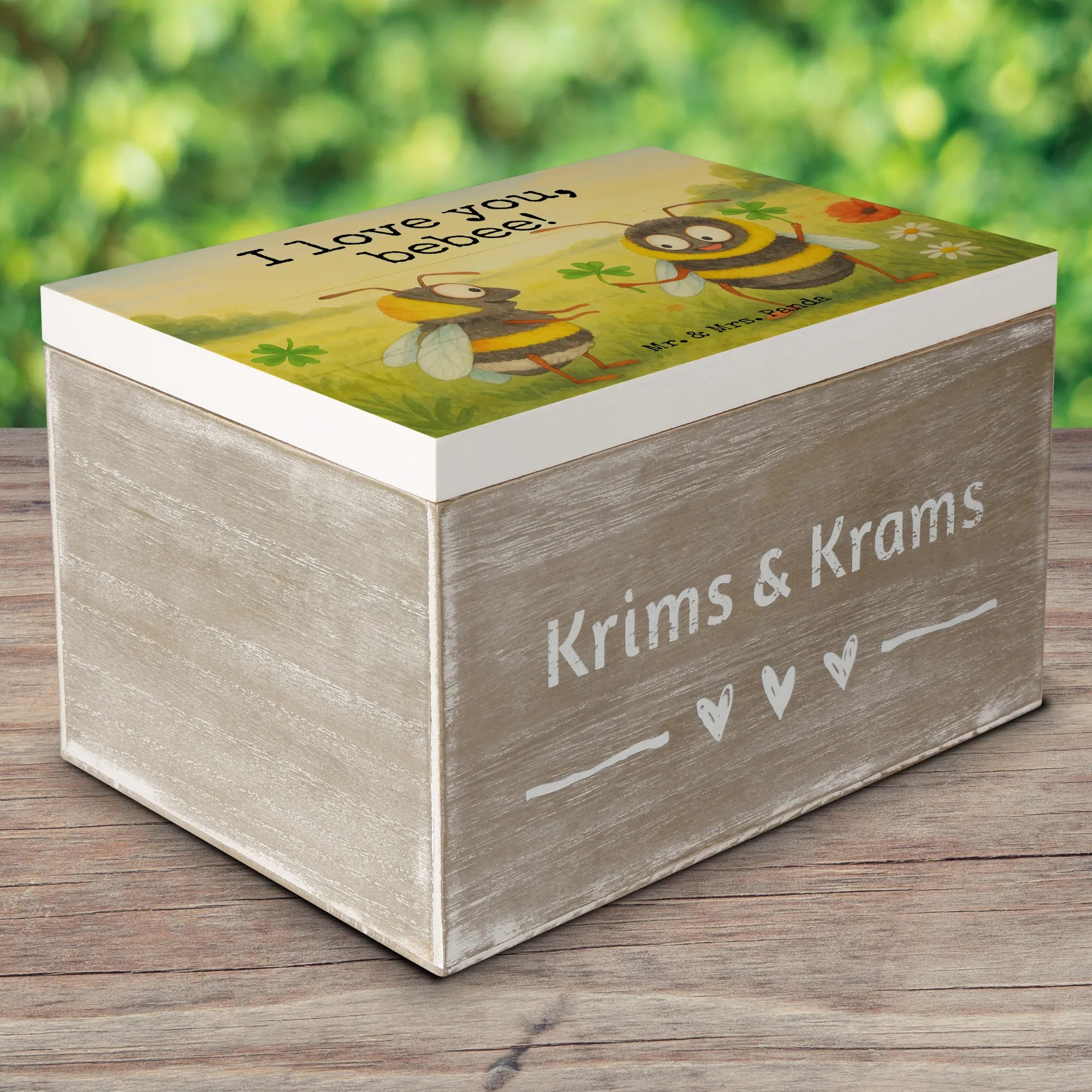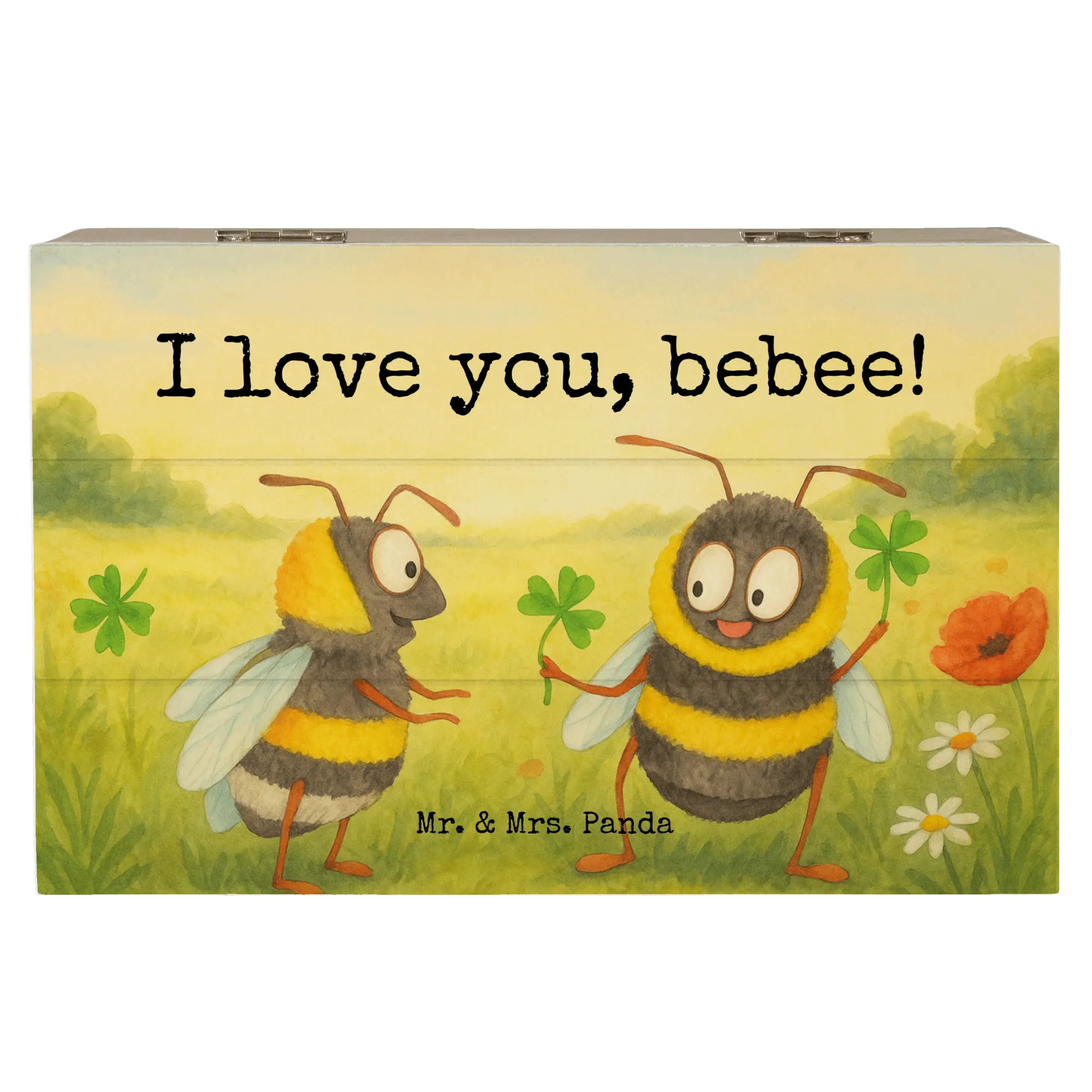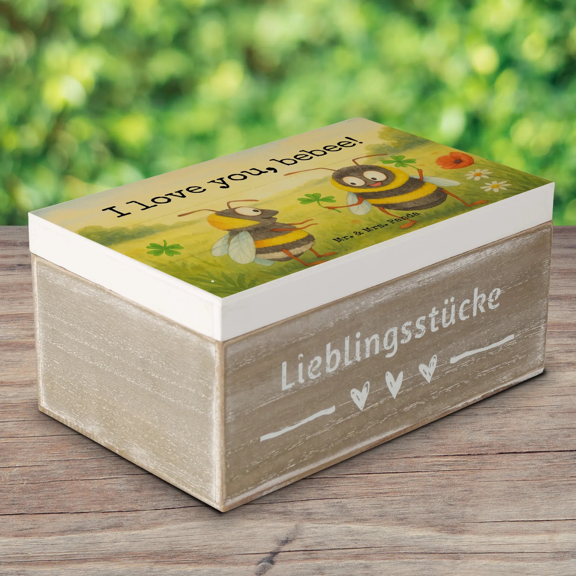 Wooden chest bees Pair Design - 22 x 15 cm - with a saying